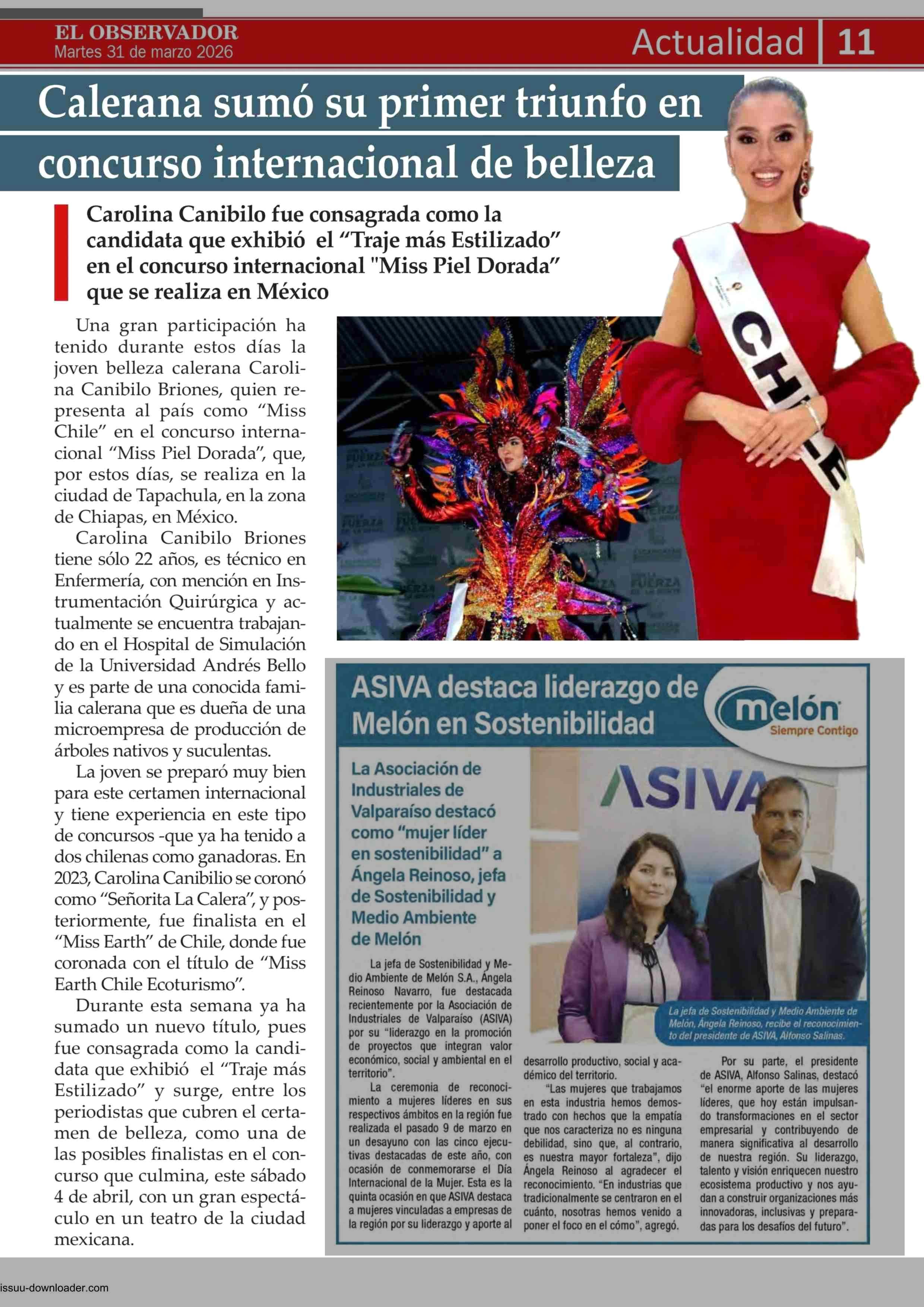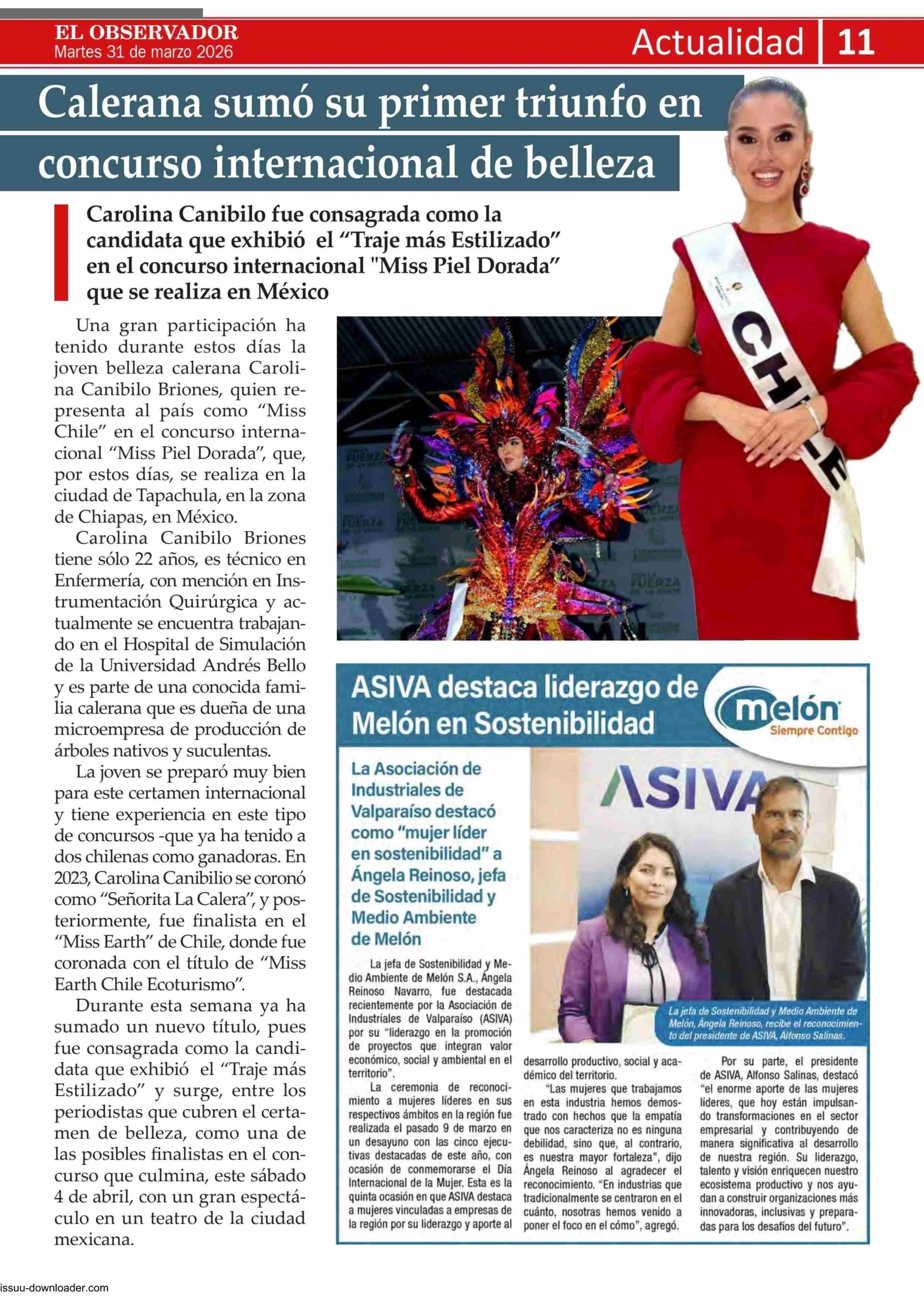 Título: Calerana sumó su primer triunfo en concurso internacional de belleza