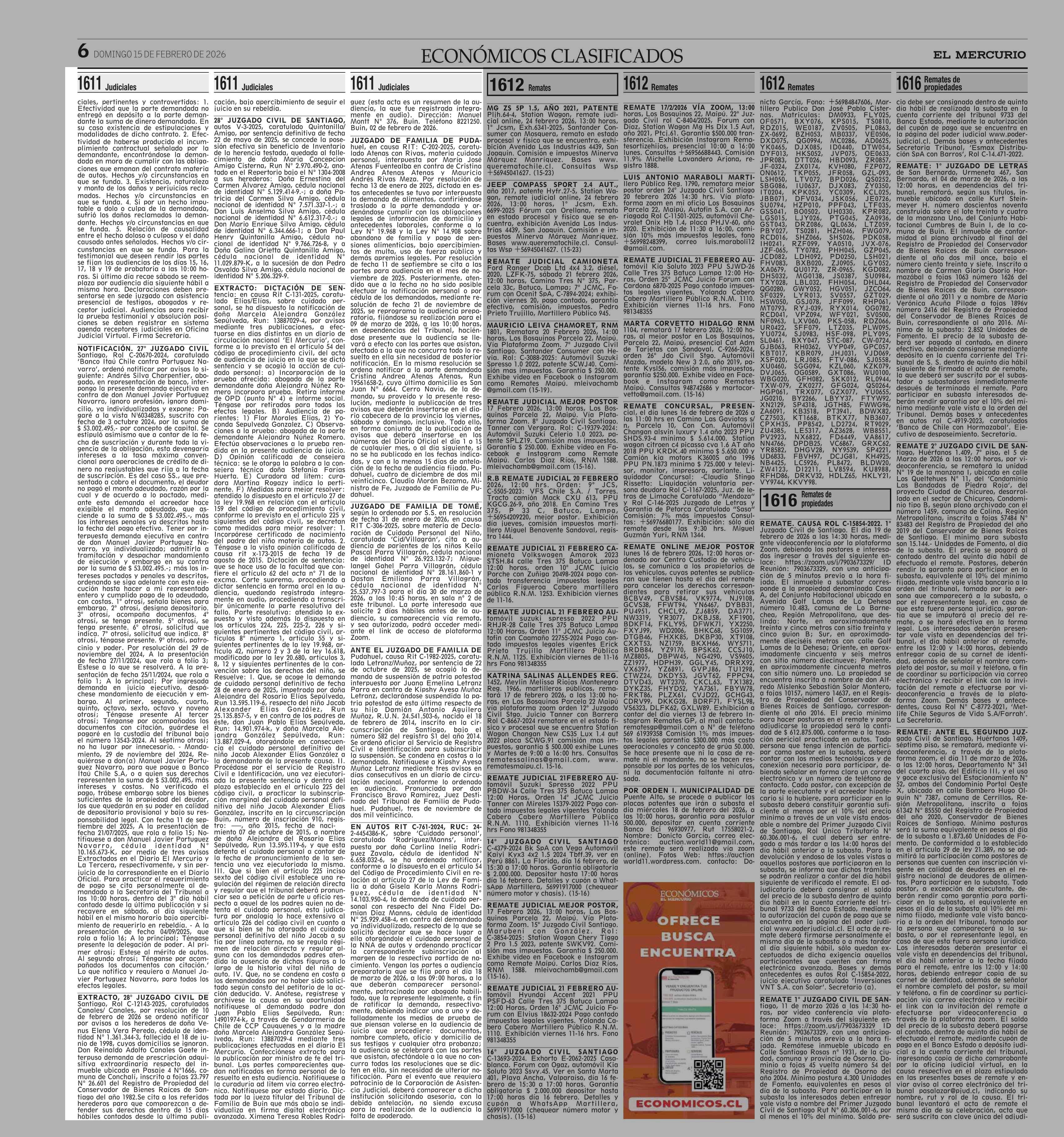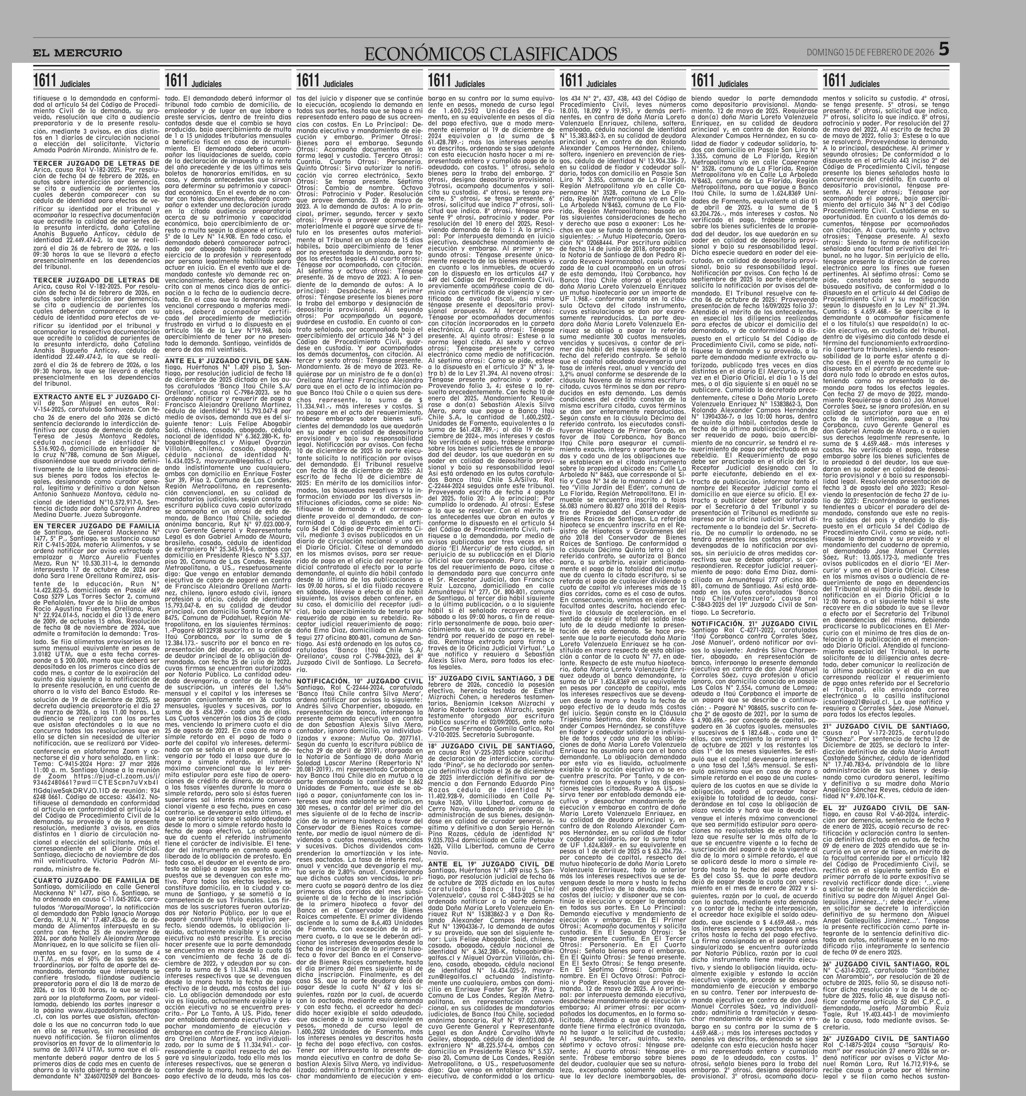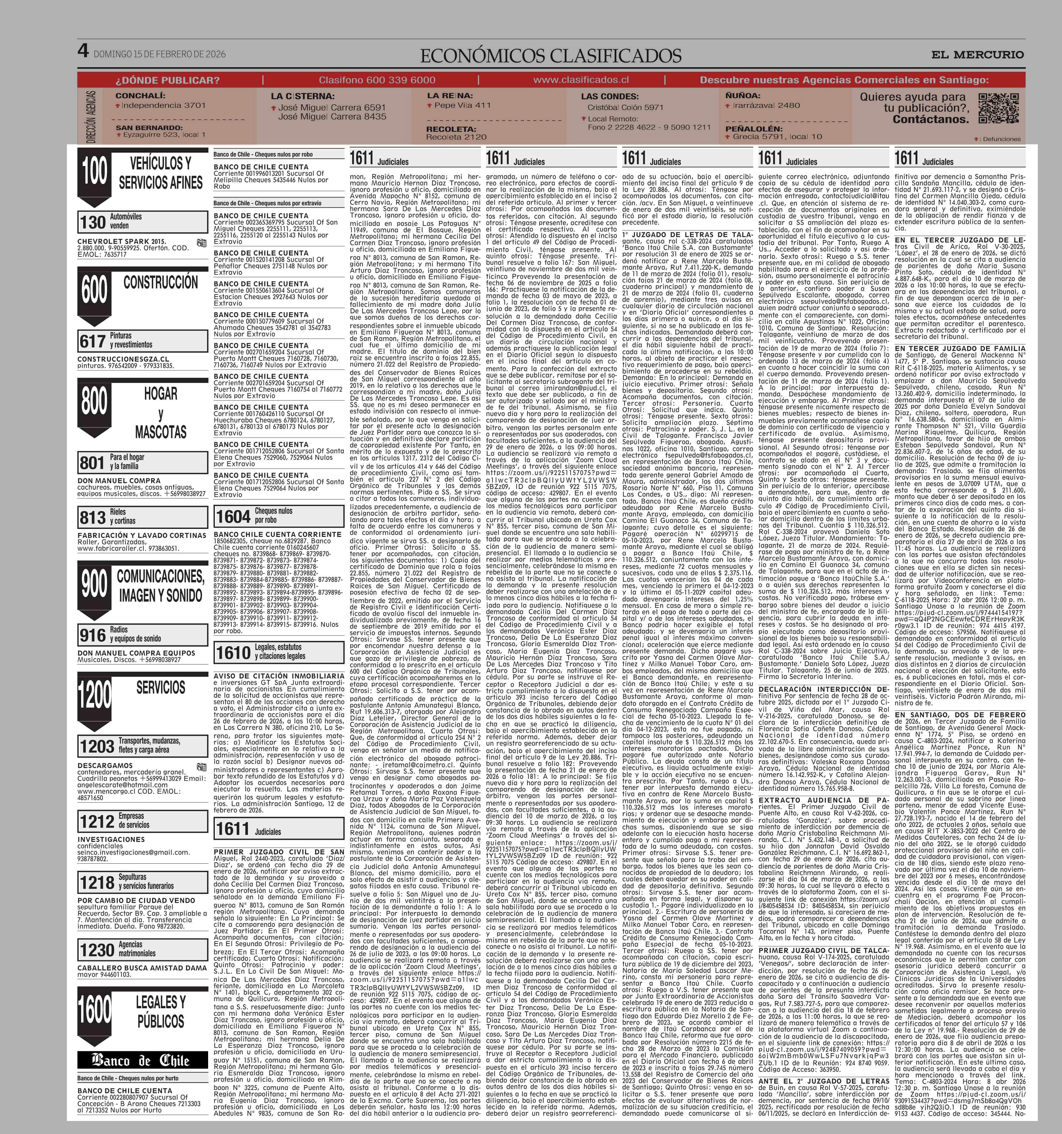 clasificados 15-02-2026 El Mercurio |