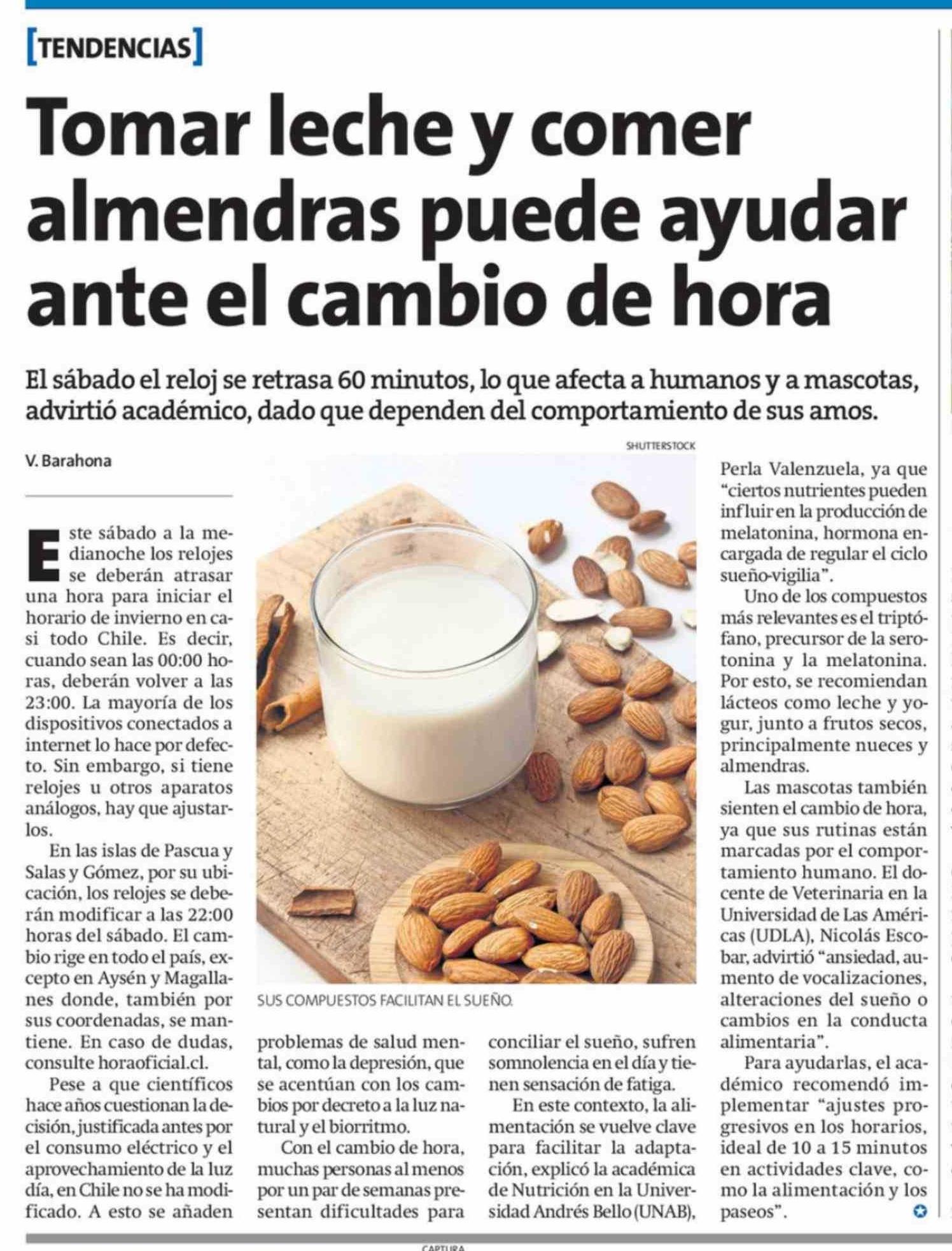 Tomar leche y comer almendras puede ayudar ante el cambio de hora 02-04-2026 La Estrella de Iquique |