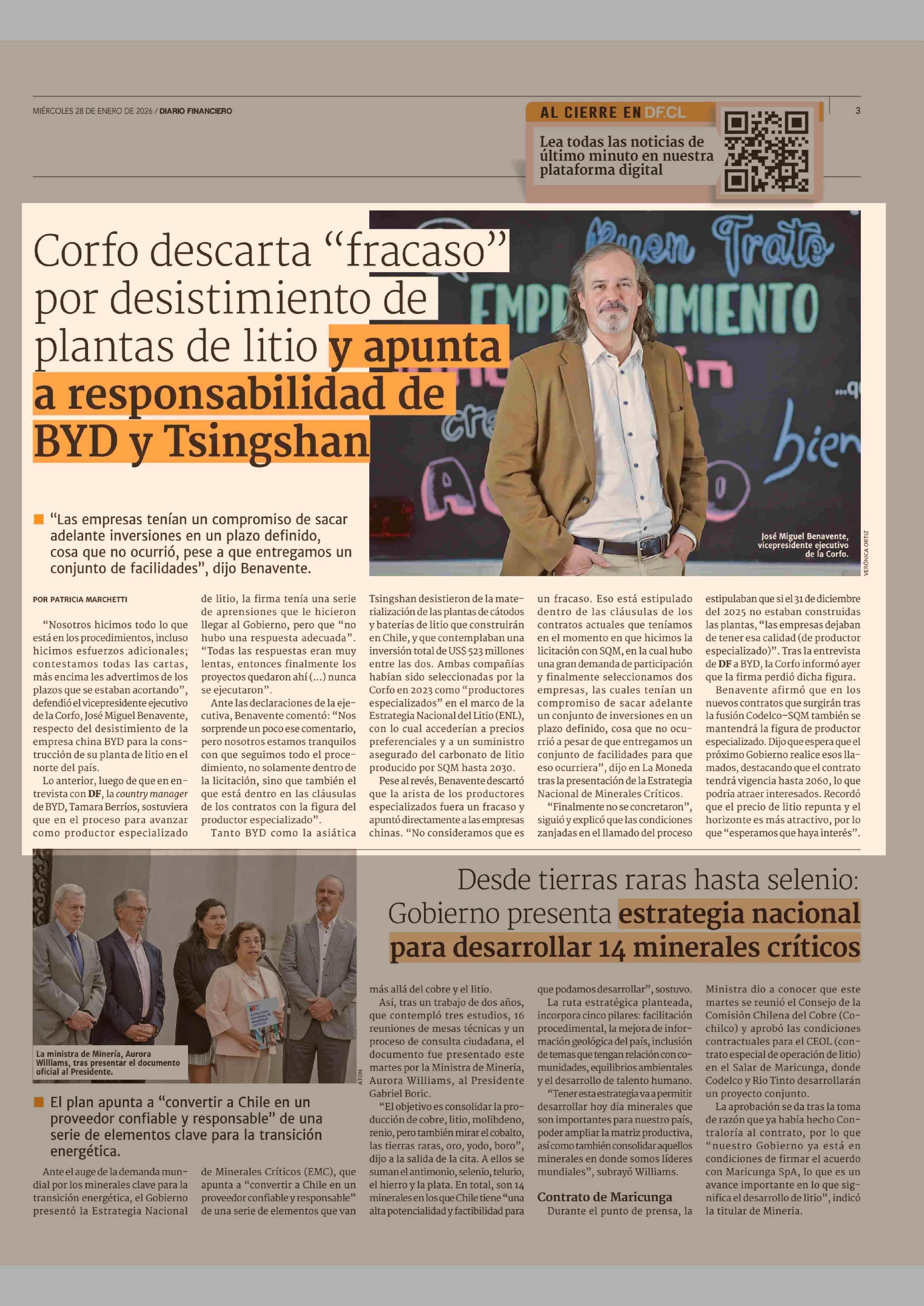 Título: Corfo descarta "fracaso por desistimiento de LEMPE plantas de litio y apunta a responsabilidad de BYD y Tsingshan cre A