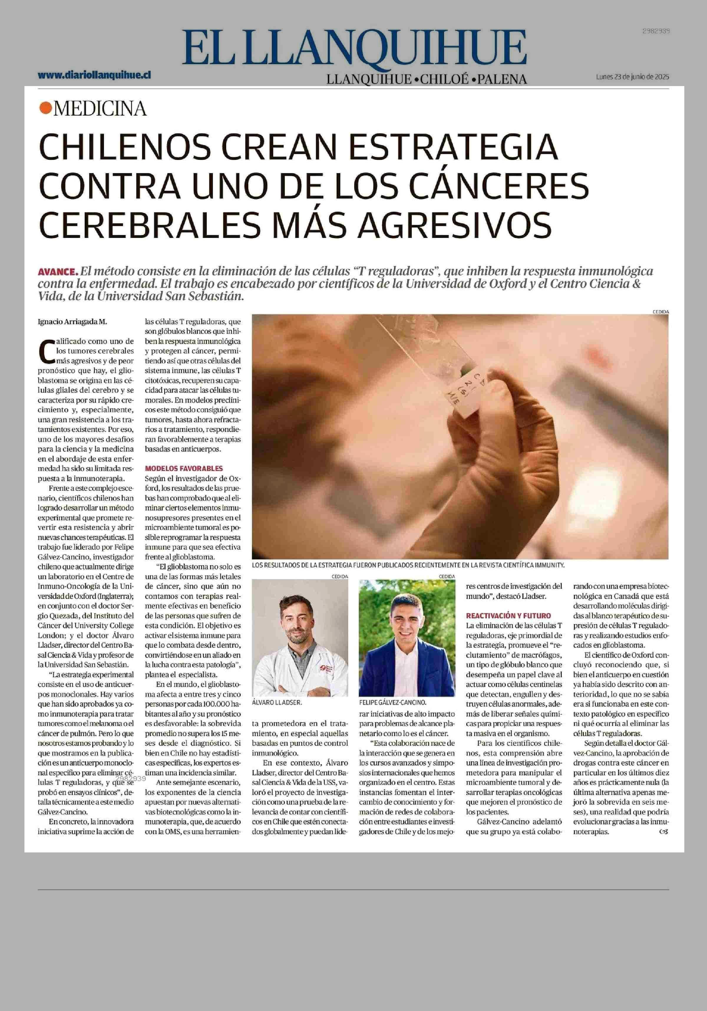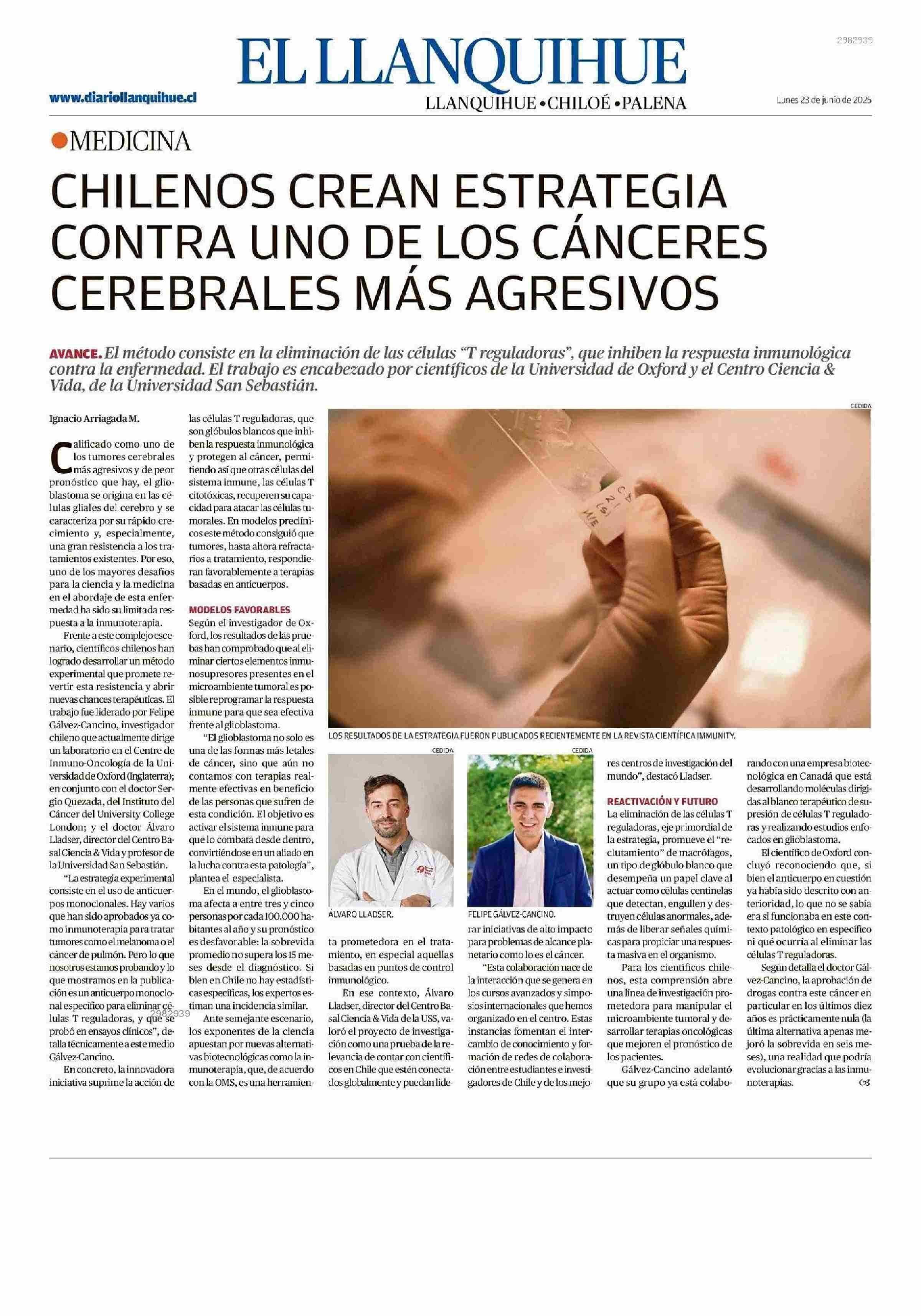 CHILENOS CREAN ESTRATEGIA CONTRA UNO DE LOS CÁNCERES CEREBRALES MÁS AGRESIVOS 23-06-2025 El Llanquihue |