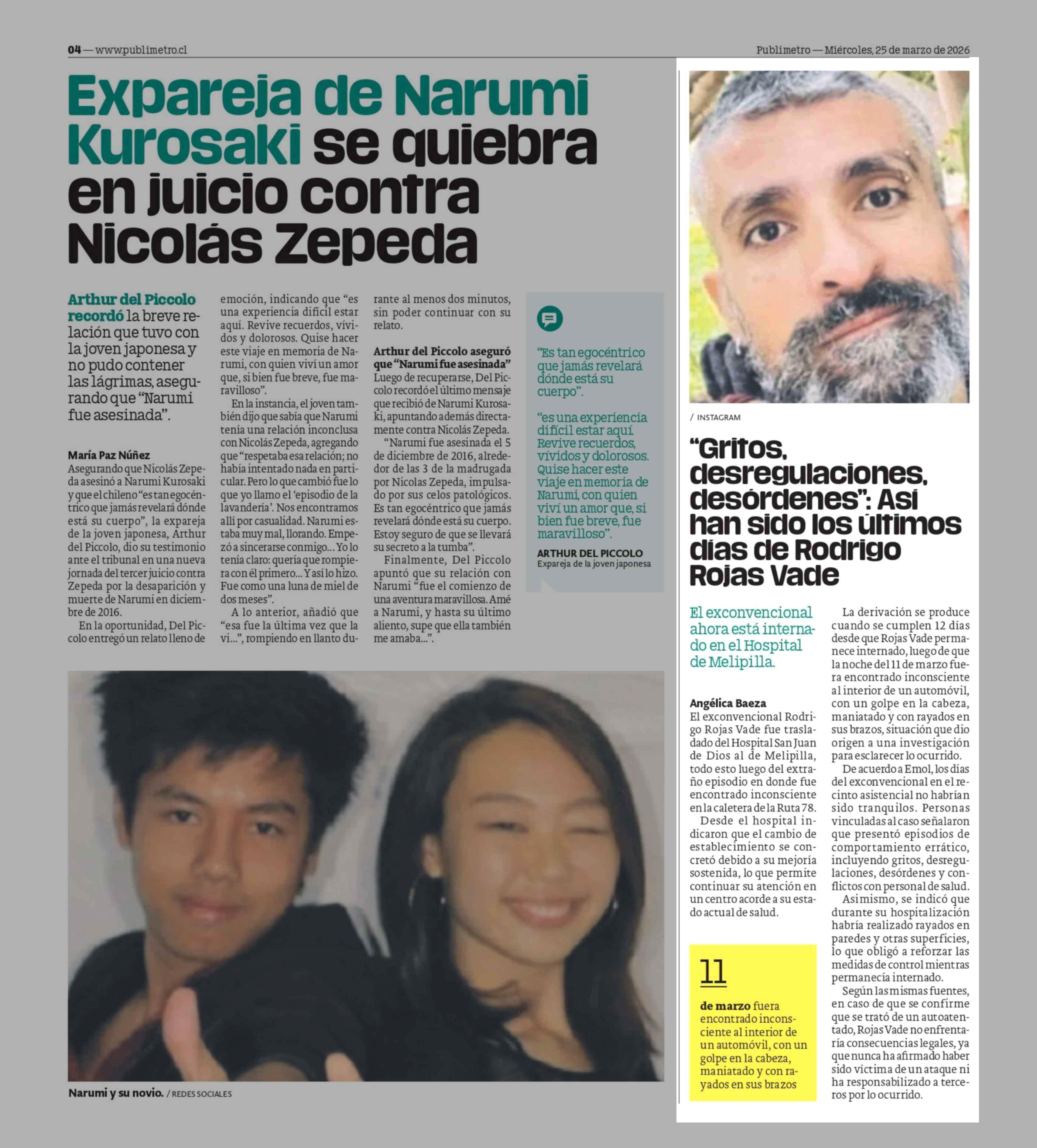 "Gritos, desregulaciones. desordenes": ASi han sido los últimos dias de Rodrigo Rojas Vade 25-03-2026 Publimetro |