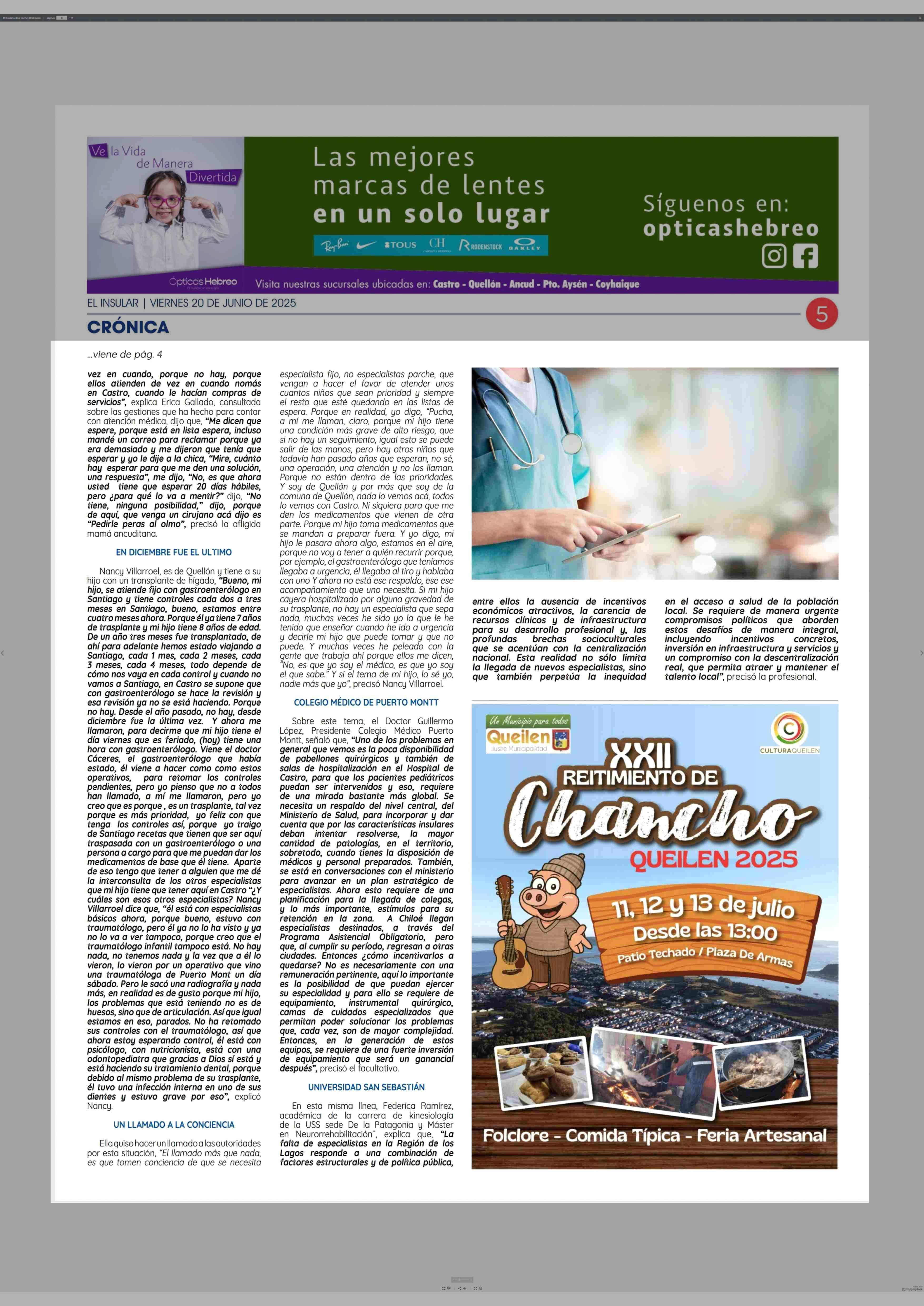 | Título: | Hospitales sin médicos especialistas: una realidad que enfrentan día a día las familias chilotas |