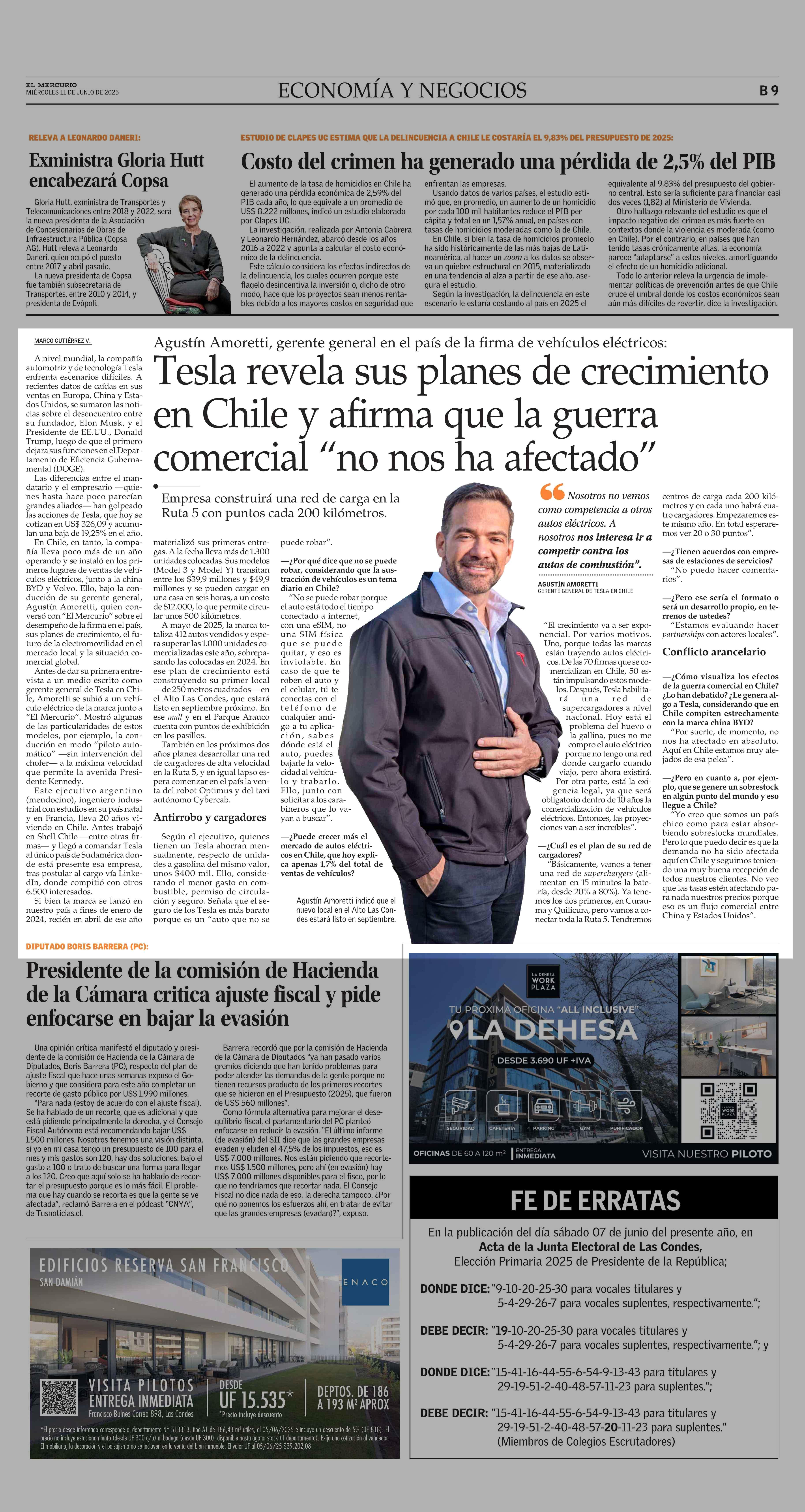 Tesla revela sus planes de crecimiento en Chile y afirma que la guerra comercial “no nos ha afectado” 11-06-2025 El Mercurio |