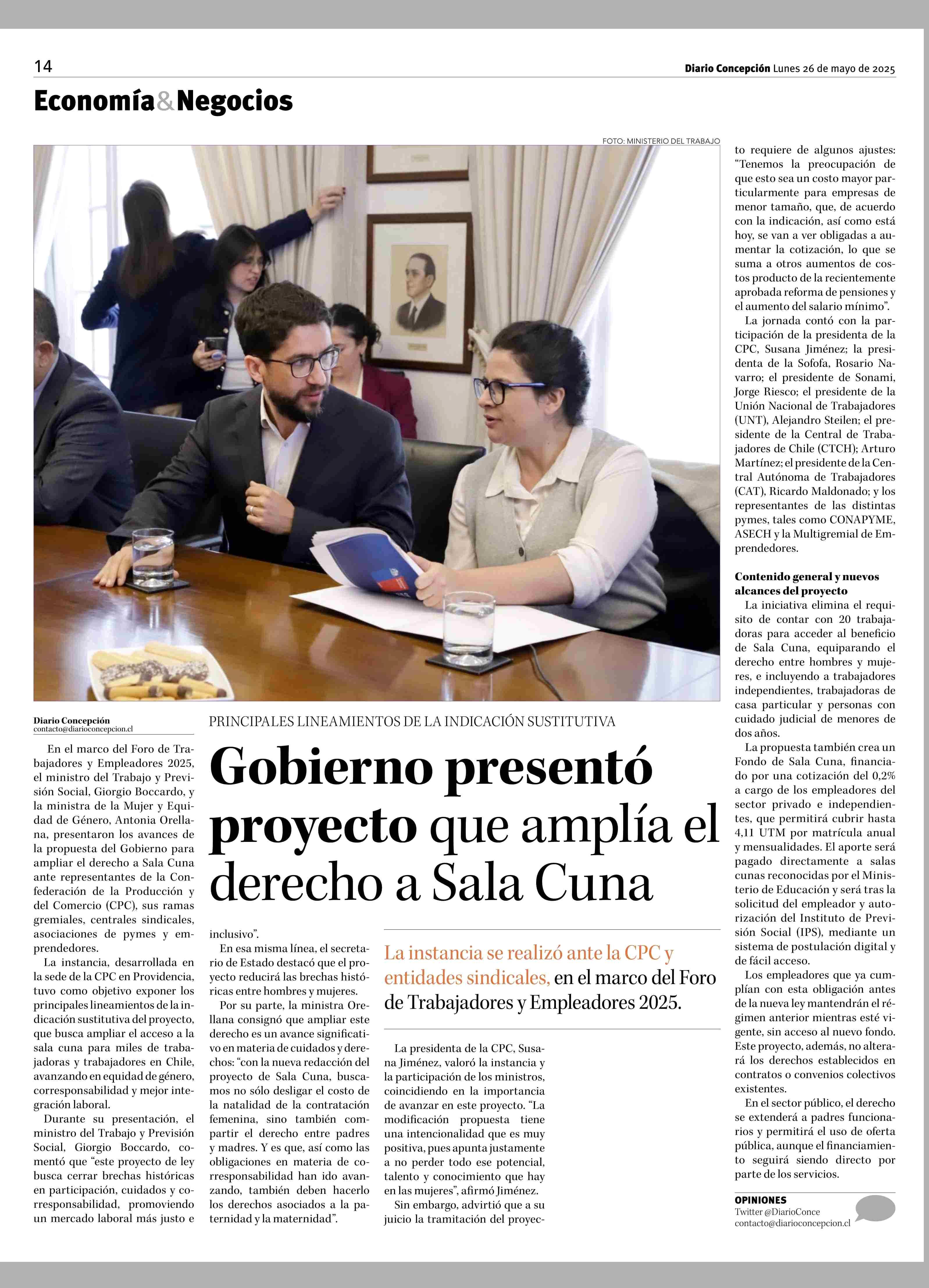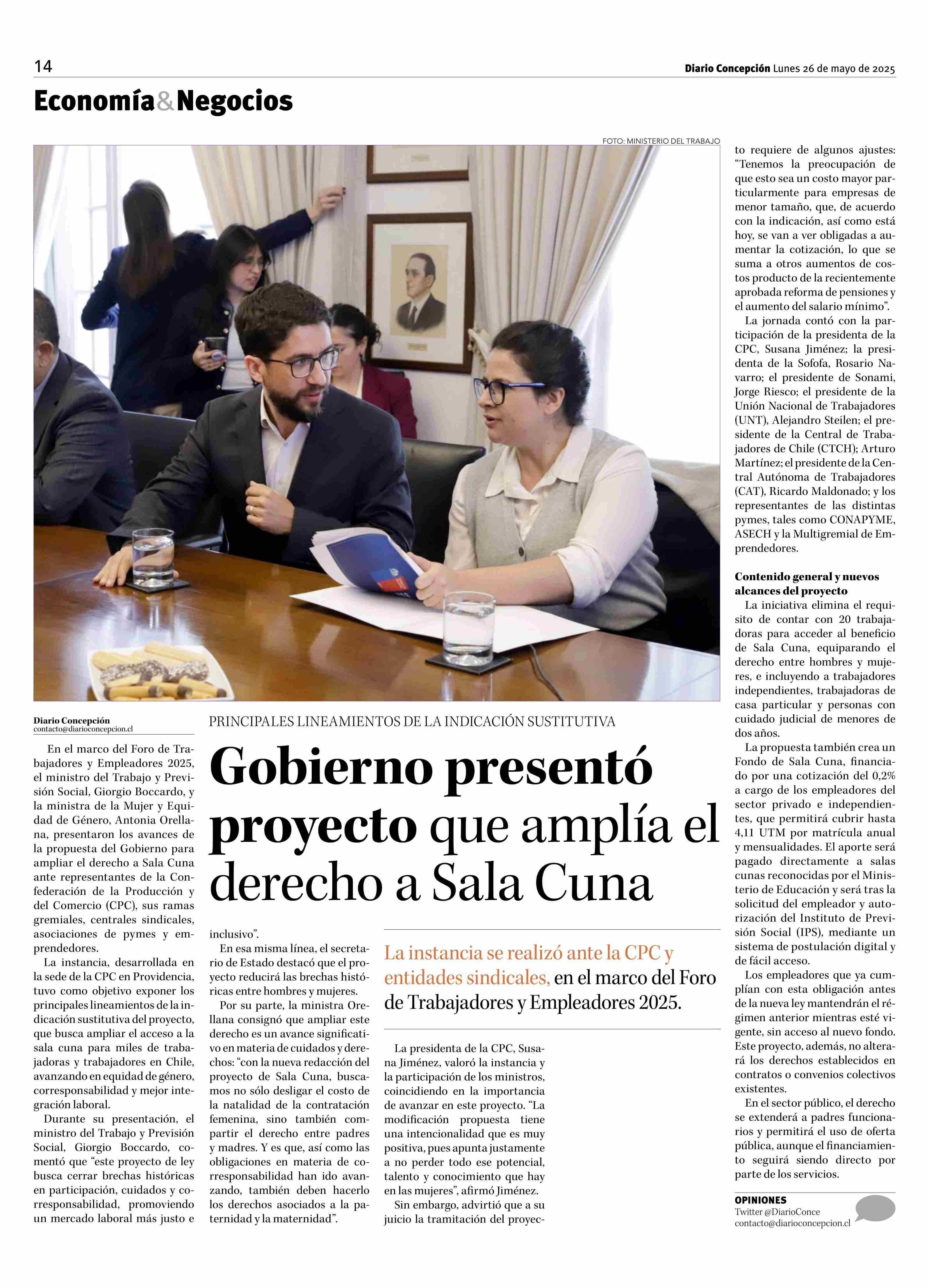 Gobierno presentó proyecto que amplía el derecho a Sala Cuna 26-05-2025 Diario Concepción |