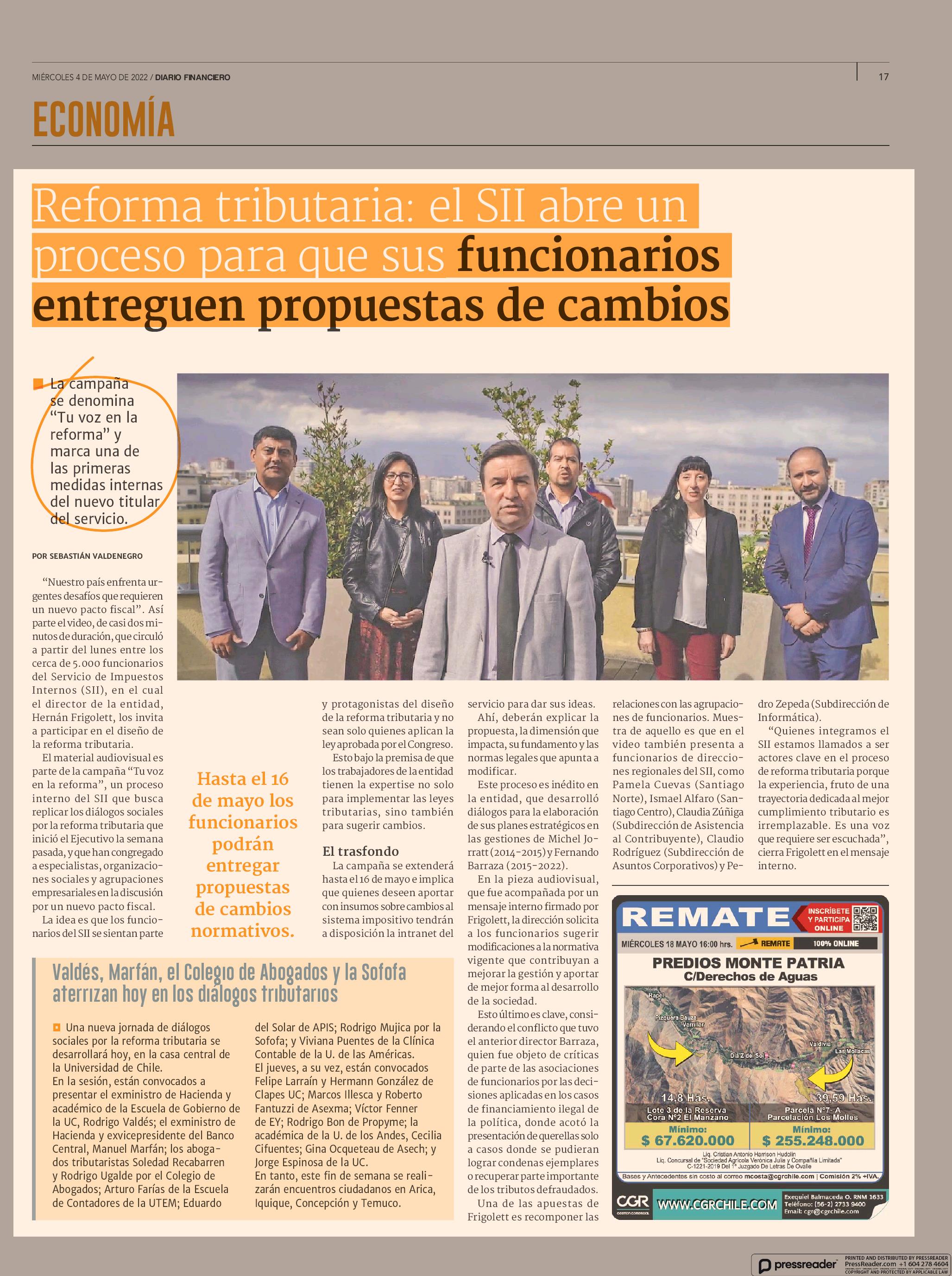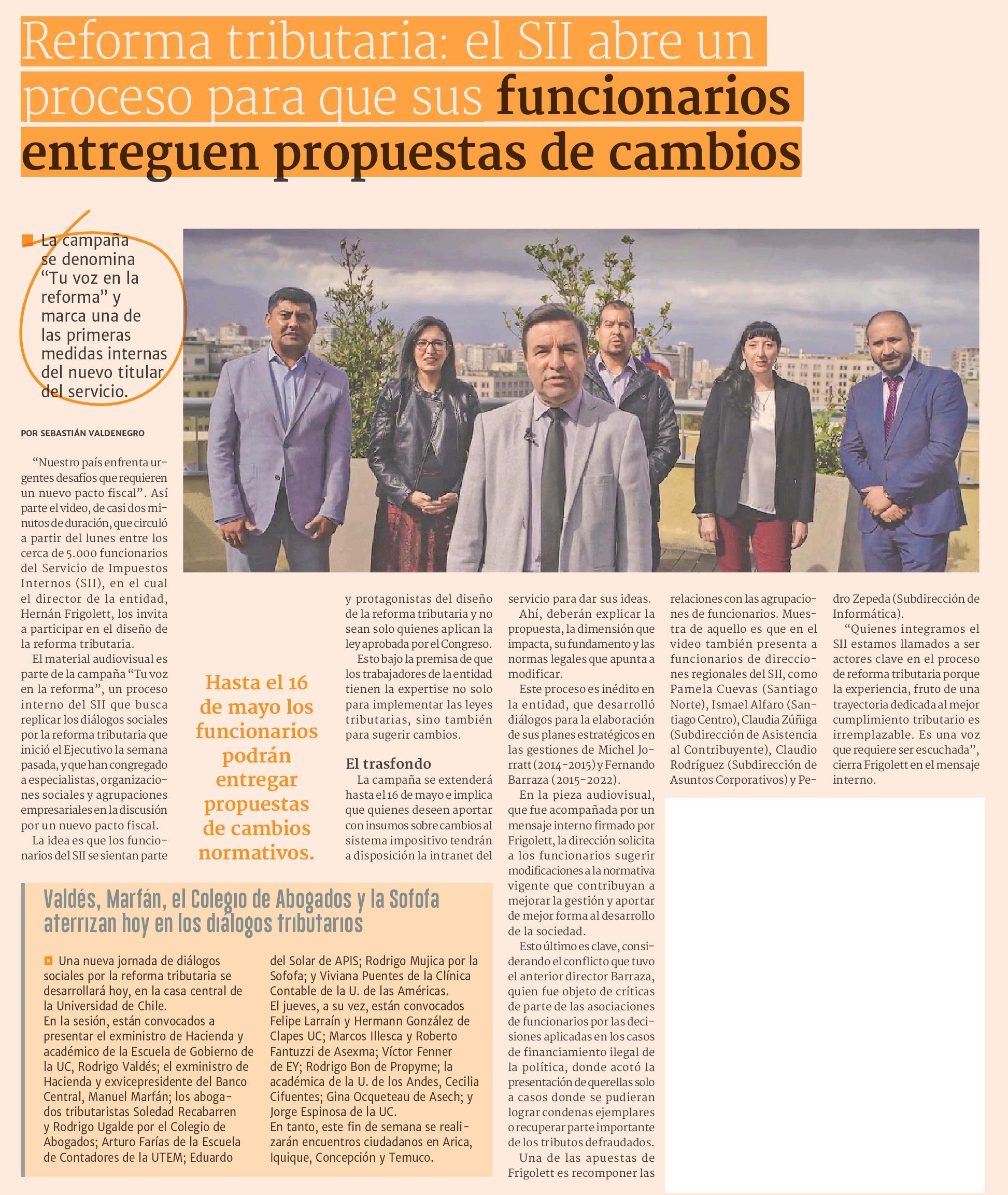 Título: Reforma tributaria: el SII abre un proceso para que sus funcionarios entreguen propuestas de cambios