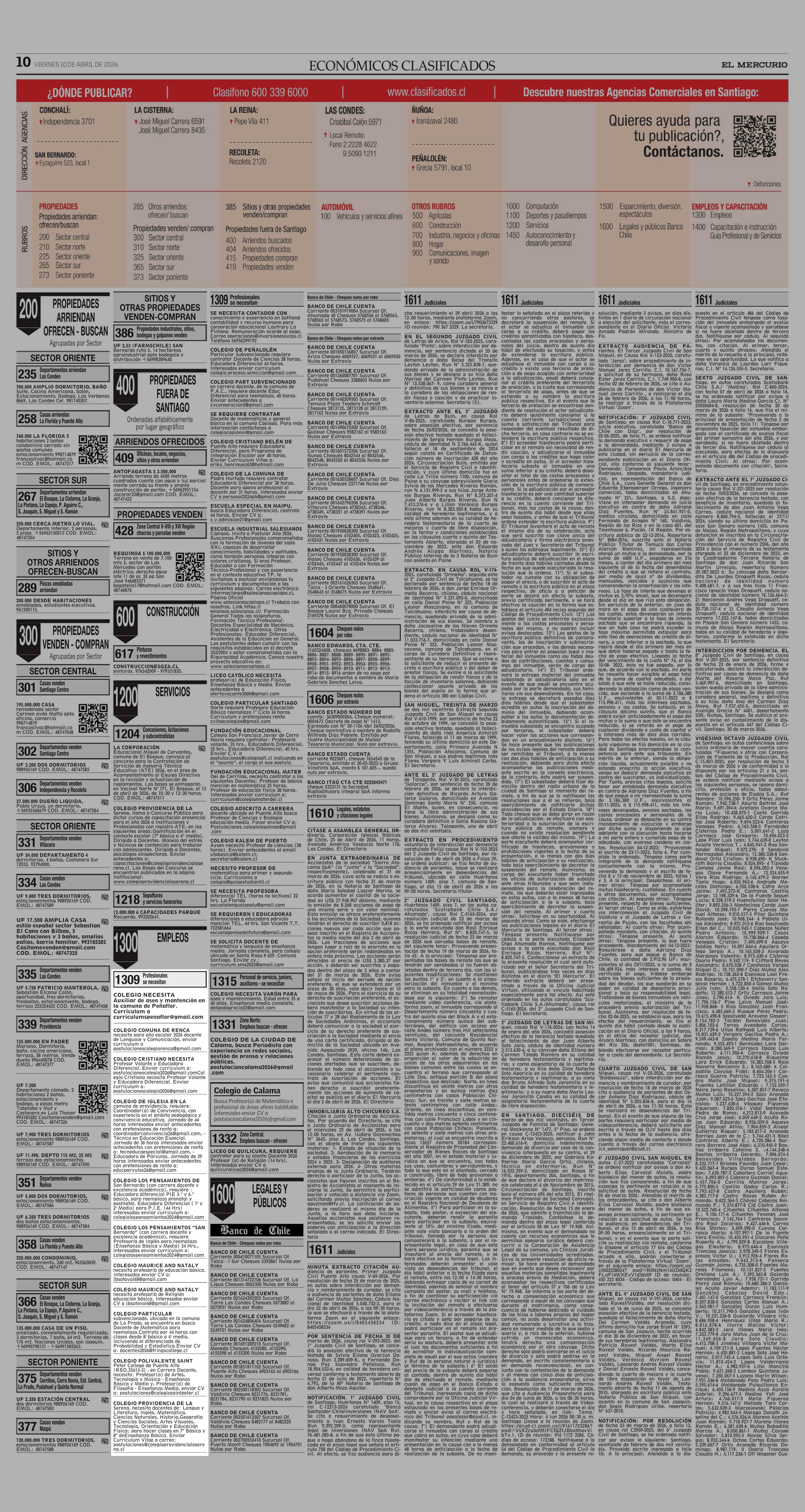 AVISO LICITACIONES: Área Educación 10-04-2026 El Mercurio |