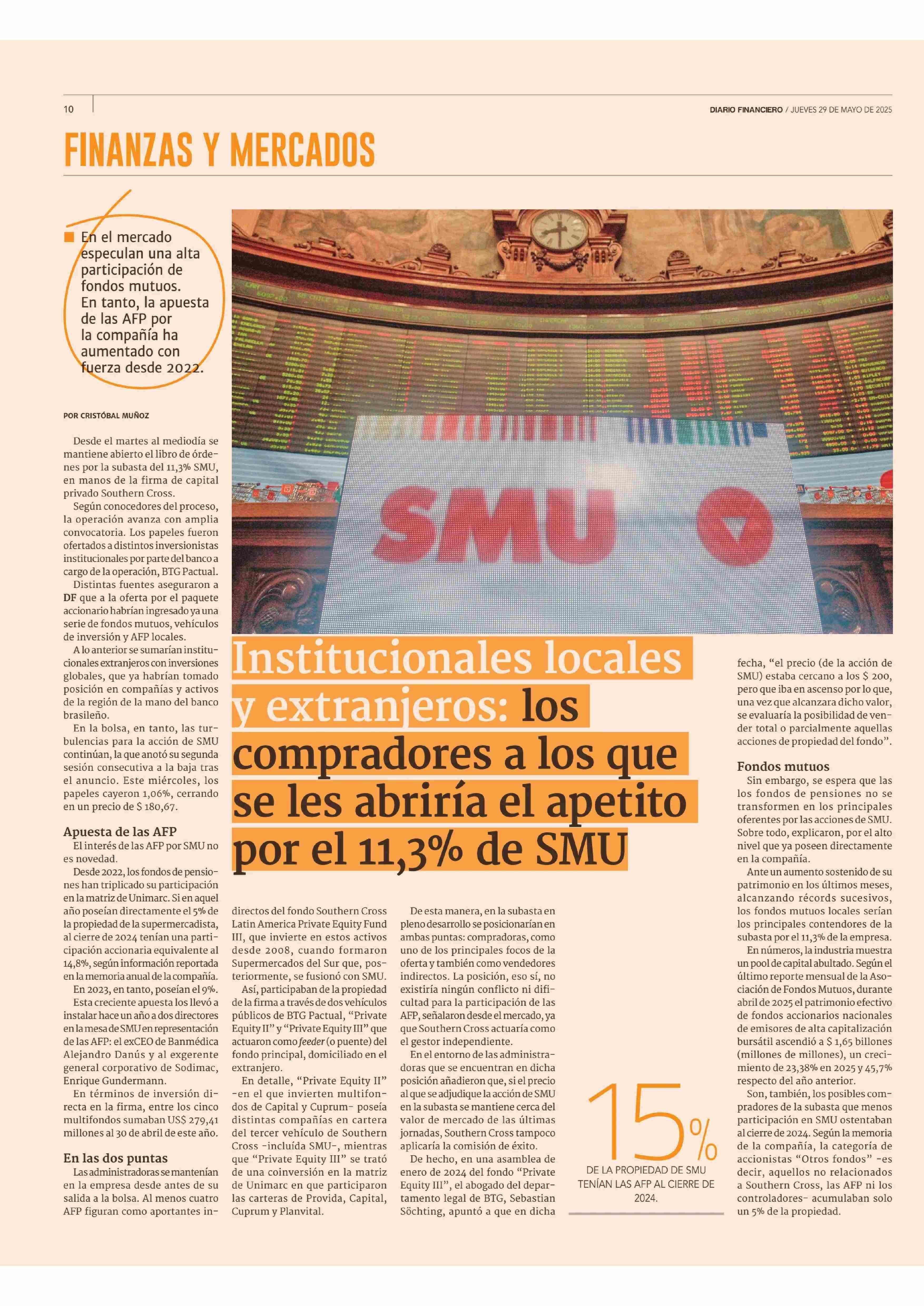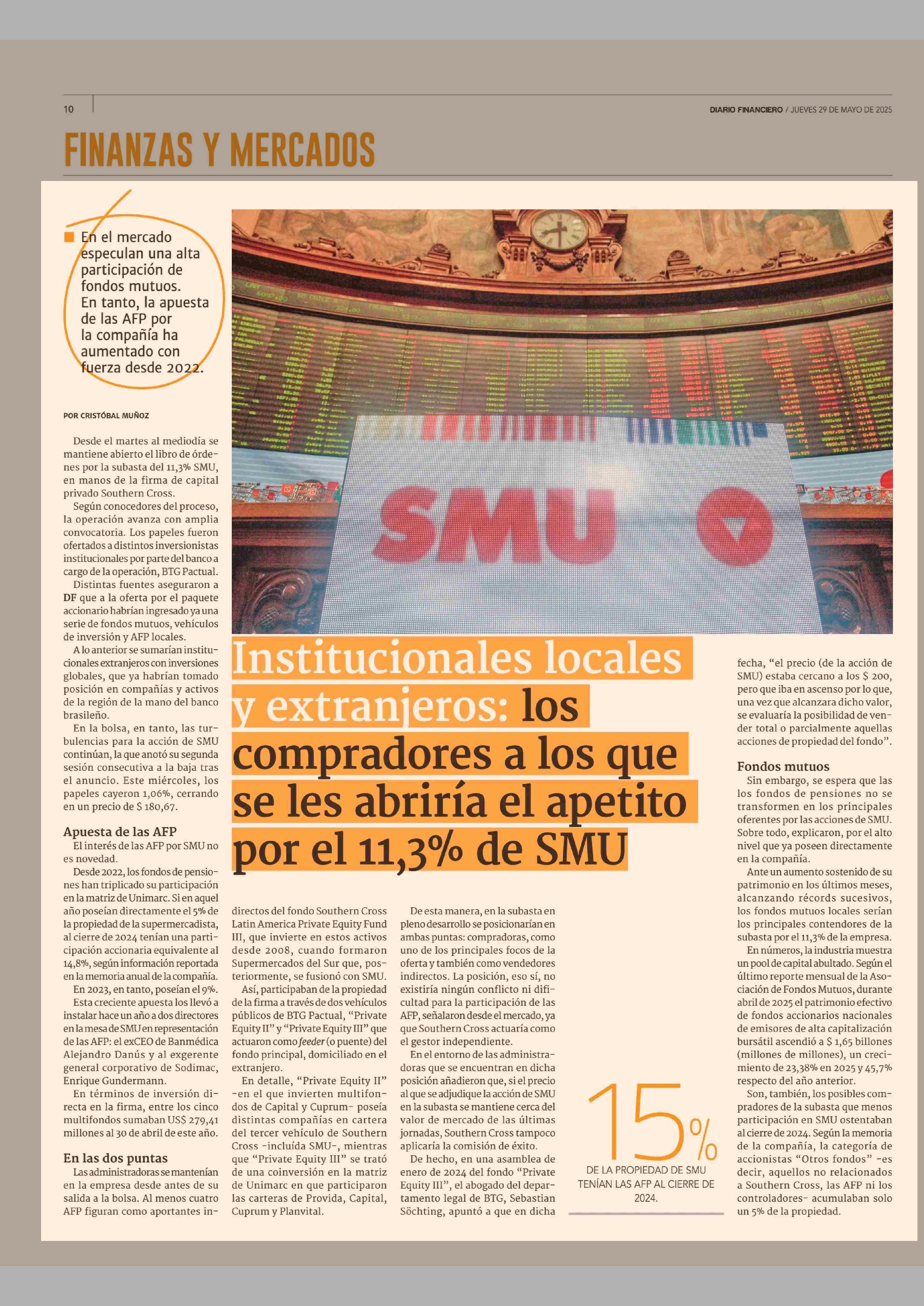 les abriría el apetito por el 11,3% de SMU 29-05-2025 Diario Financiero |