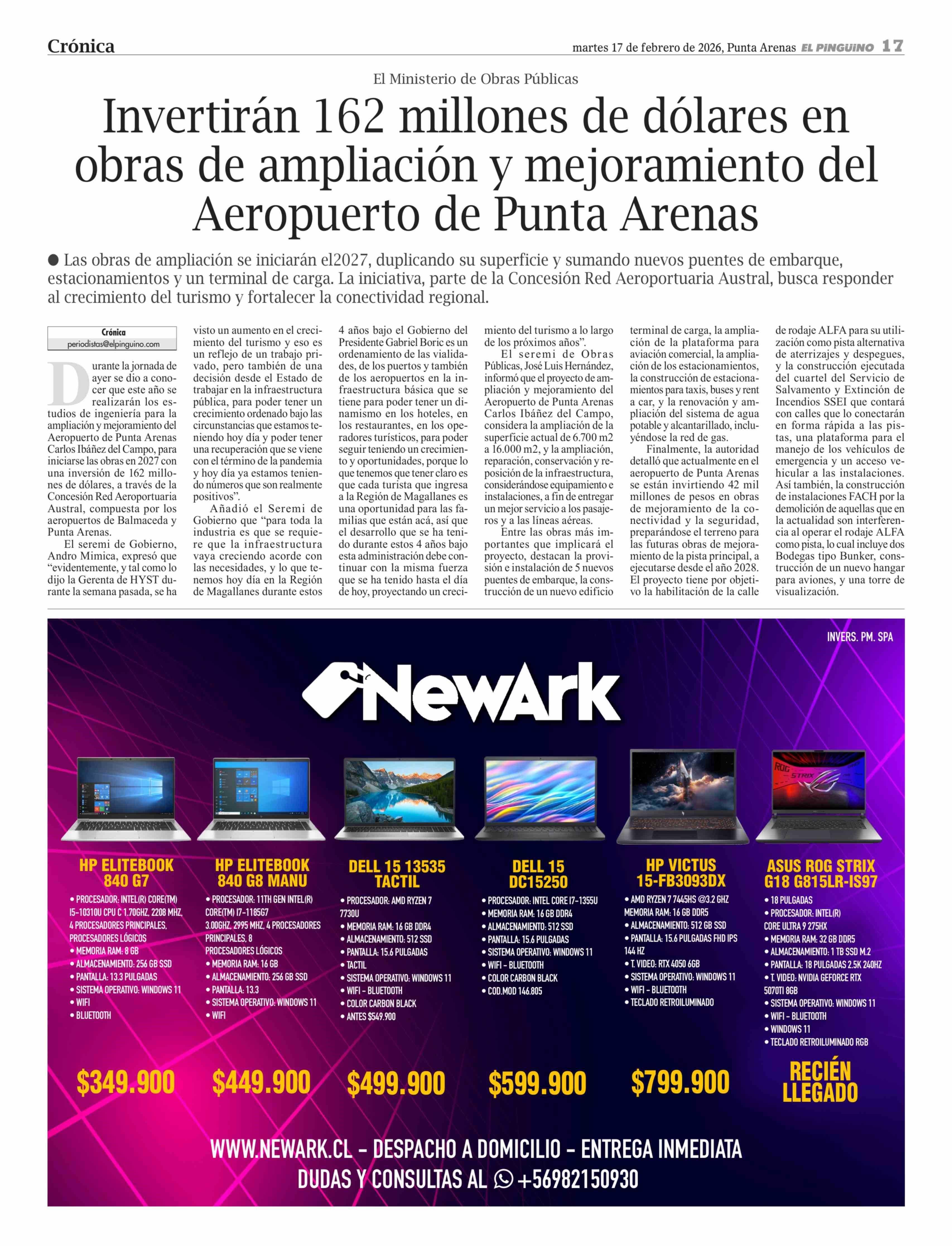Título: Invertirán 162 millones de dólares en obras de ampliación y mejoramiento del Aeropuerto de Punta Arenas