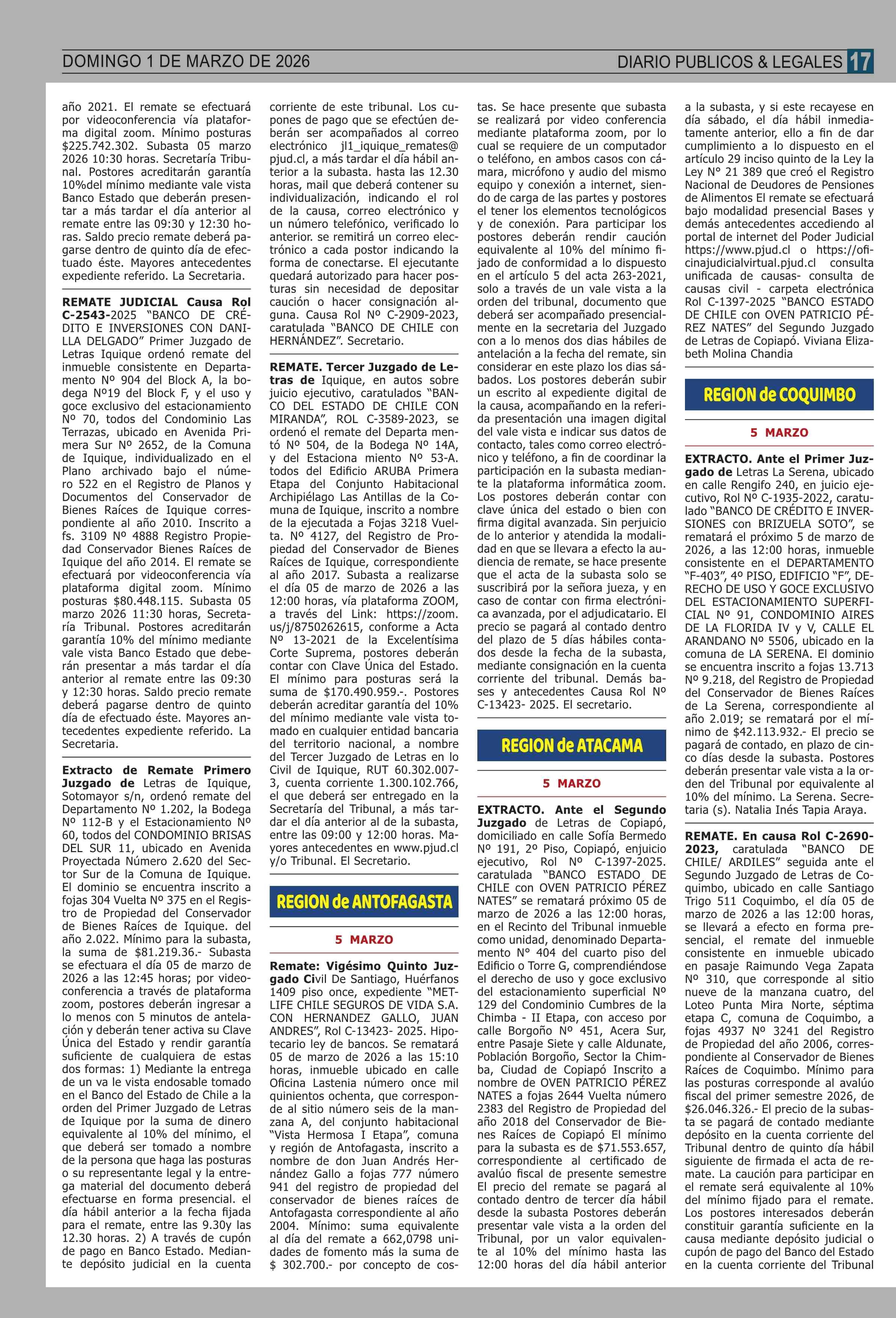 Título: REMATES: REMATES de PROPIEDADES (ORDENADOS por REGIONES