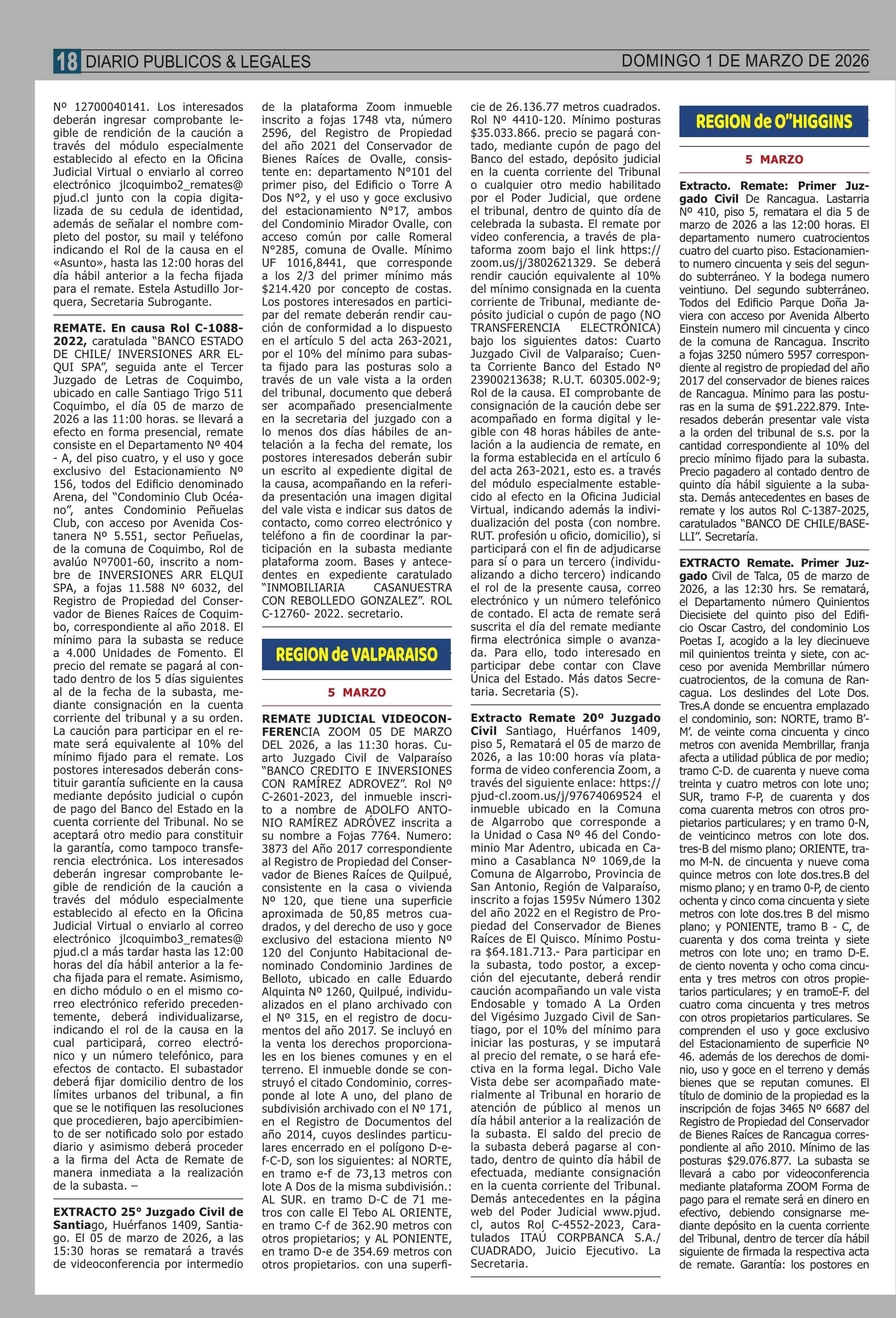 Fecha: 01-03-2026 Sector: Remates Región: Región Metropolitana de Santiago