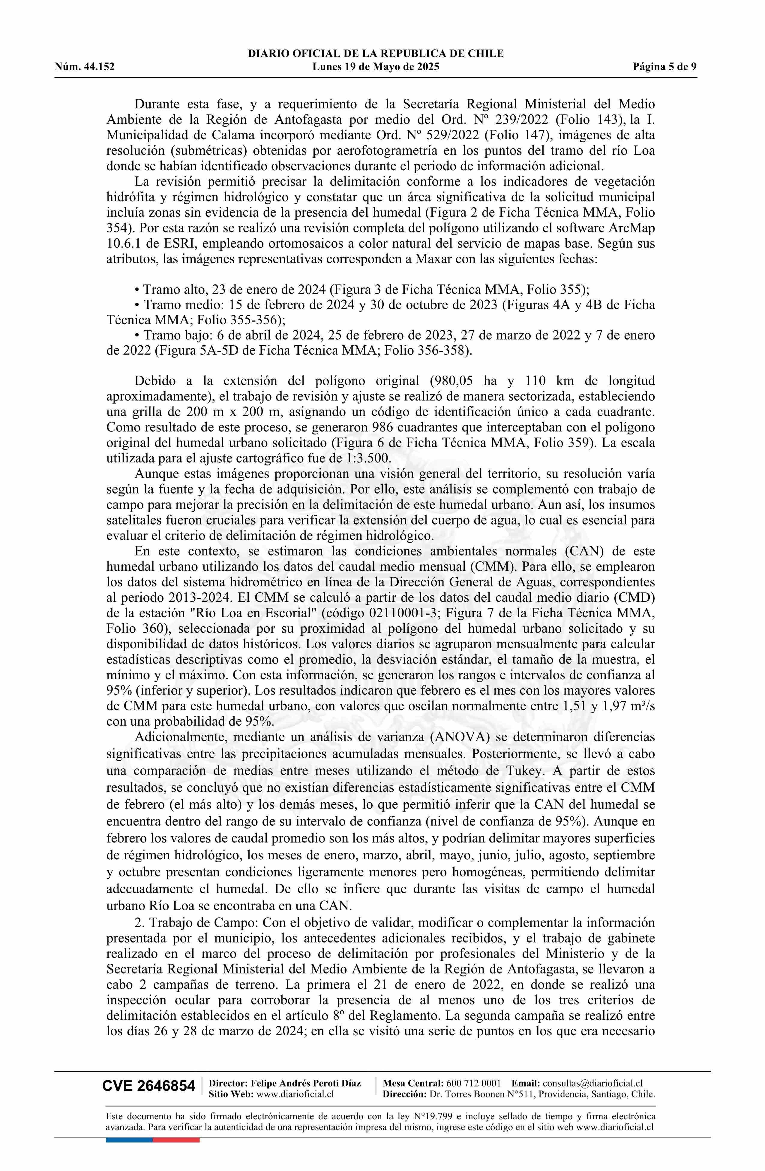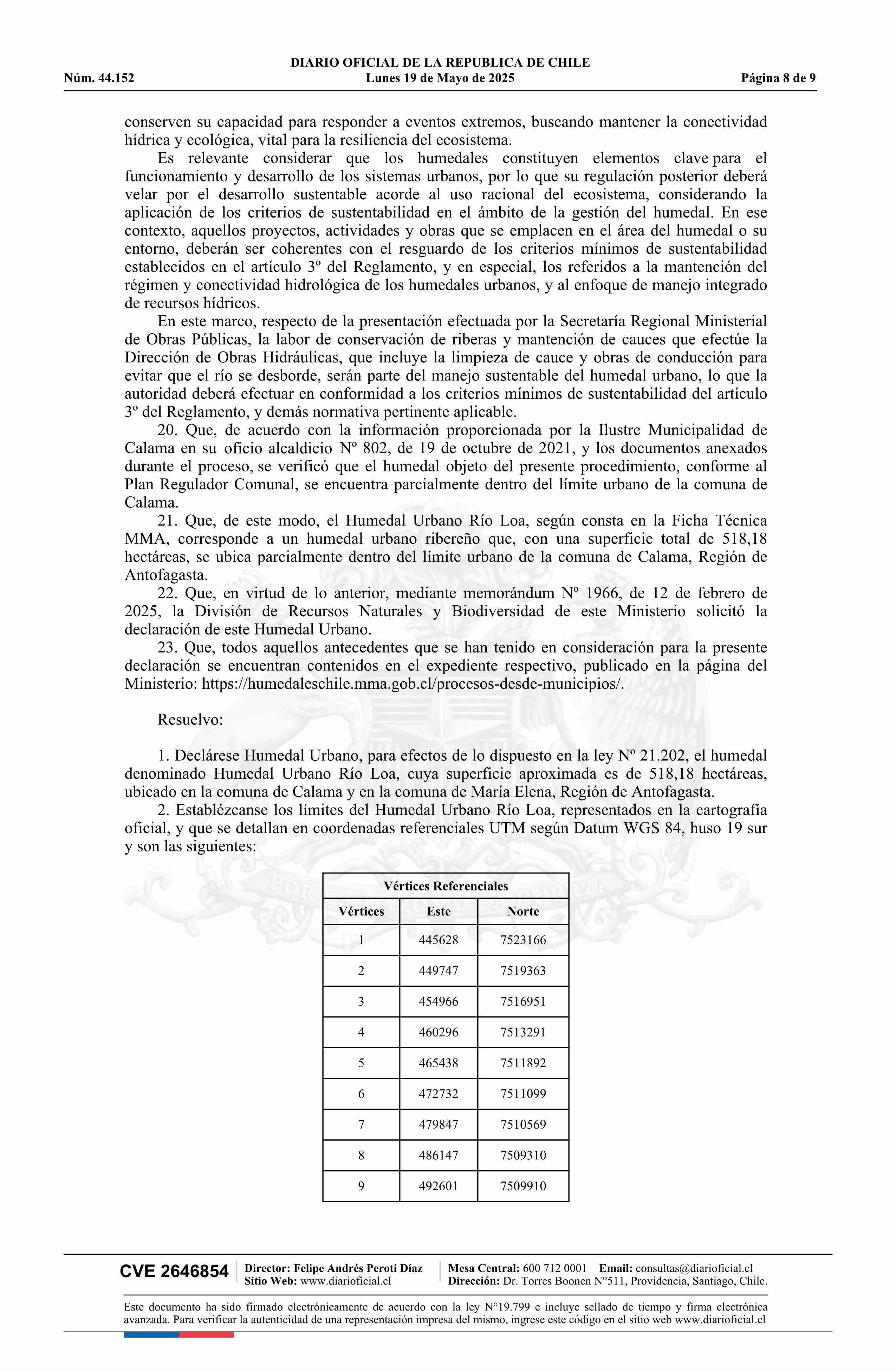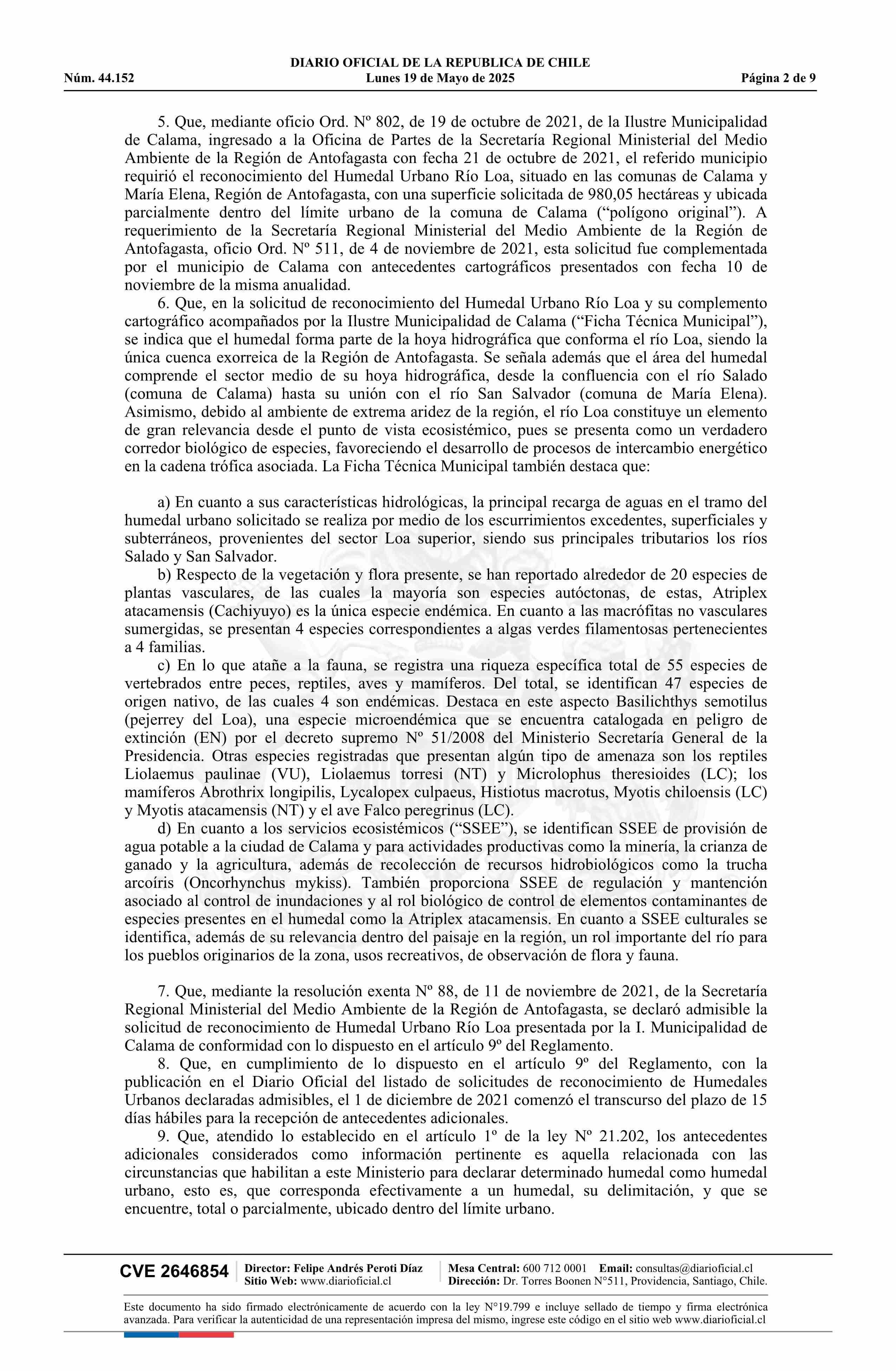 Resolución exenta número 2.956, de 2025.- Reconoce, por solicitud municipal, Humedal Urbano Río Loa 19-05-2025 Diario Oficial Edición Electrónica |