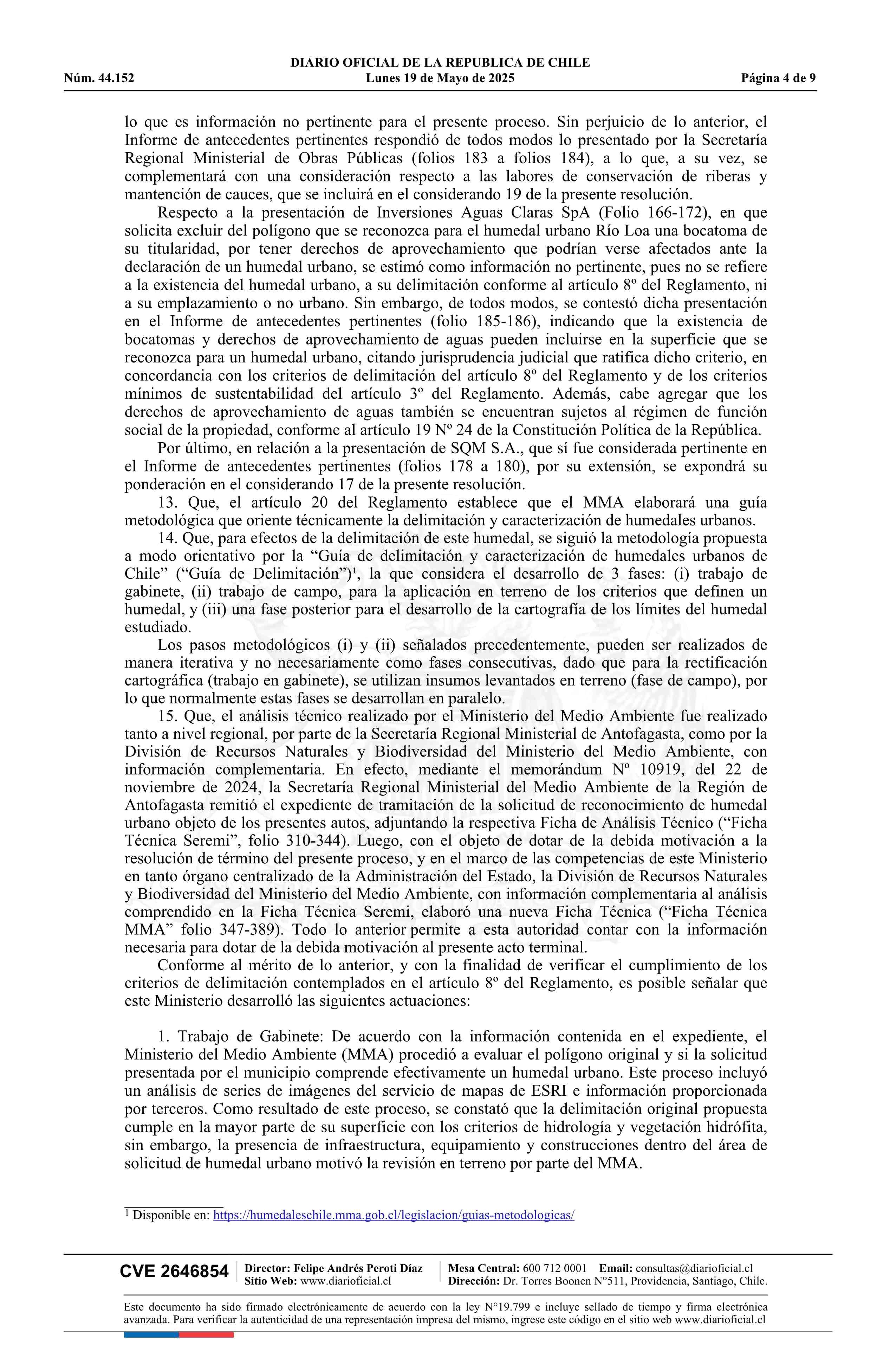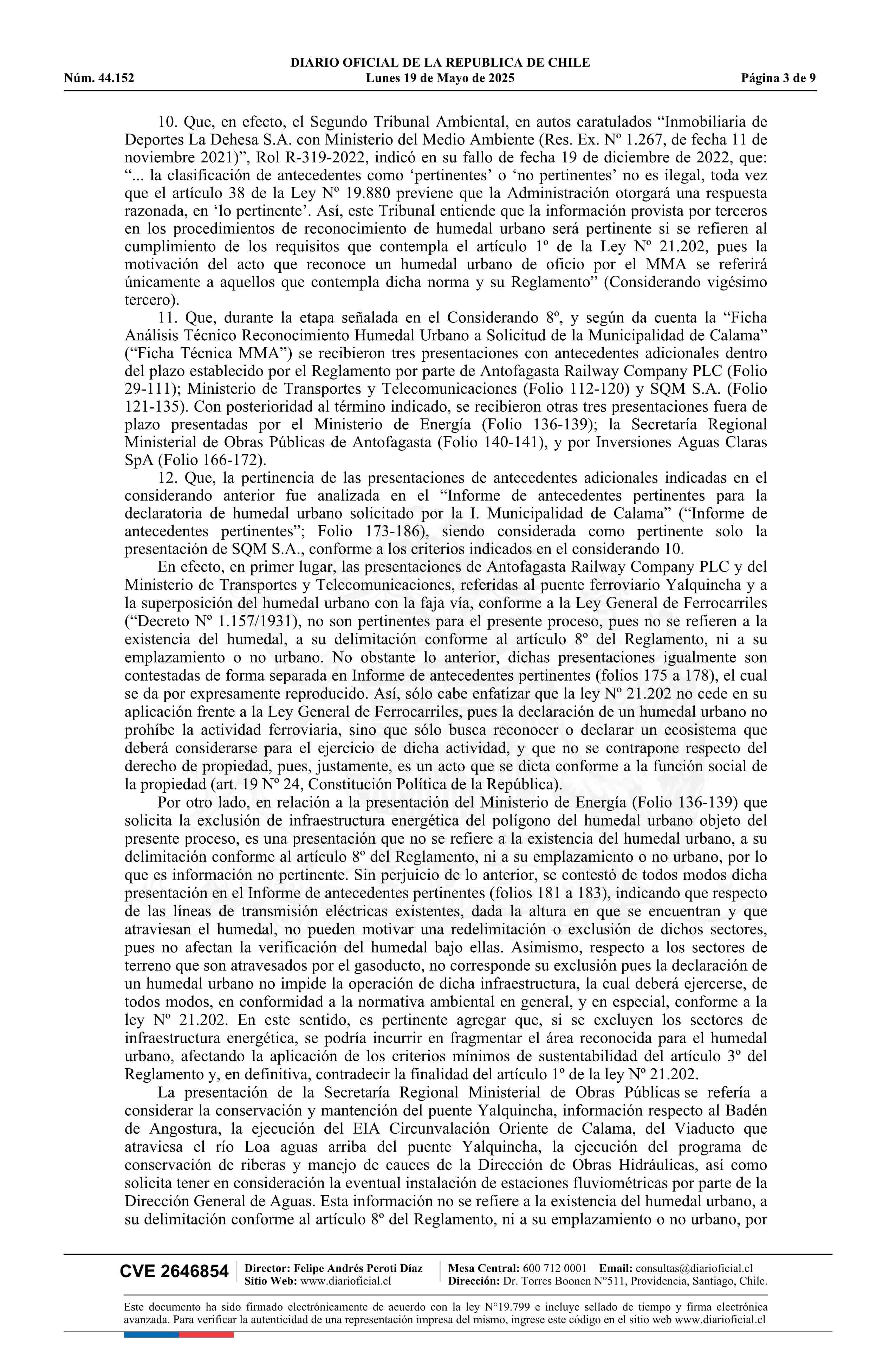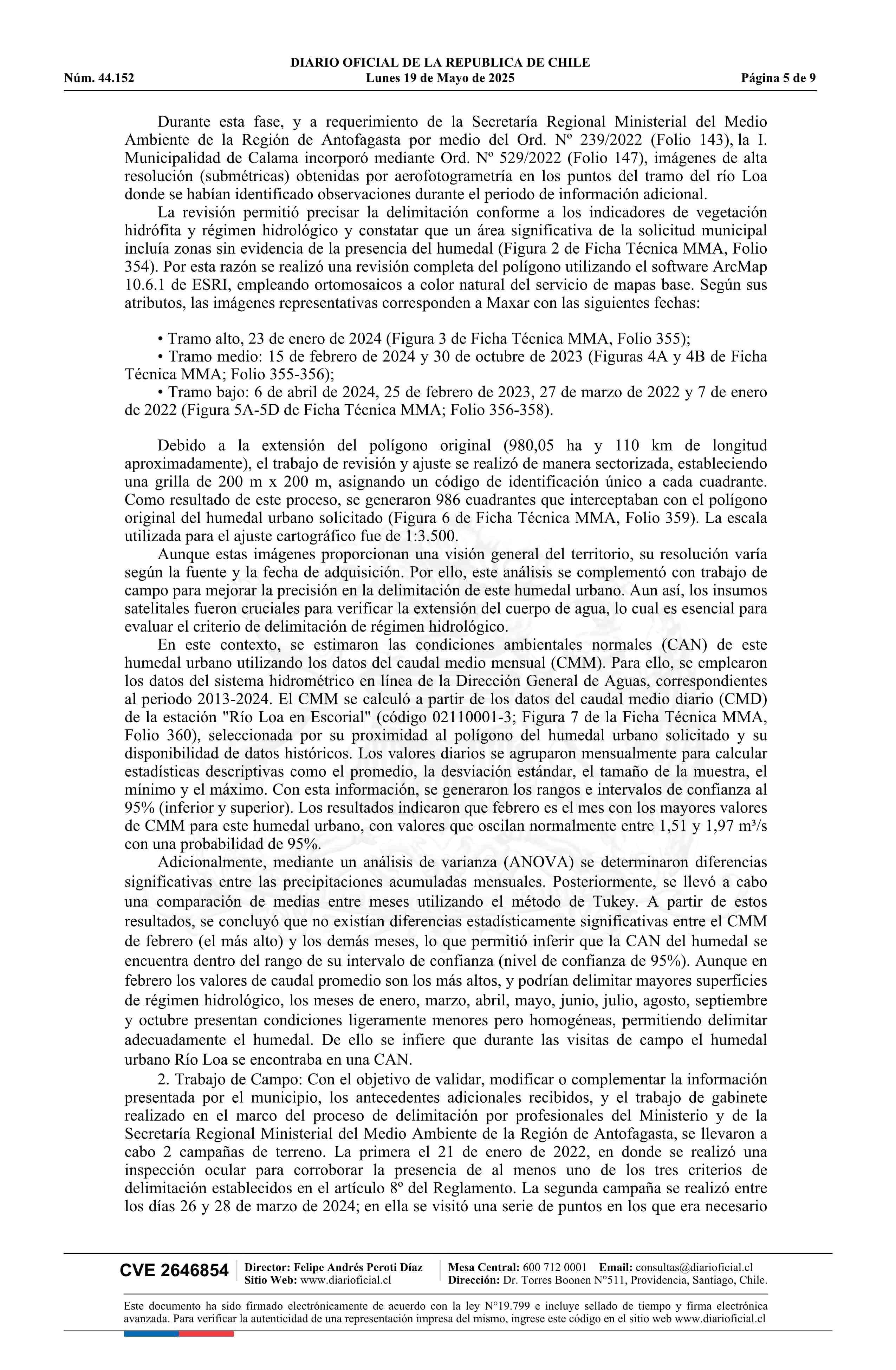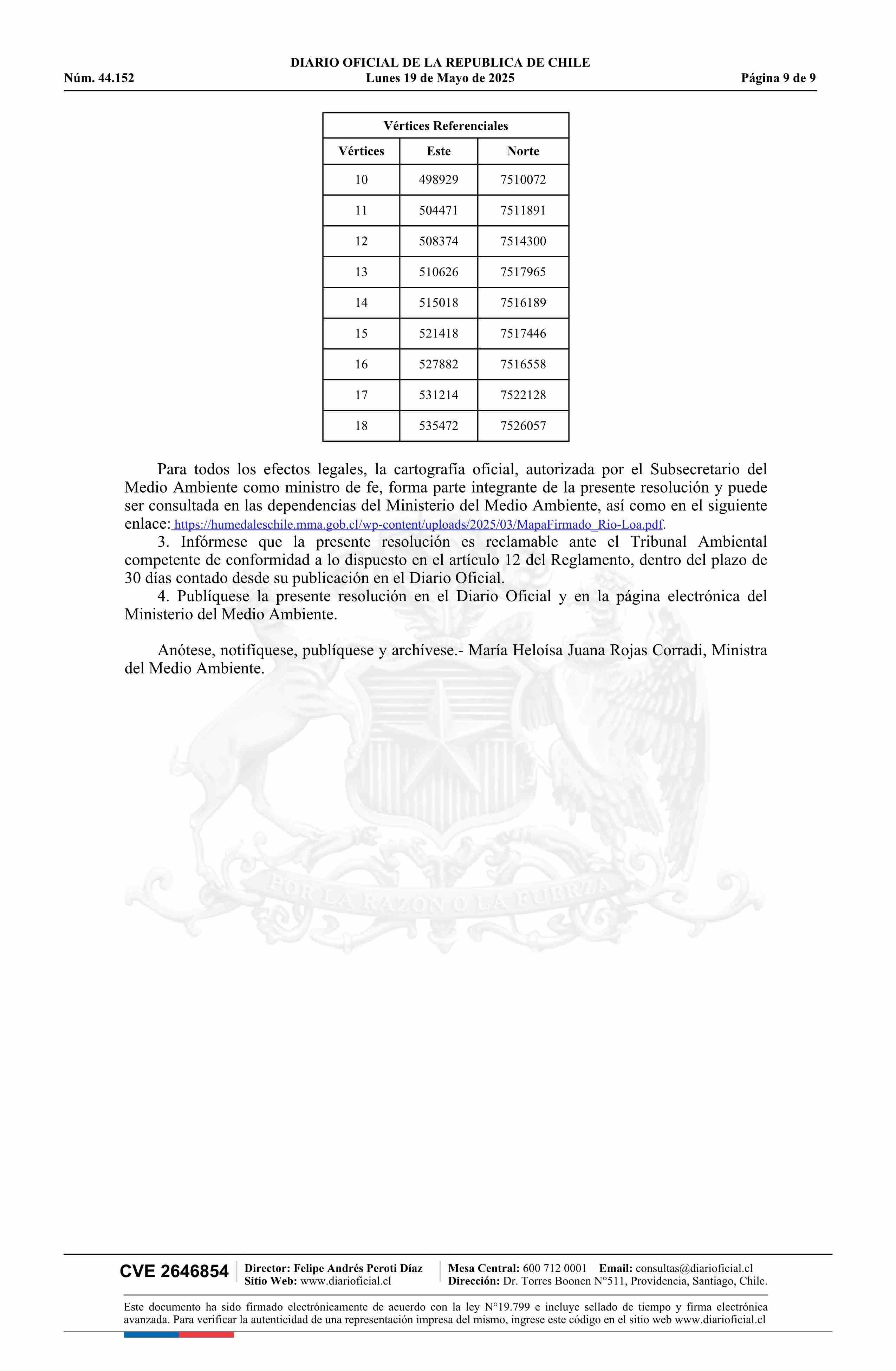 Resolución exenta número 2.956, de 2025.- Reconoce, por solicitud municipal, Humedal Urbano Río Loa 19-05-2025 Diario Oficial Edición Electrónica |