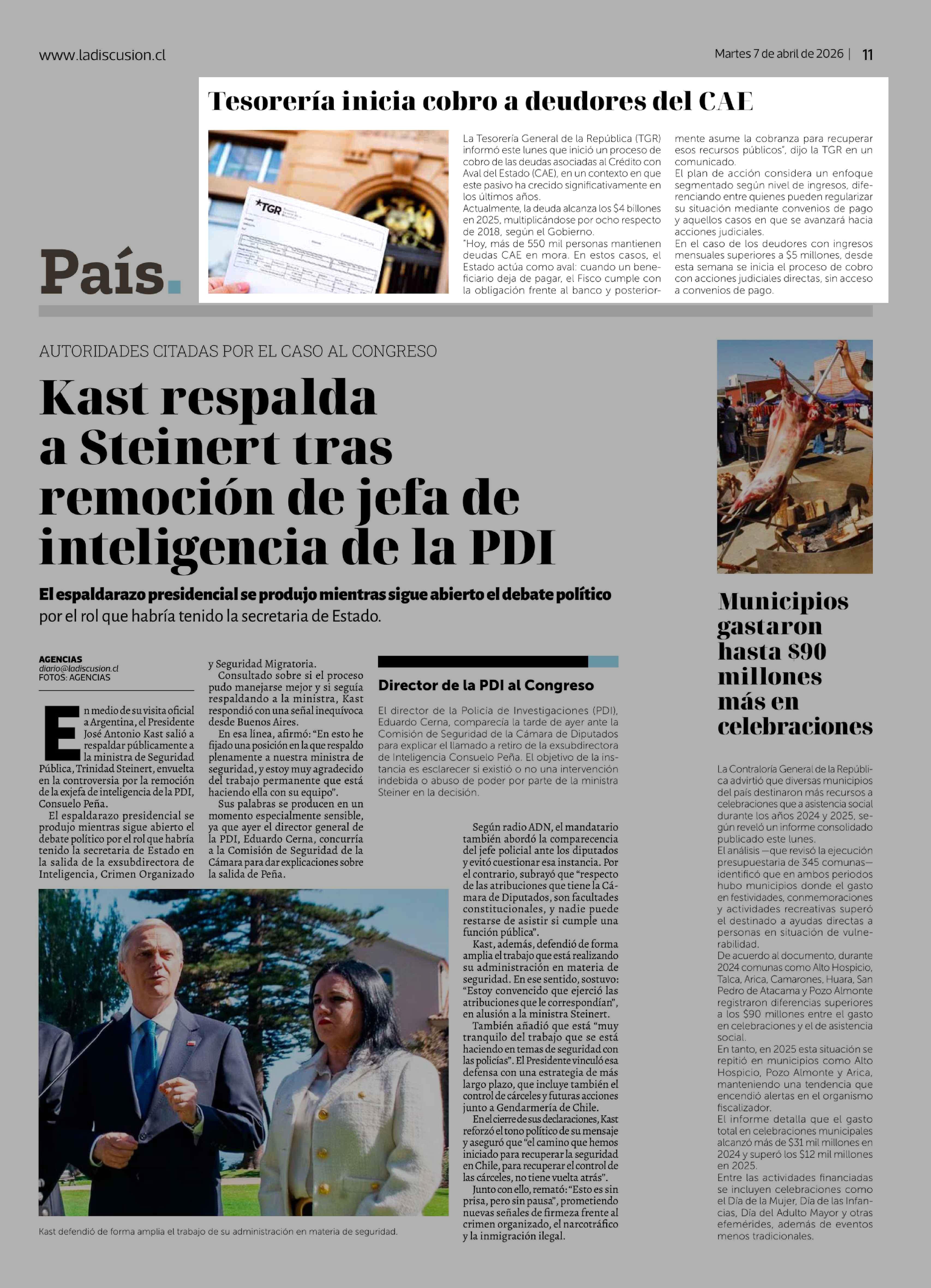 Tesorería inicia cobro a deudores del CAE 07-04-2026 La Discusión |