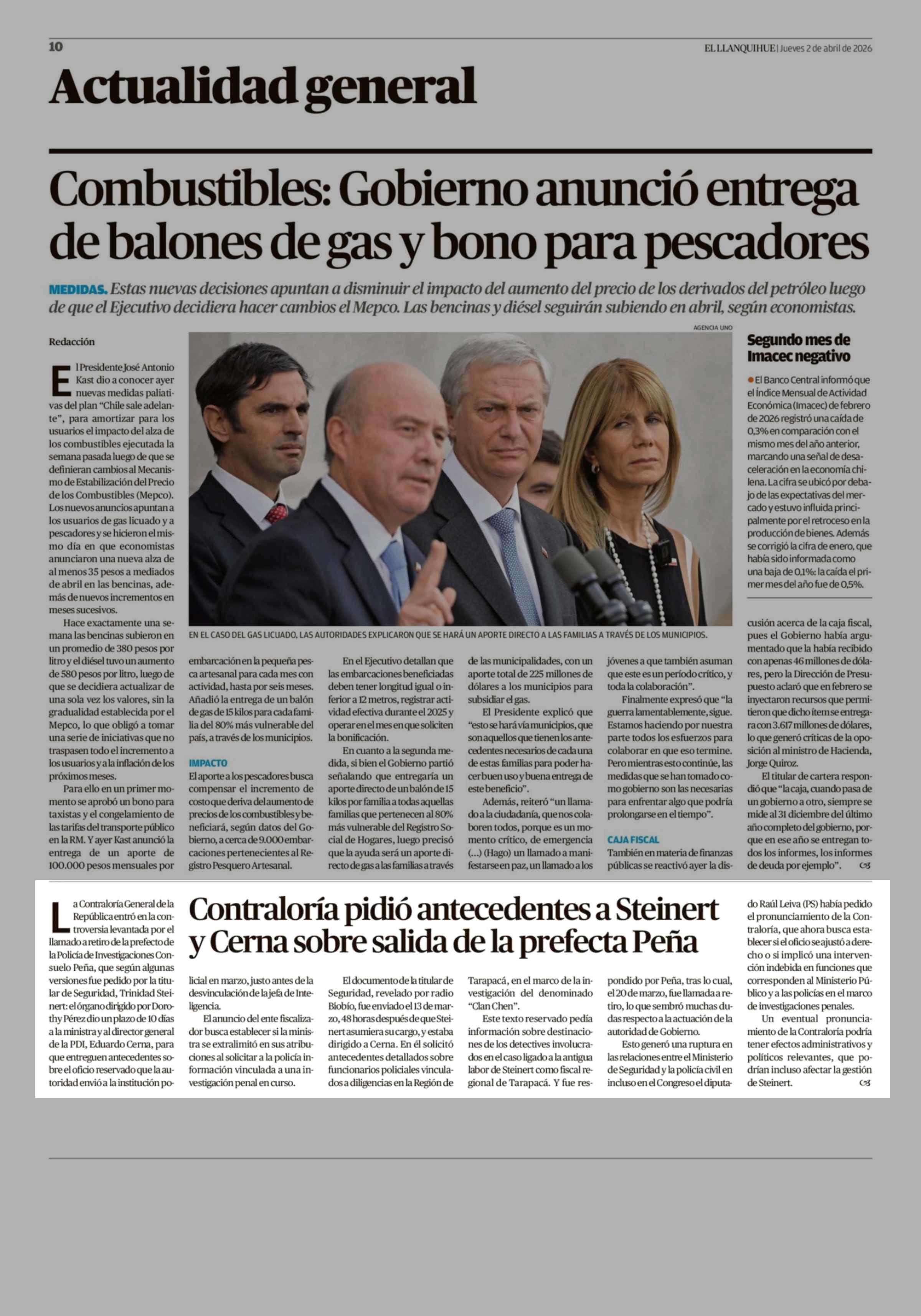 Contraloría pidió antecedentes a Steinert y Cerna sobre salida de la prefecta Peña 02-04-2026 El Llanquihue |