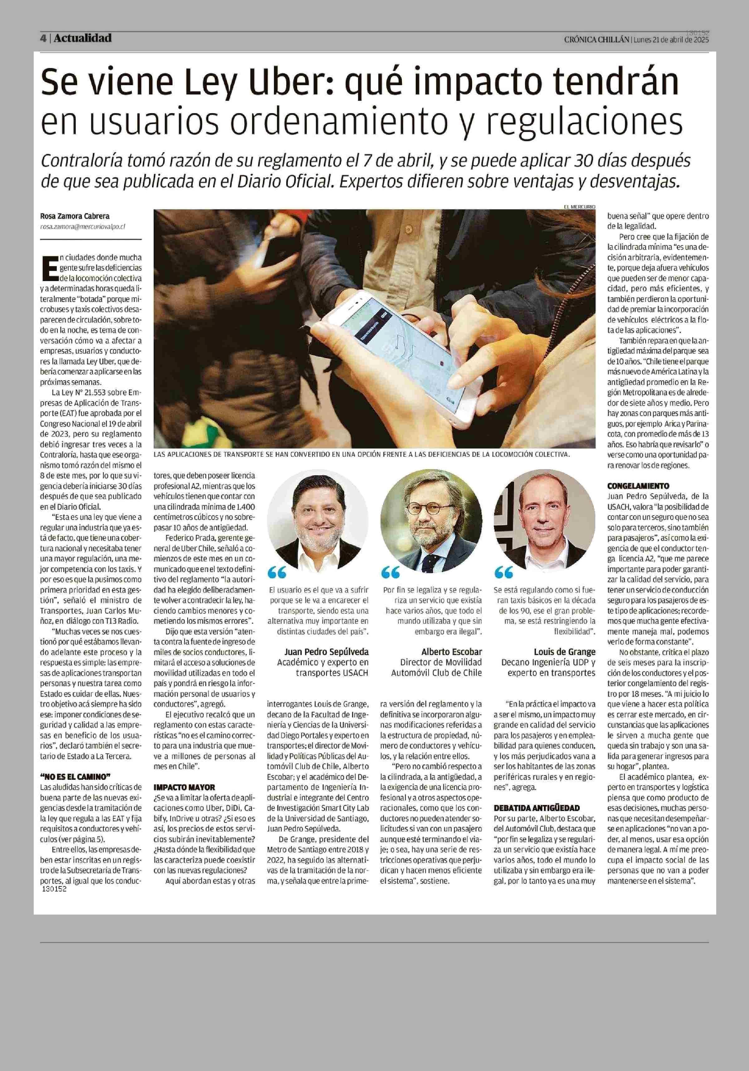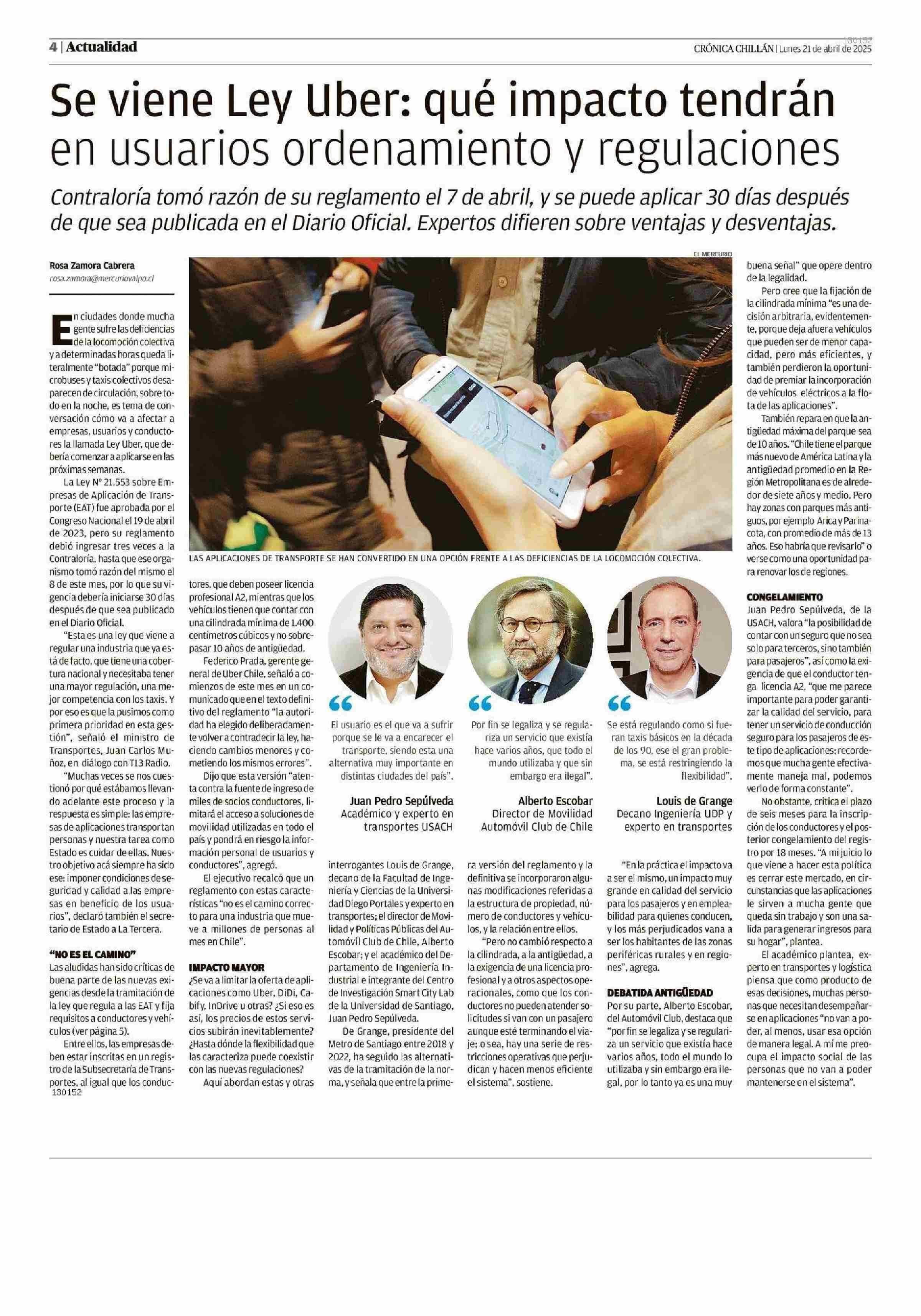 Se viene Ley Uber: qué impacto tendrán en usuarios ordenamiento y regulaciones 21-04-2025 Crónica de Chillán |