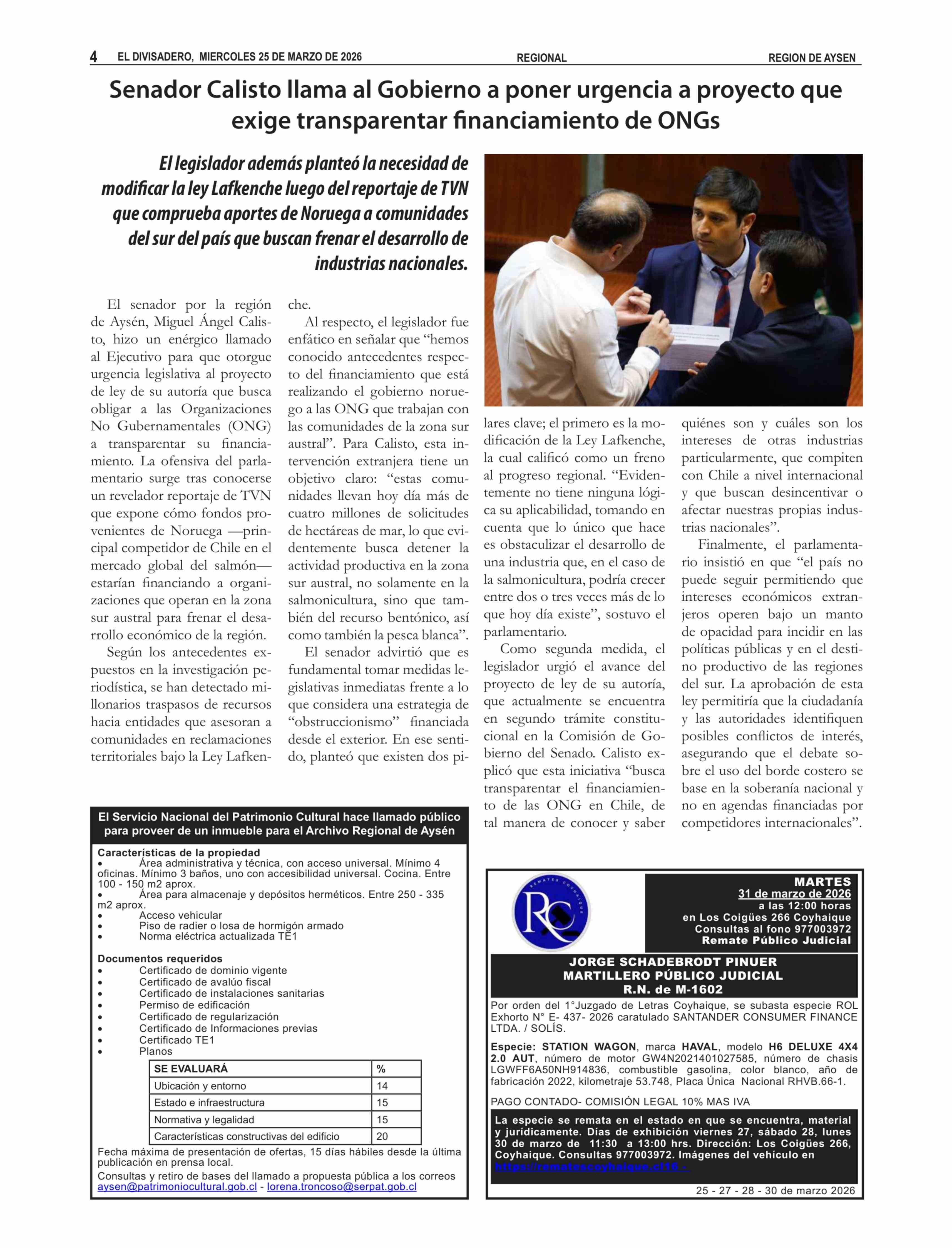 Senador Calisto llama al Gobierno a poner urgencia a proyecto que exige transparentar financiamiento de ONGs 25-03-2026 El Divisadero |