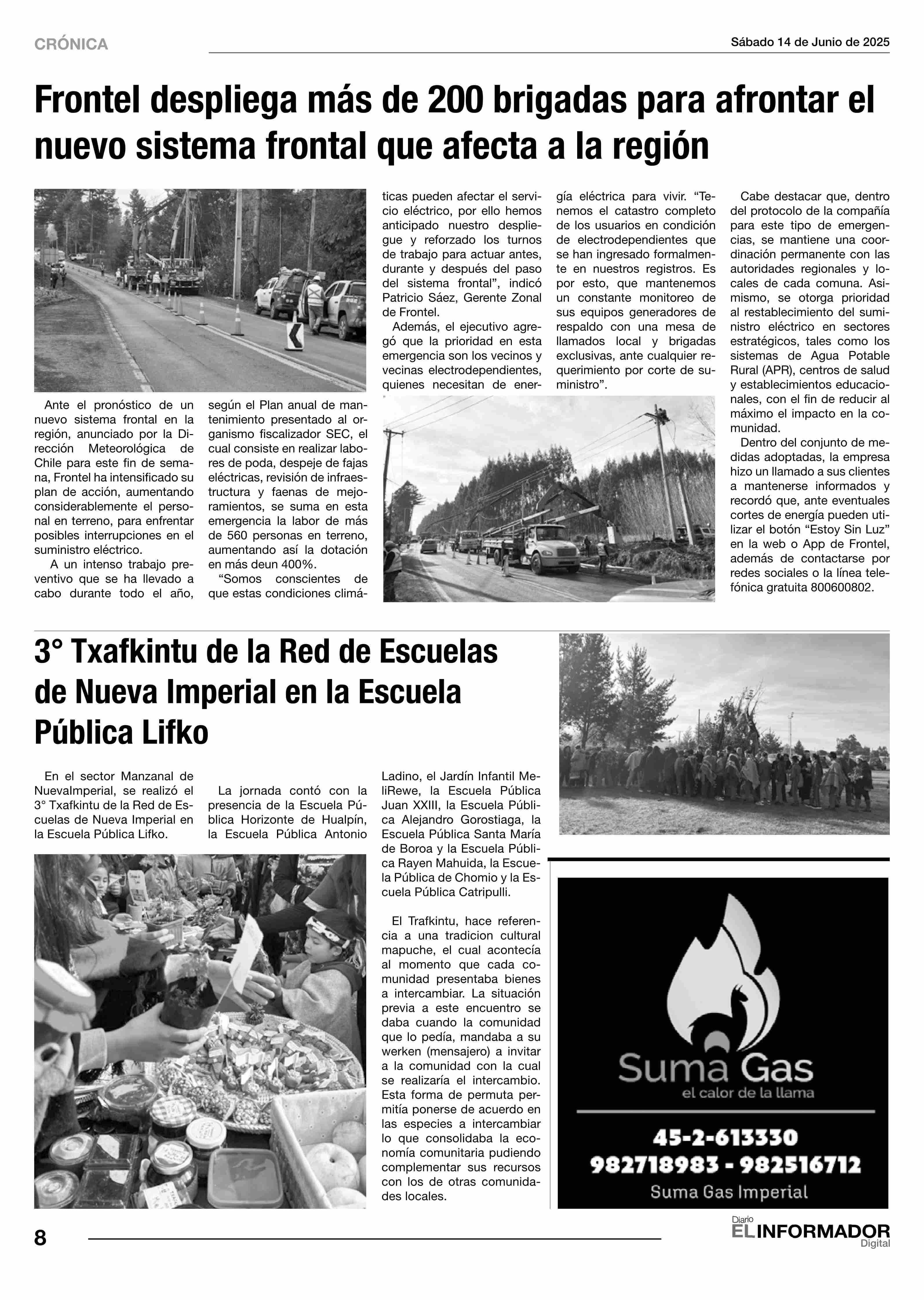 | Fecha: | 14-06-2025 | Sector: | Noticia general | Región: | Región de la Araucanía |