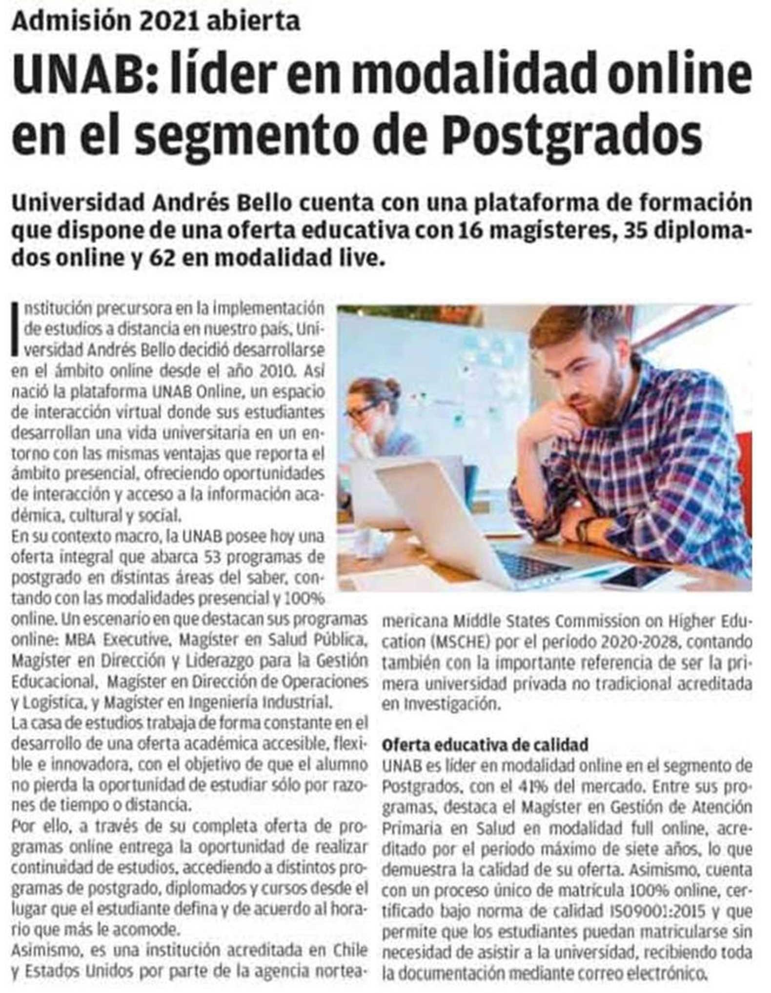 | Título: | UNAB: líder en modalidad online en el segmento de Postgrados |