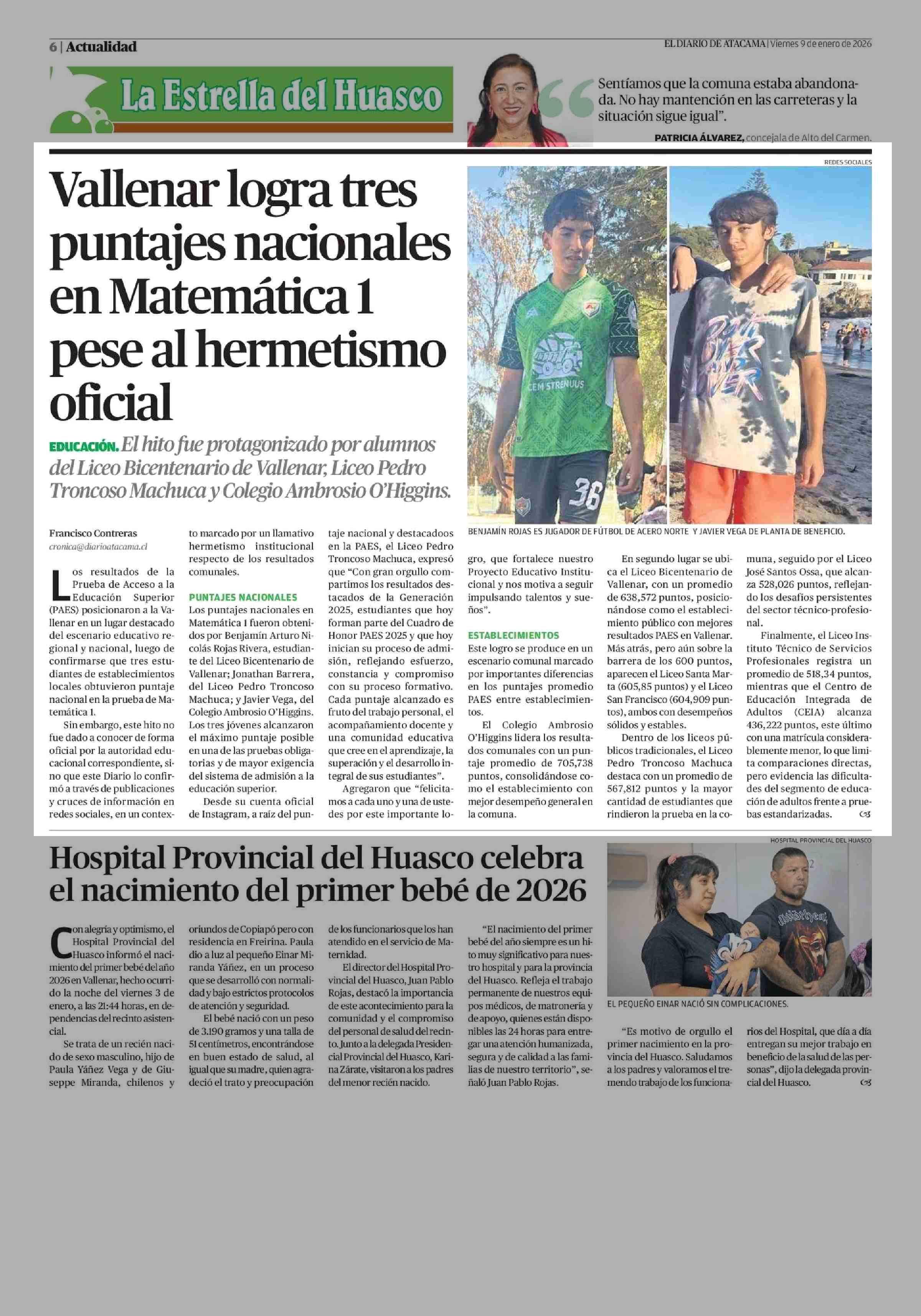 Título: Vallenar logra tres puntajes nacionales en Matemática 1 pese al hermetismo oficial