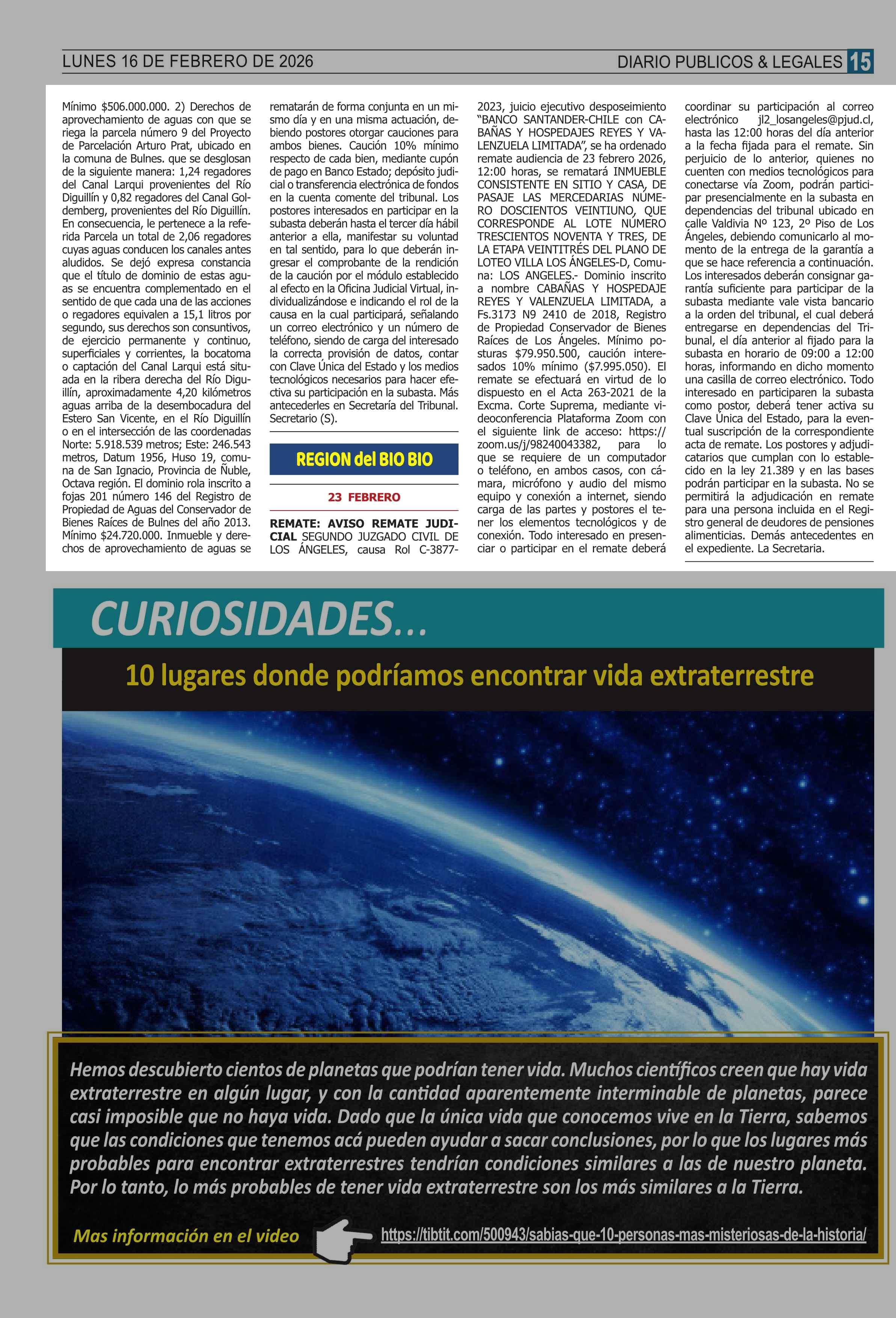 REMATES: REMATES de PROPIEDADES (ORDENADOS por REGIONES 16-02-2026 P&L Públicos y Legales |