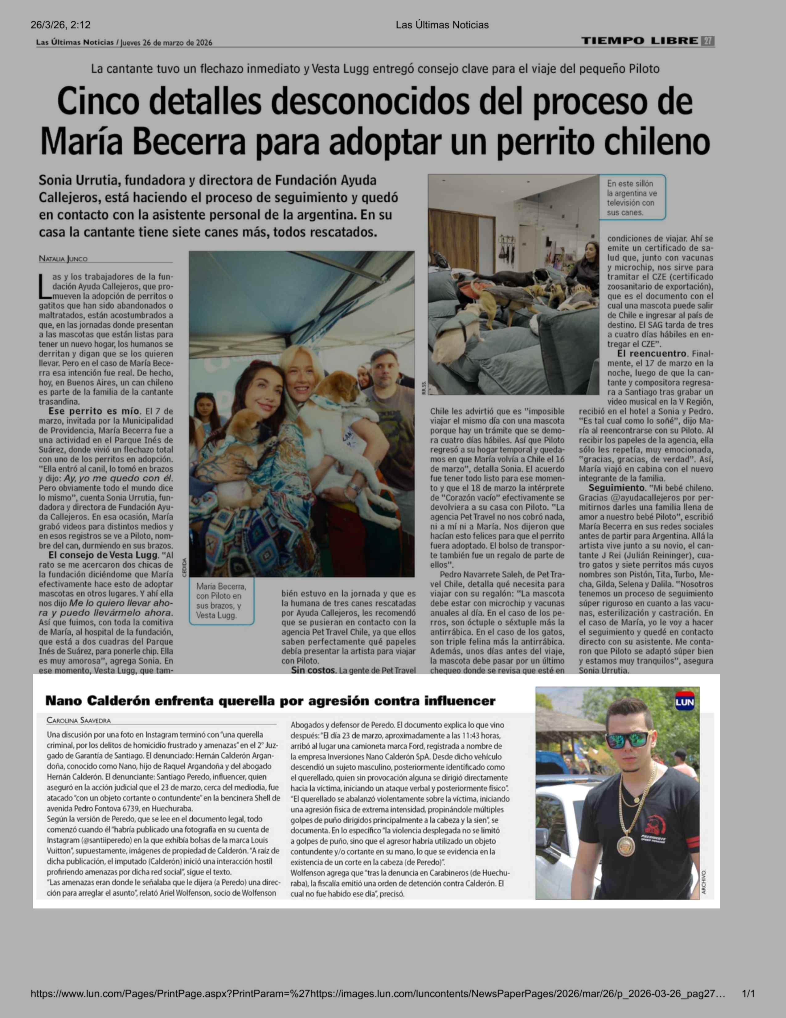 Nano Calderón enfrenta querella por agresión contra influencer 26-03-2026 Las Últimas Noticias |