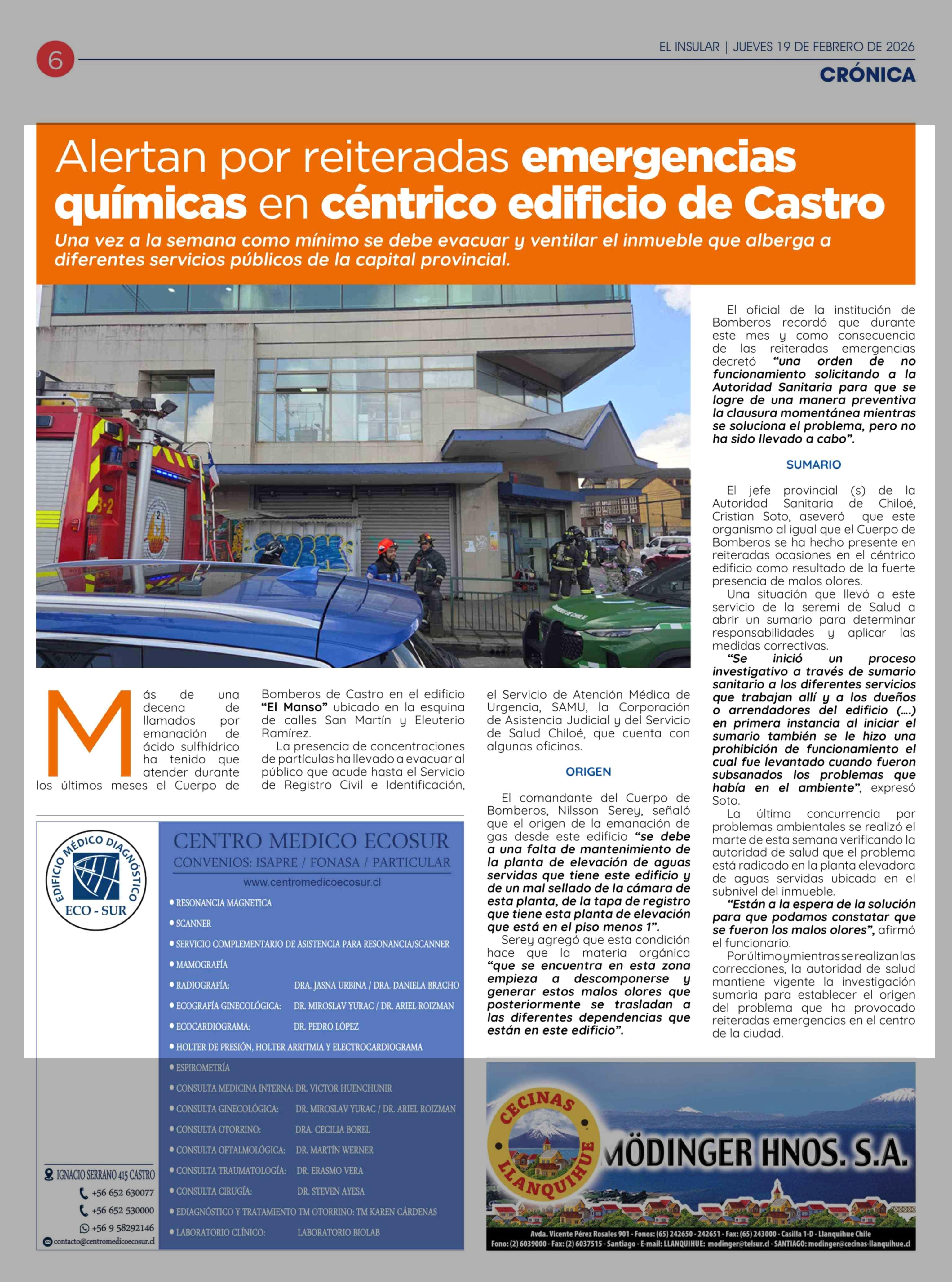 Alertan por reiteradas emergencias químicas en céntrico edificio de Castro 19-02-2026 El Insular |