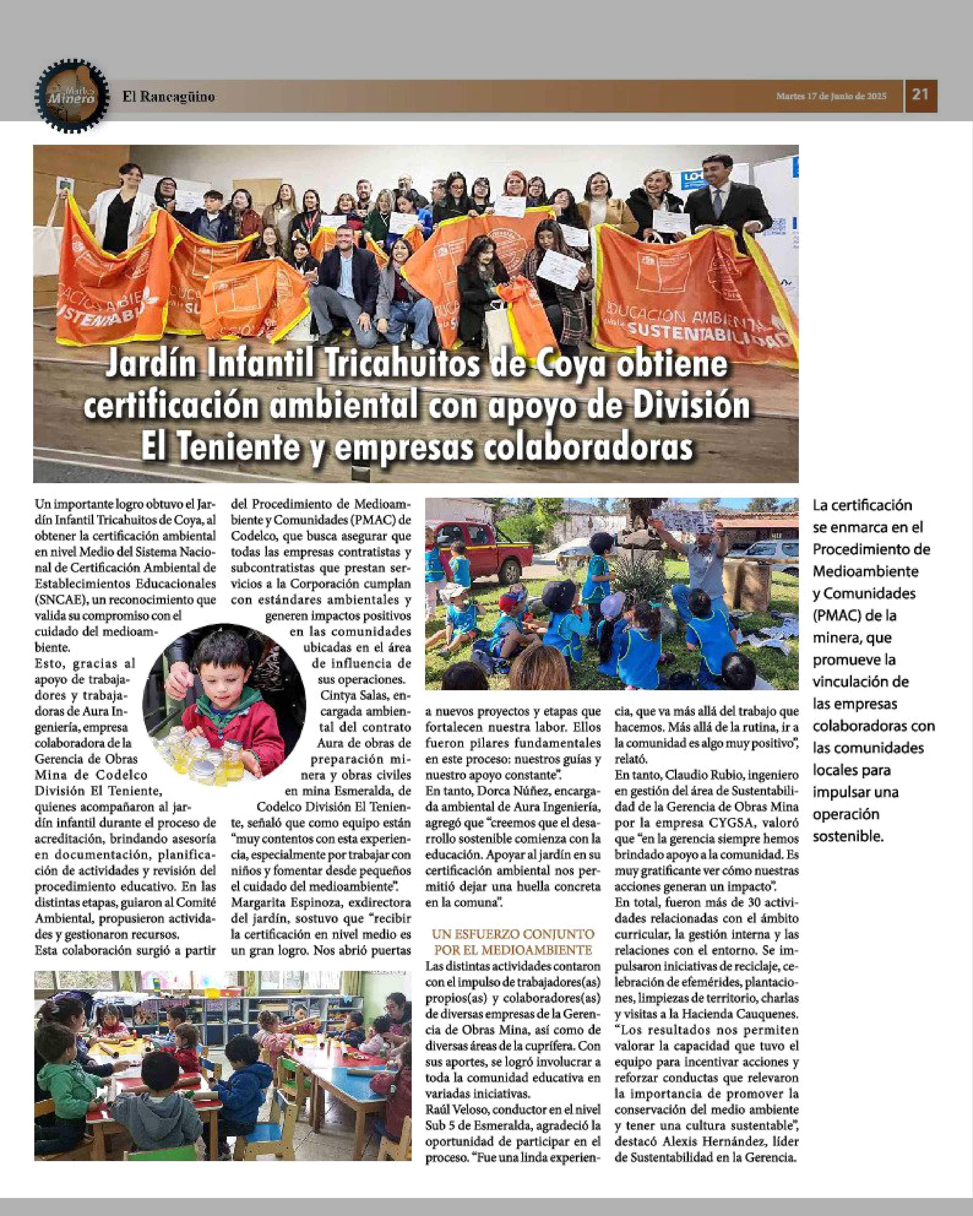 Título: ardín Intantil: Tricahuitos de Coya obtiene certificación ambiental con apoyo de División El Teniente y eempresas colaboradoras