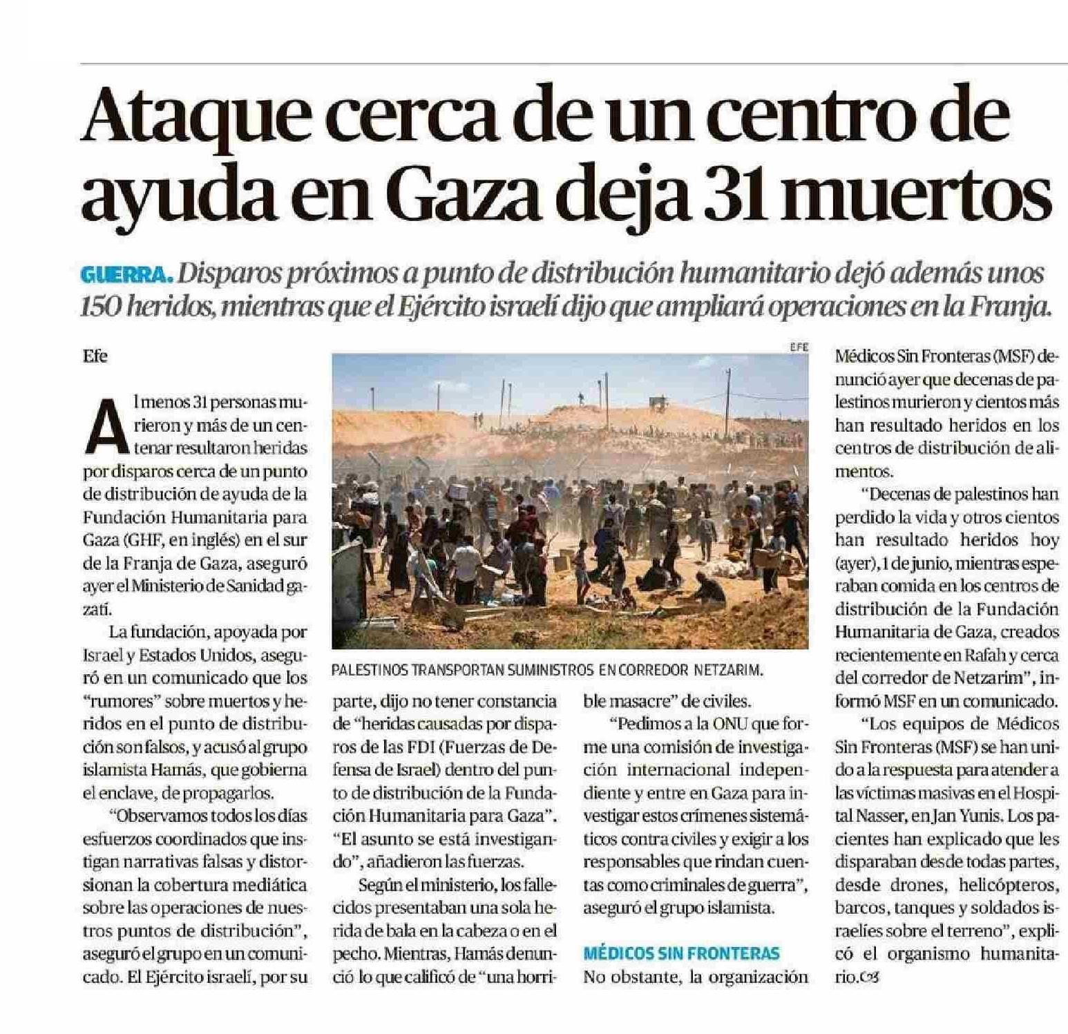 Ataque cerca de un centro de ayuda en Gaza deja 31 muertos 02-06-2025 Diario Austral Región de Los Ríos |