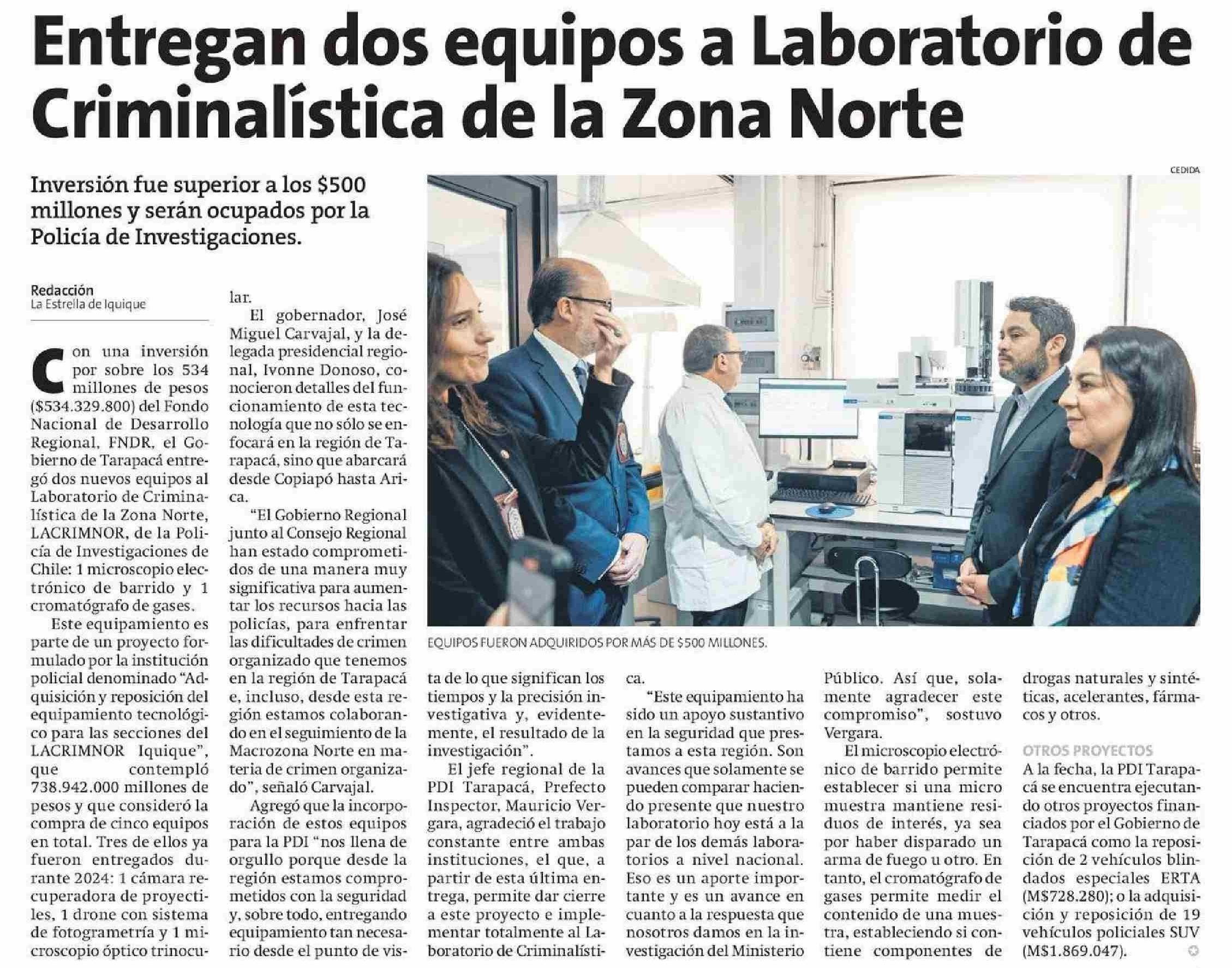 Entregan dos equipos a Laboratorio de Criminalística de la Zona Norte 11-06-2025 La Estrella de Iquique |