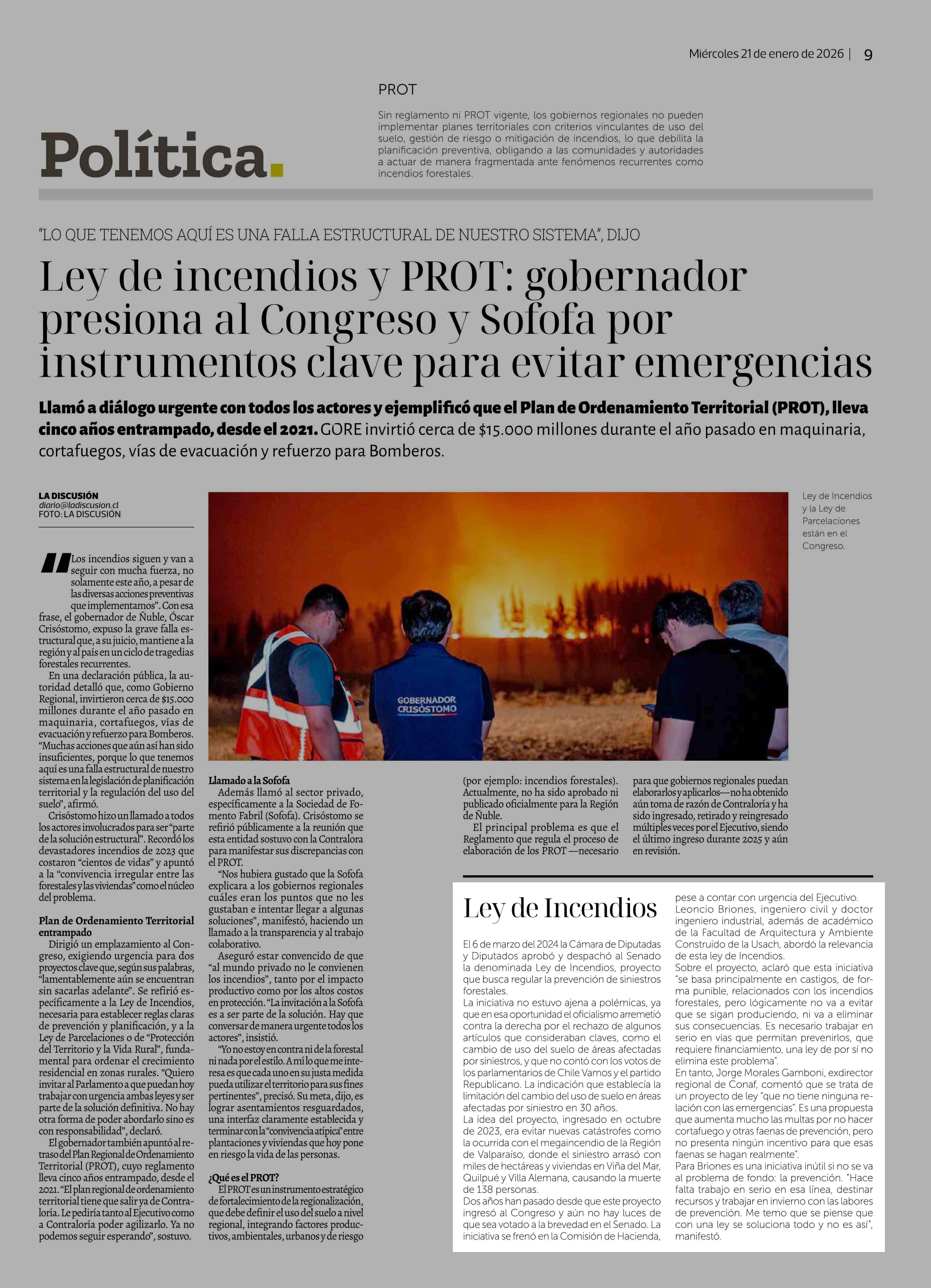 Ley de Incendios 21-01-2026 La Discusión |