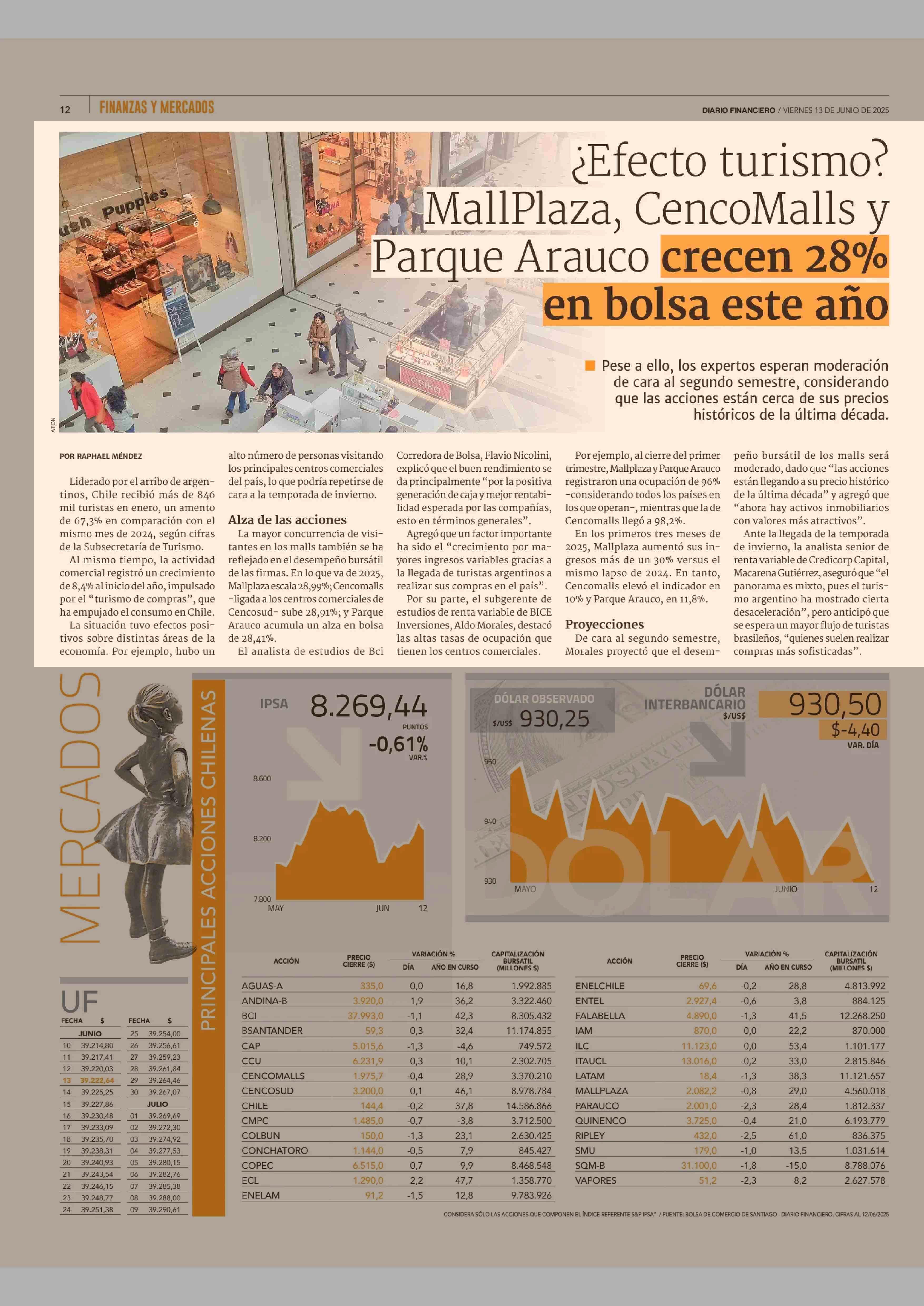 Título: ¿Efecto turismo? MallPlaza, CencoMalls y Parque Arauco crecen 28% en bolsa este año