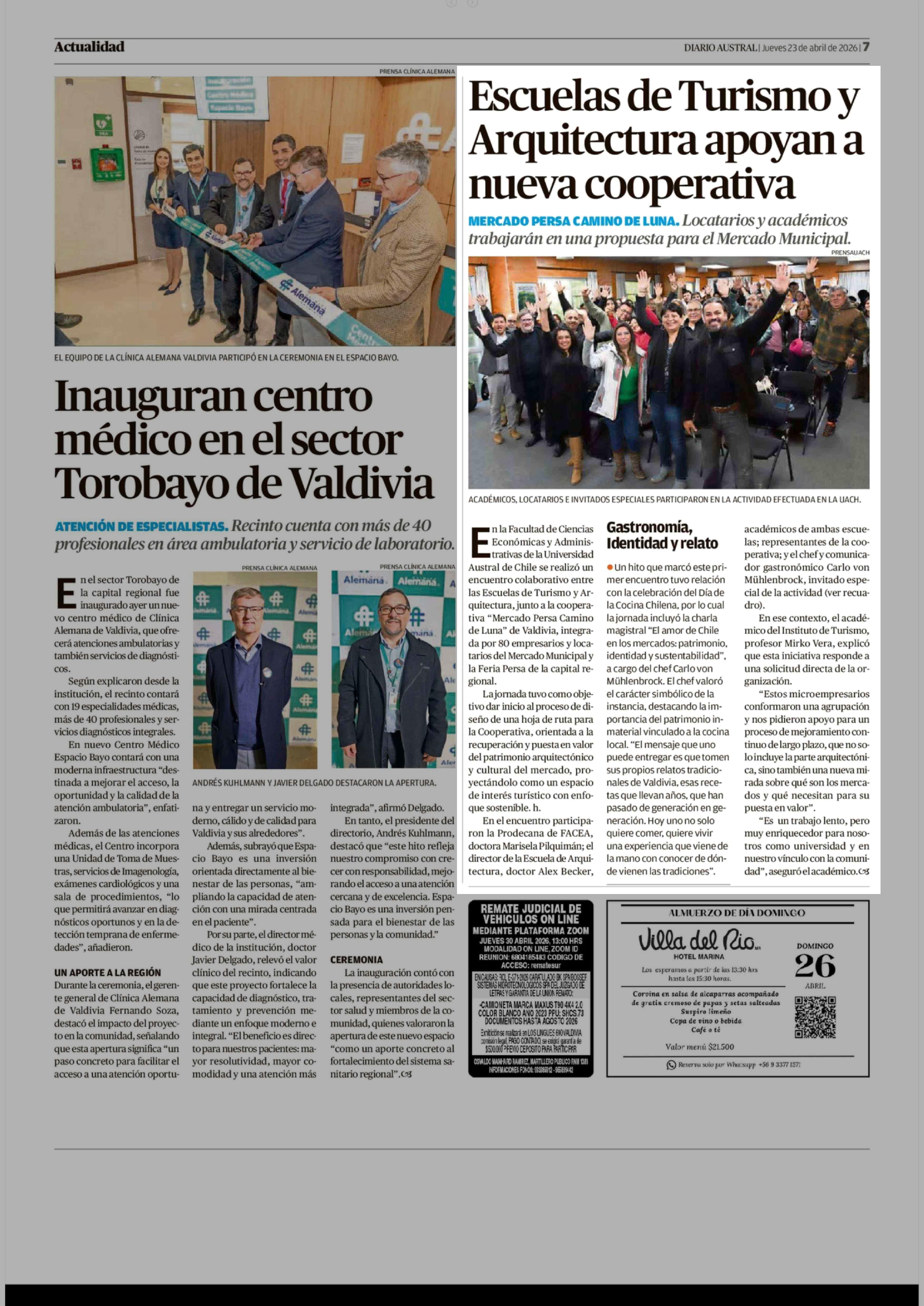 Escuelas de Turismo y Arquitectura apoyan a nueva cooperativa 23-04-2026 Diario Austral Región de Los Ríos |