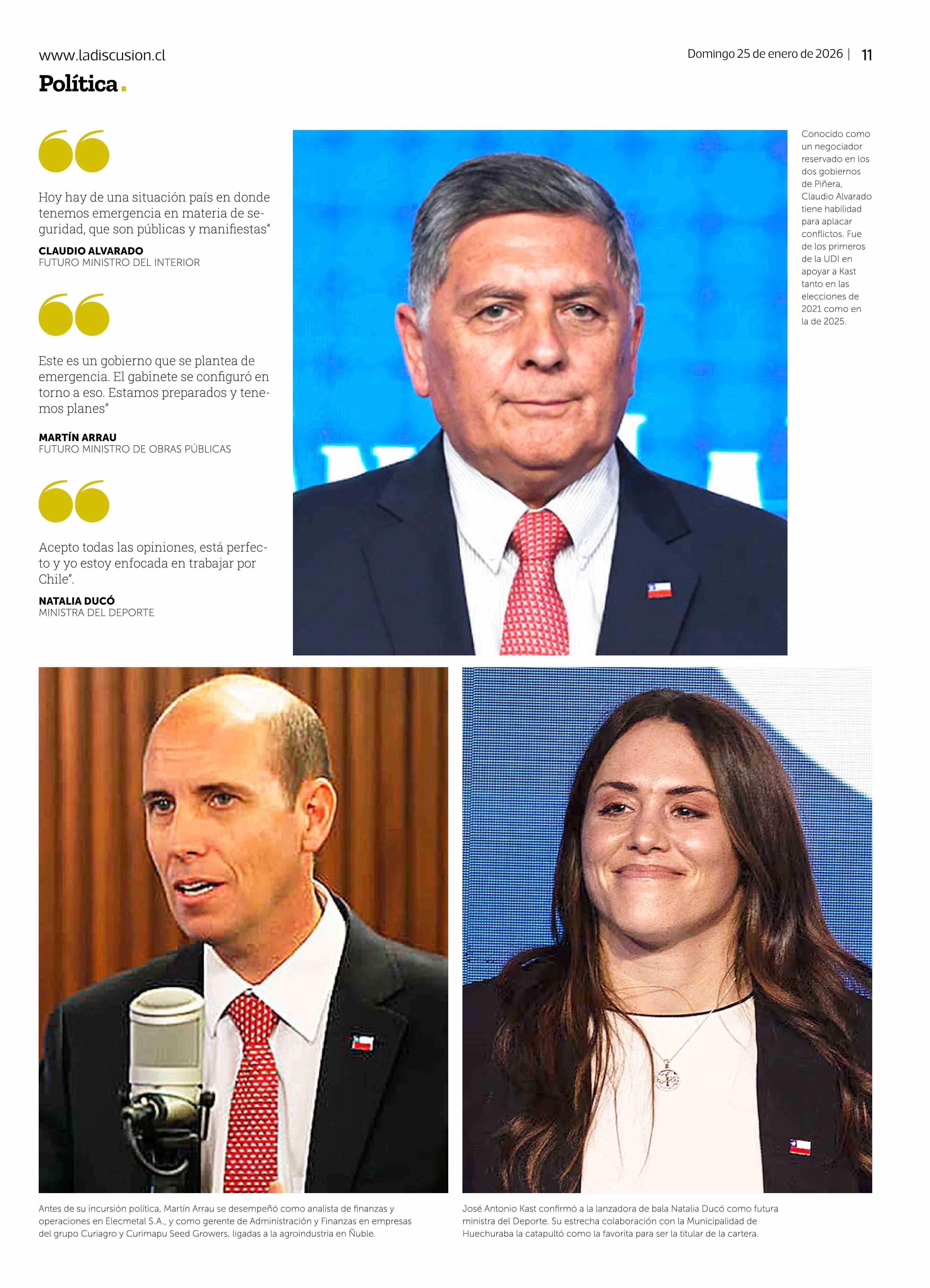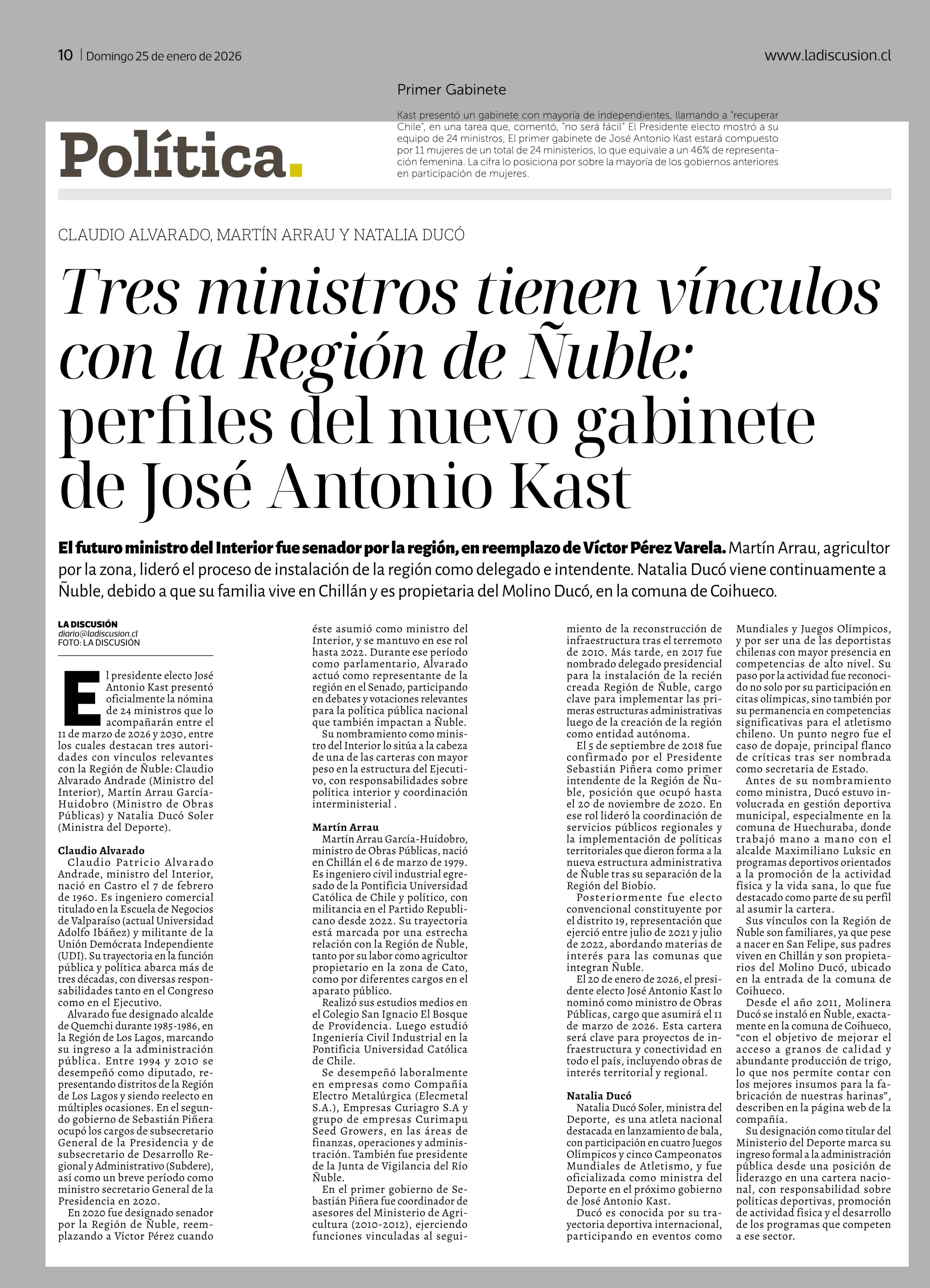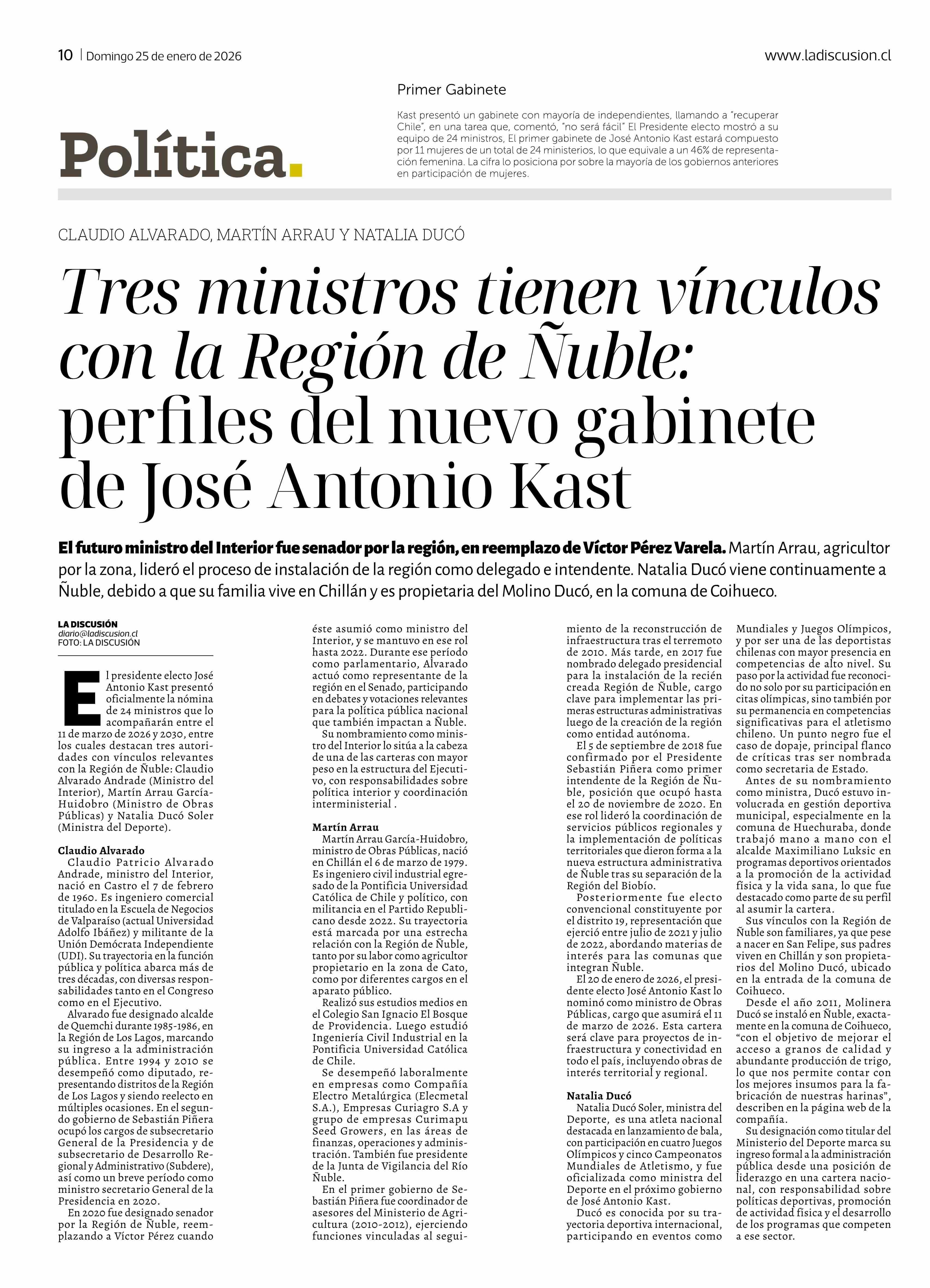 Título: Tres ministros tienen vínculos con la Región de Nuble: perfiles del nuevo gabinete de José Antonio Kast