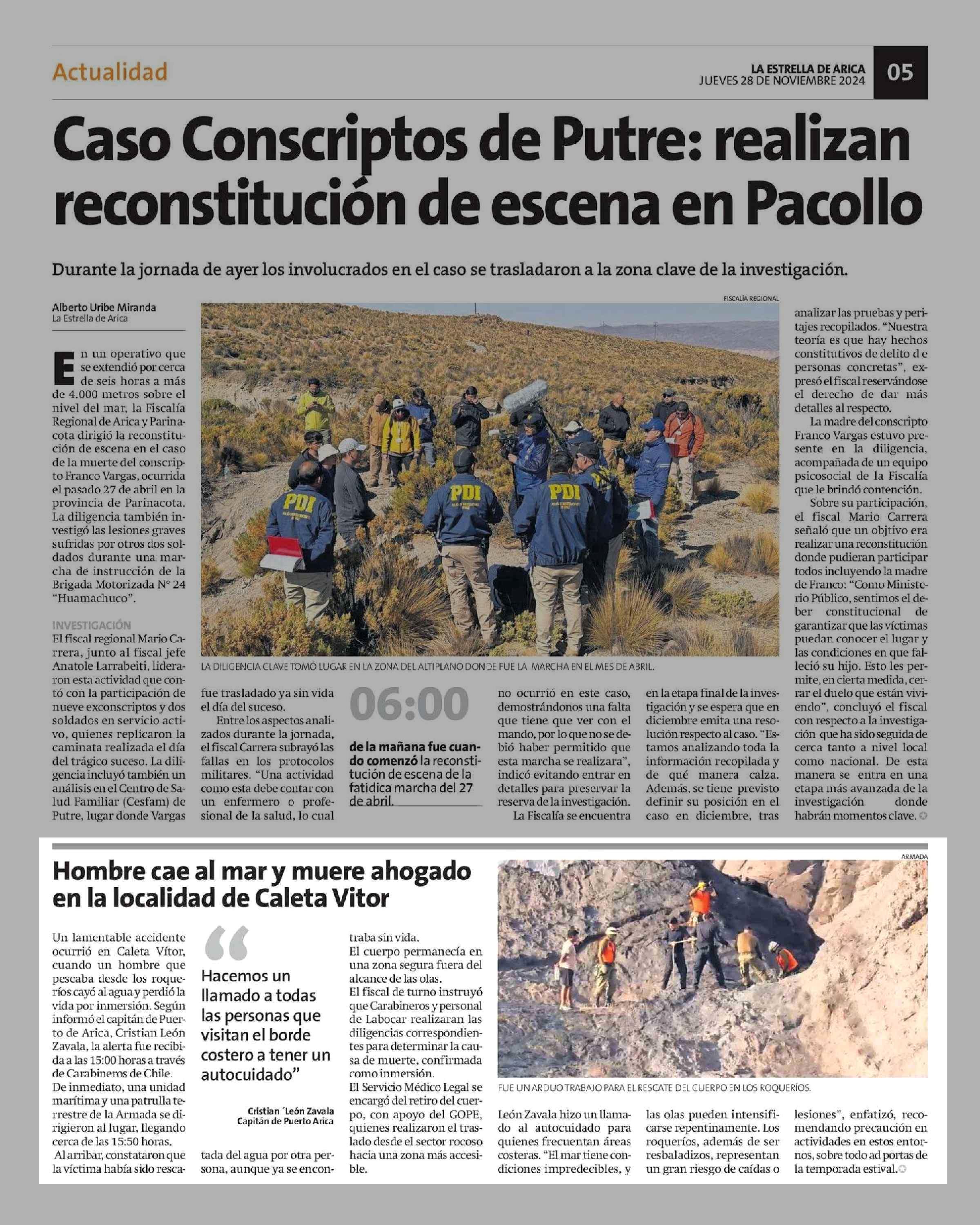 Hombre cae al mar y muere ahogado en la localidad de Caleta Vitor 28-11-2024 La Estrella de Arica |