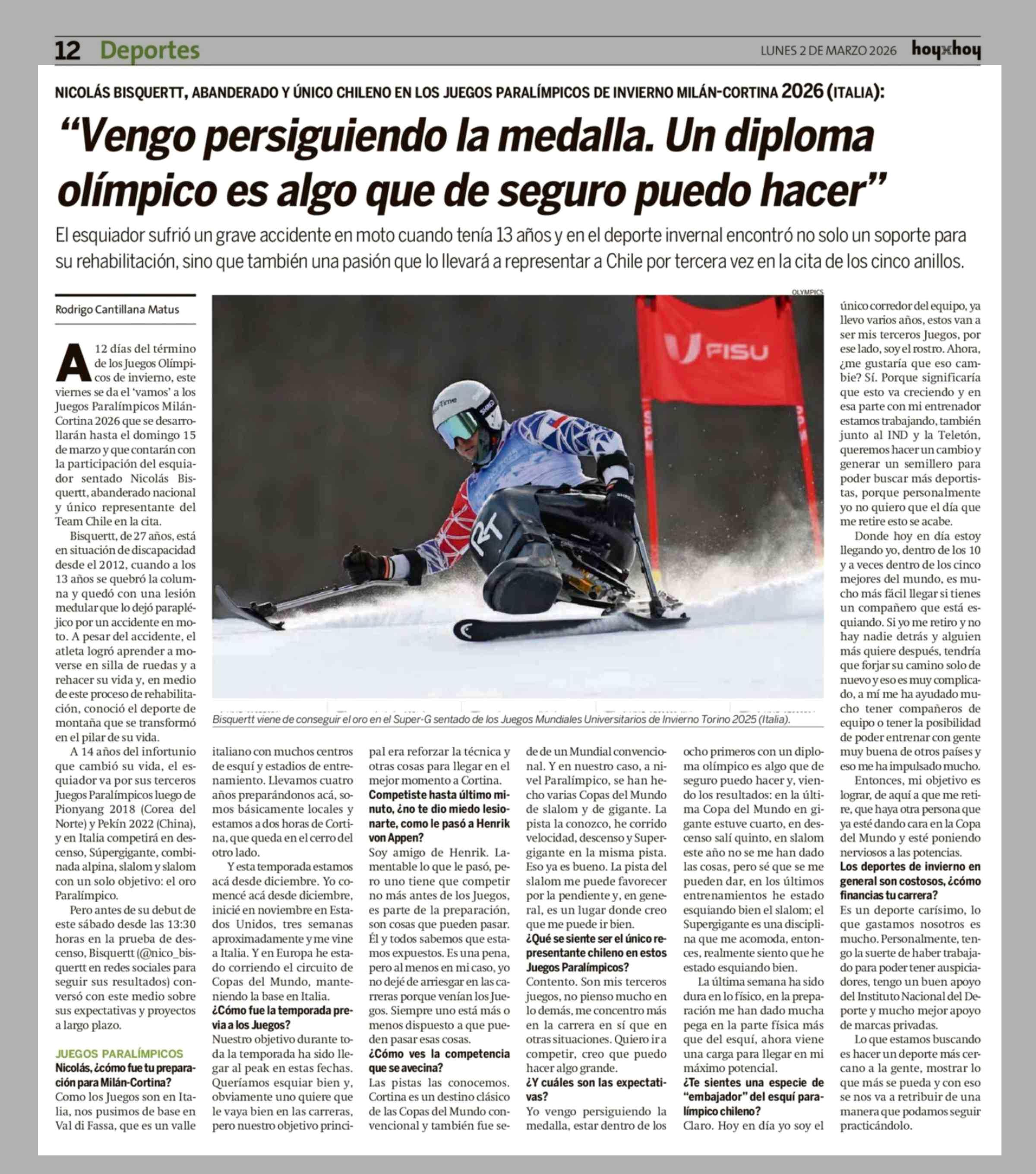 "Vengo persiguiendo la medalla. Un diploma olímpico es algo que de seguro puedo hacer" 02-03-2026 Hoy x Hoy |
