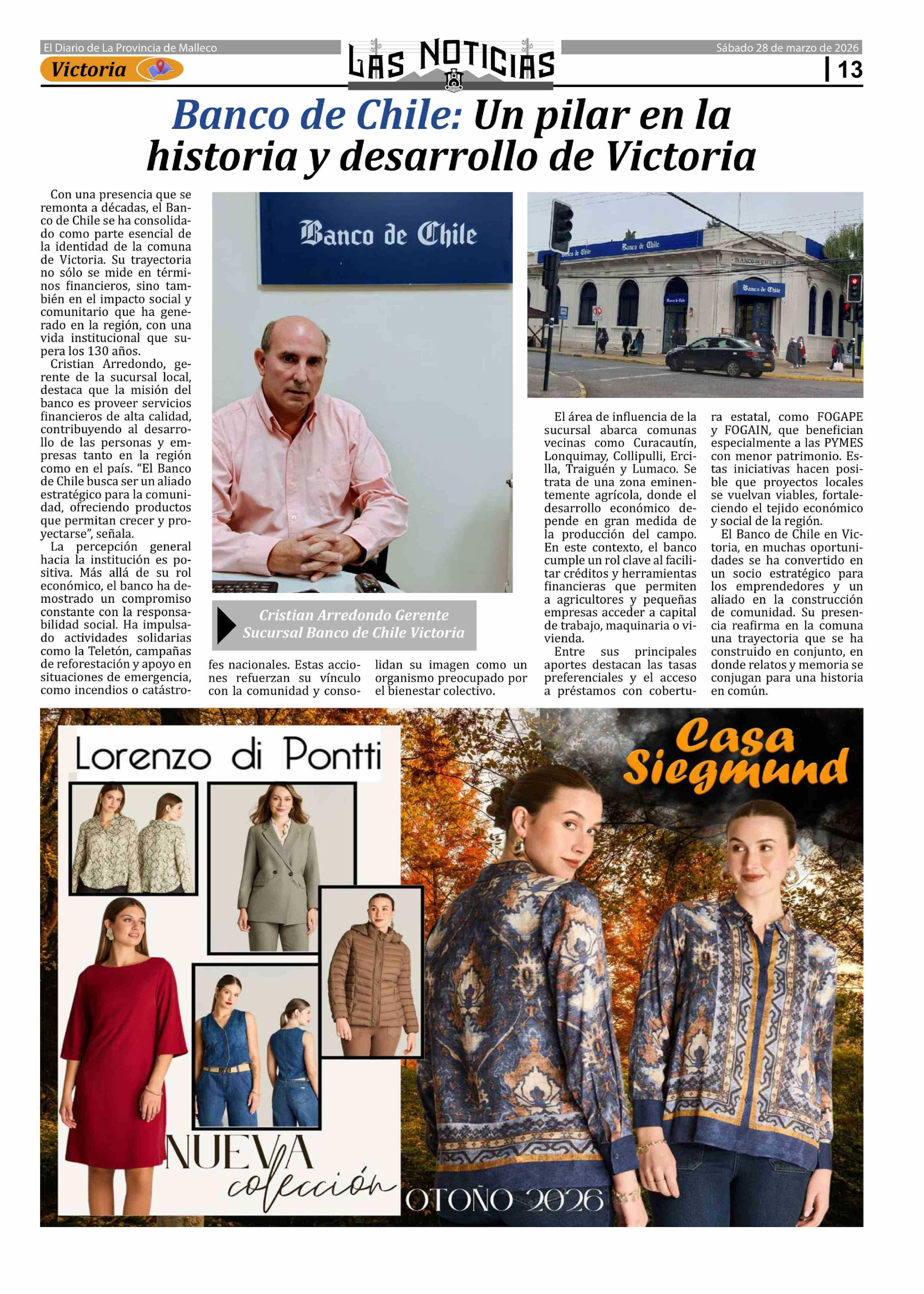 Banco de Chile: Un pilar en la historia y desarrollo de Victoria 28-03-2026 Las Noticias |