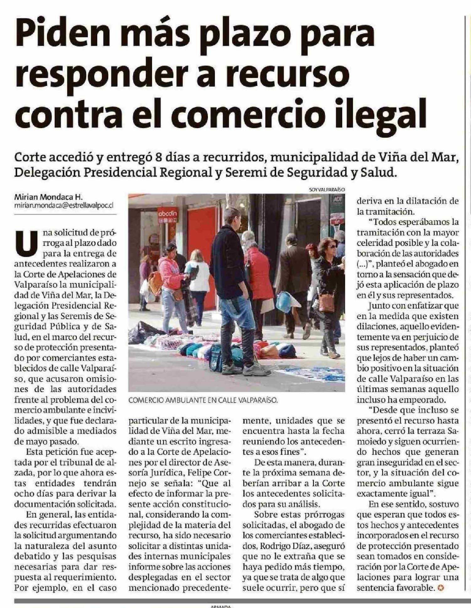 Piden más plazo para contra el comercio ilegal responder a recurso 07-06-2025 La Estrella de Valparaíso |