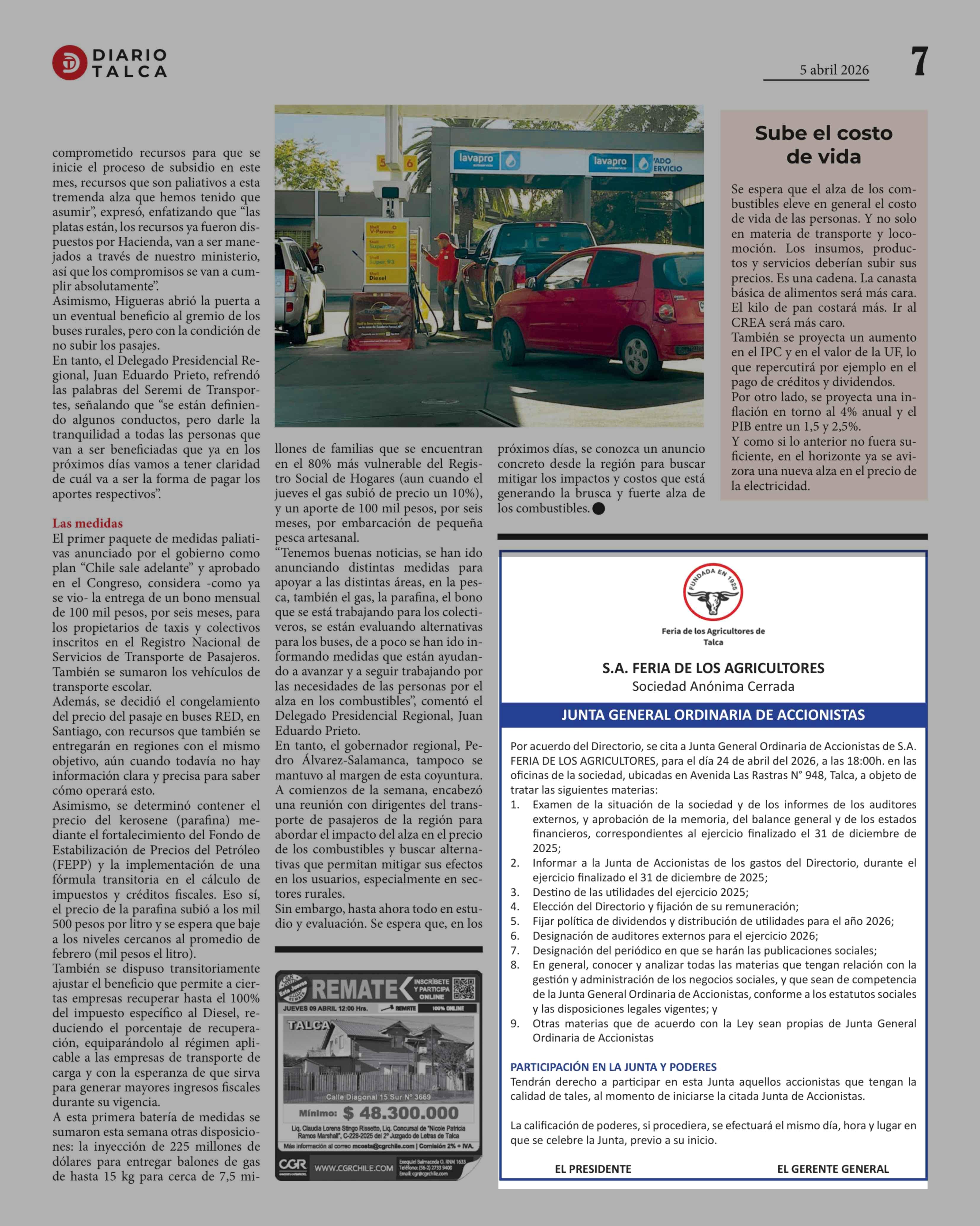 Fuente: Diario Talca (Diario Talca) Página(s): 7