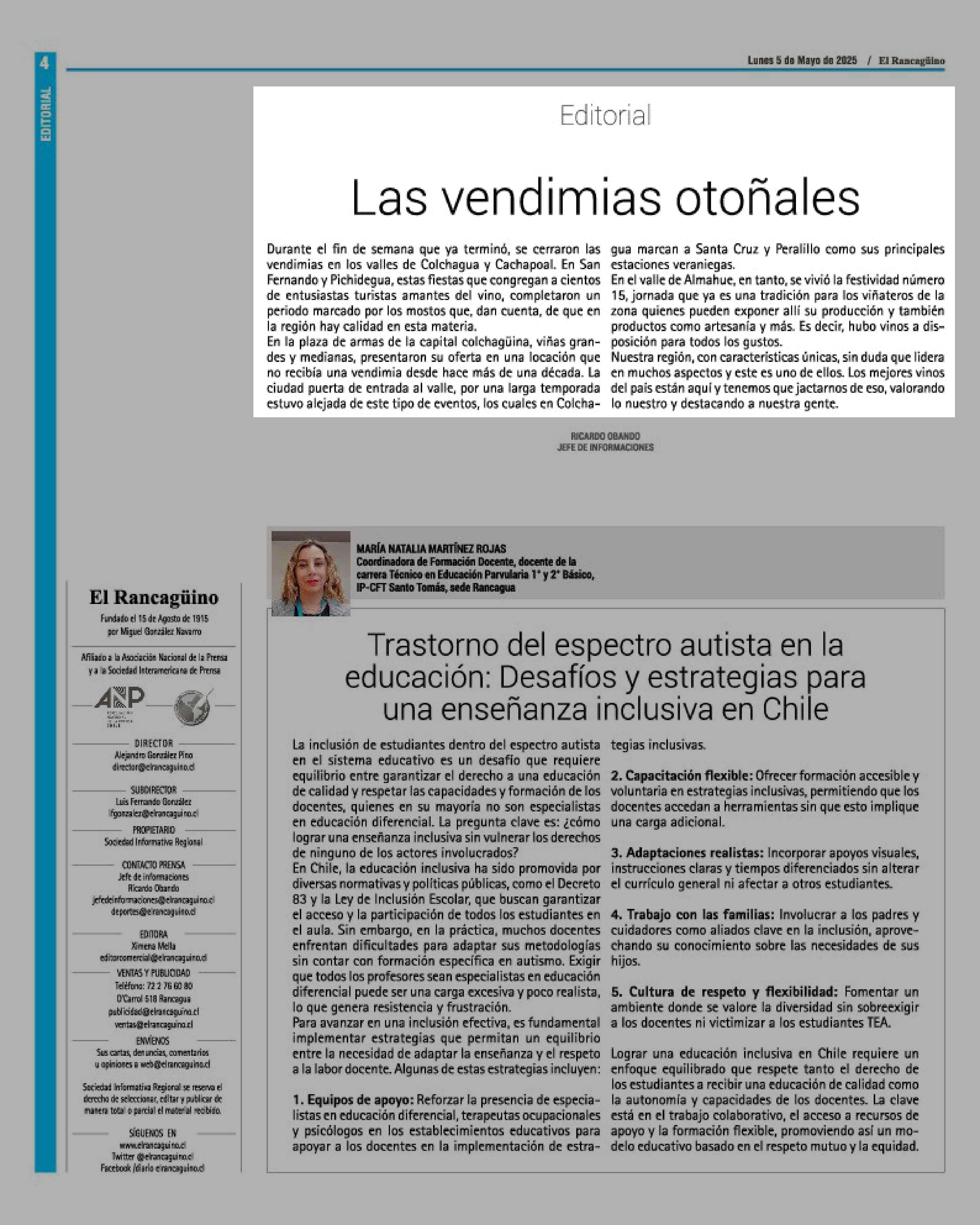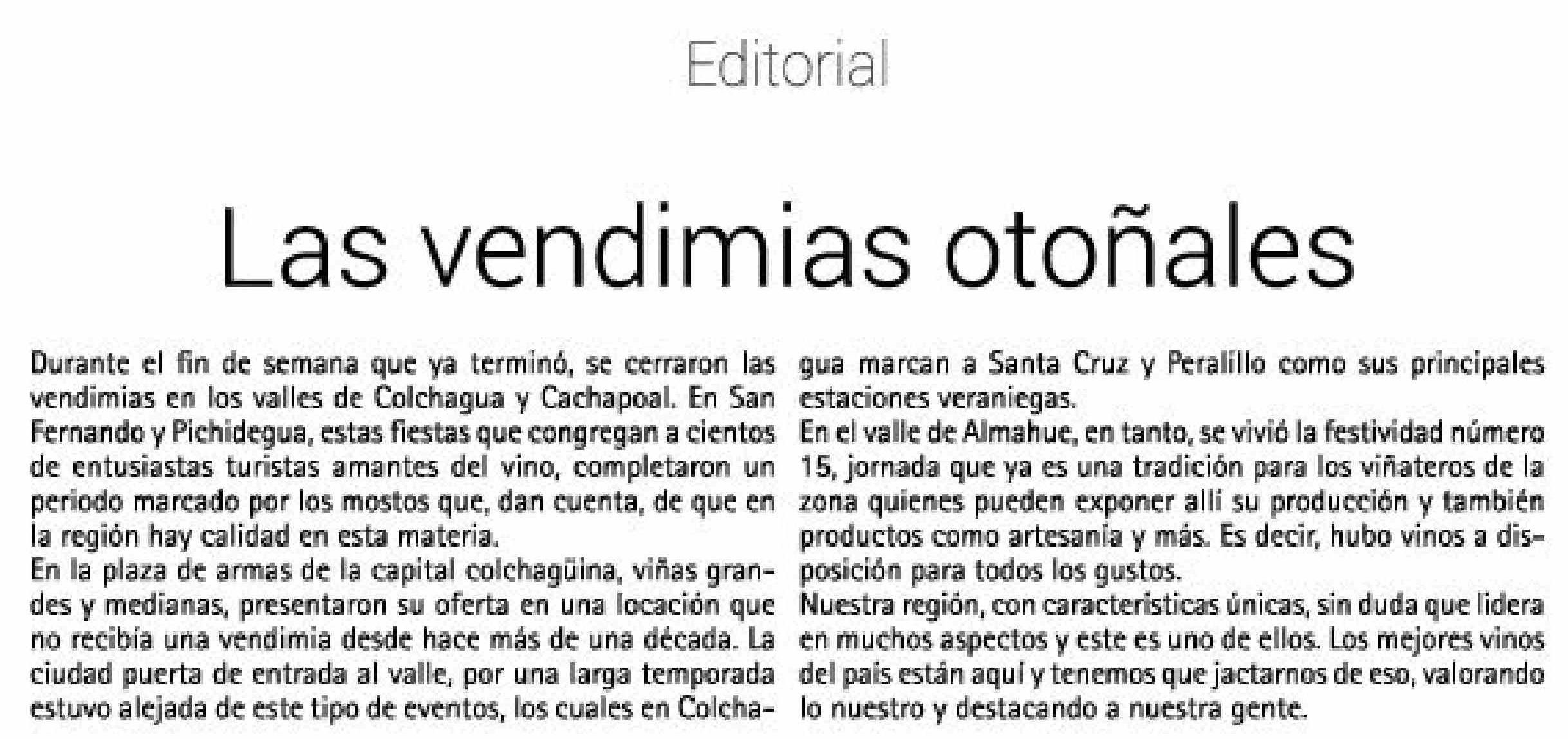 Columnas de Opinión: Las vendimias otoñales 05-05-2025 El Rancagüino |
