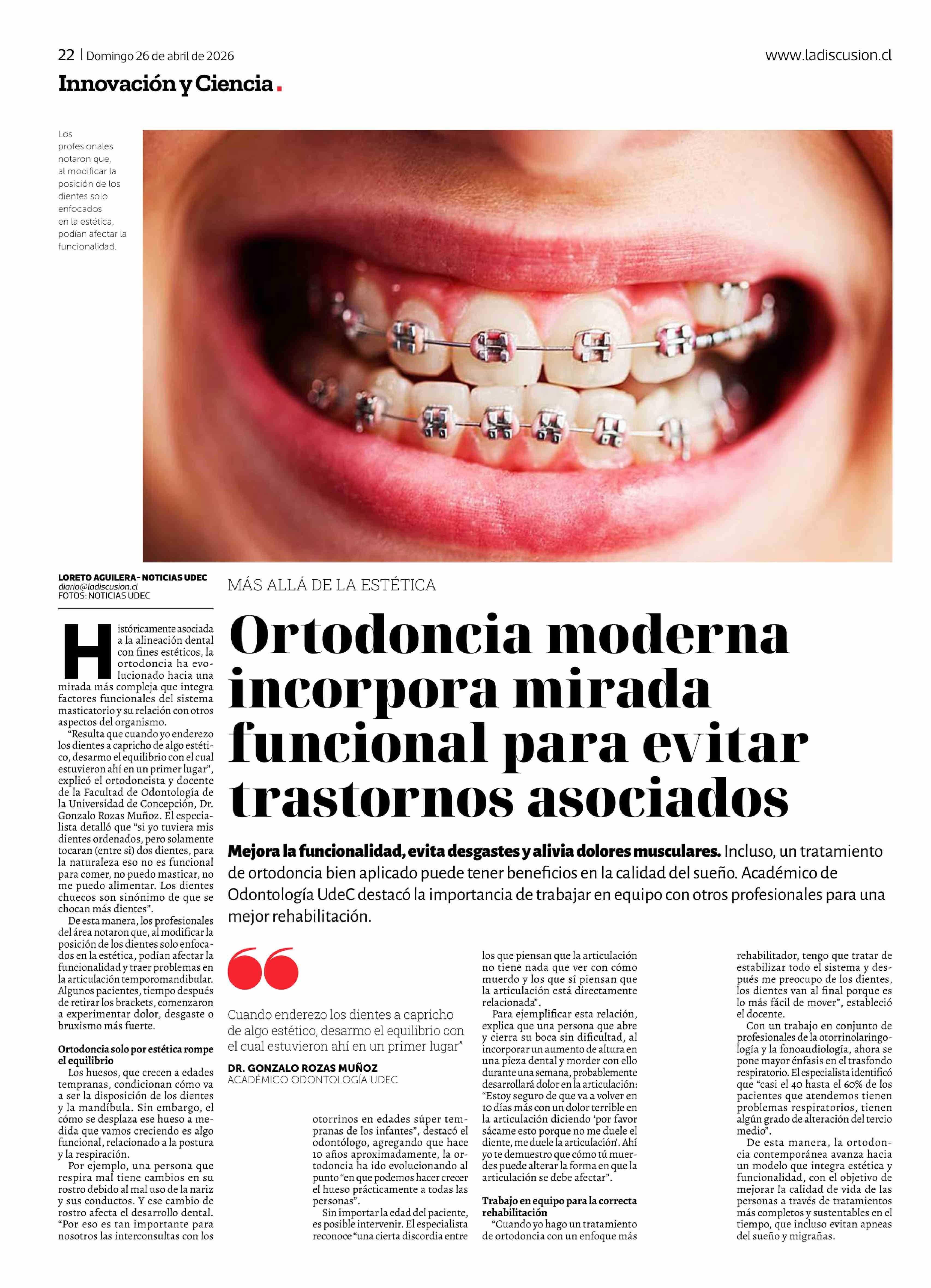 Ortodoncia moderna incorpora mirada funcional para evitar trastornos asociados 26-04-2026 La Discusión |