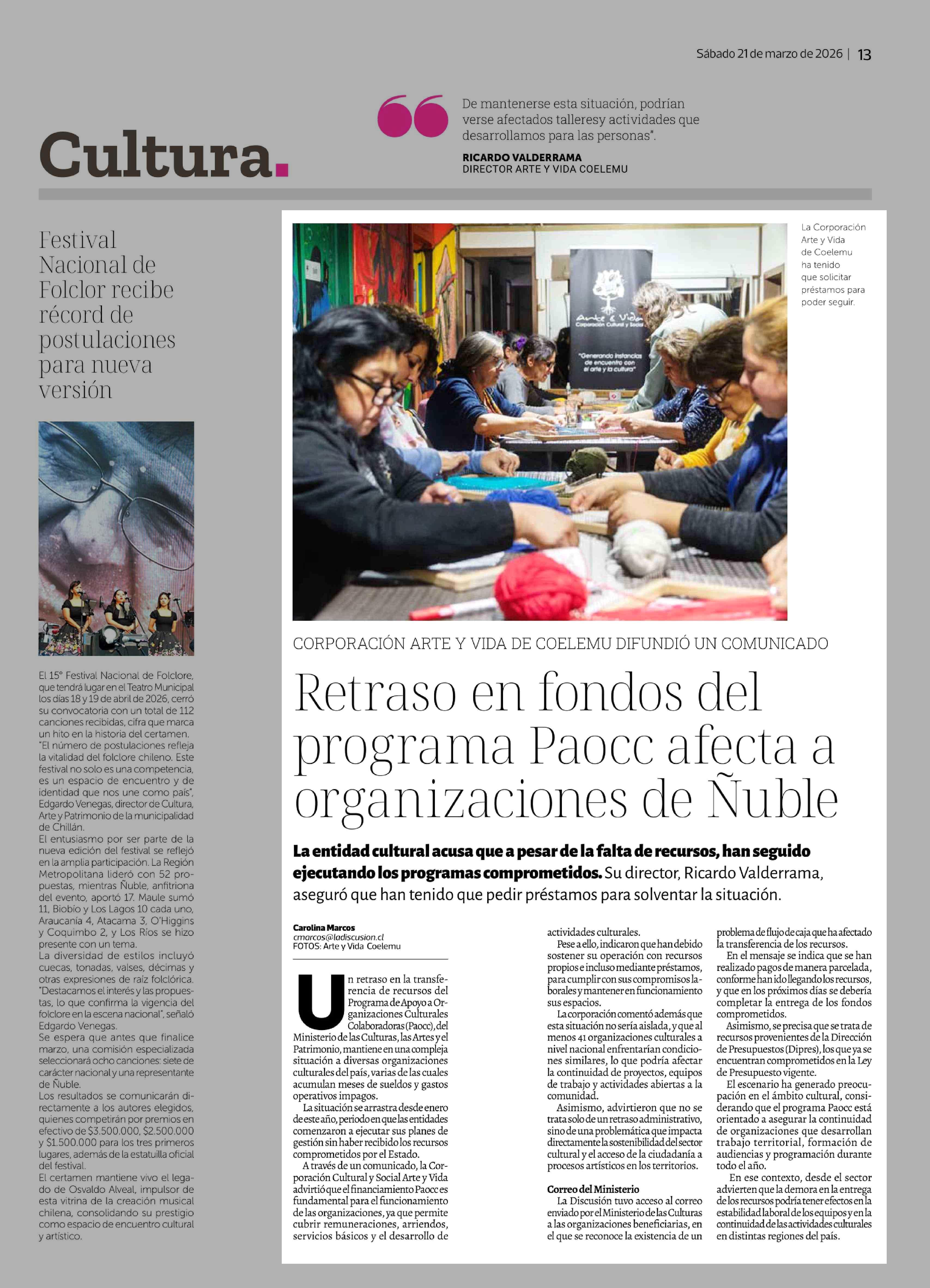 Retraso en fondos del programa Paocc afecta a organizaciones de Nuble 21-03-2026 La Discusión |