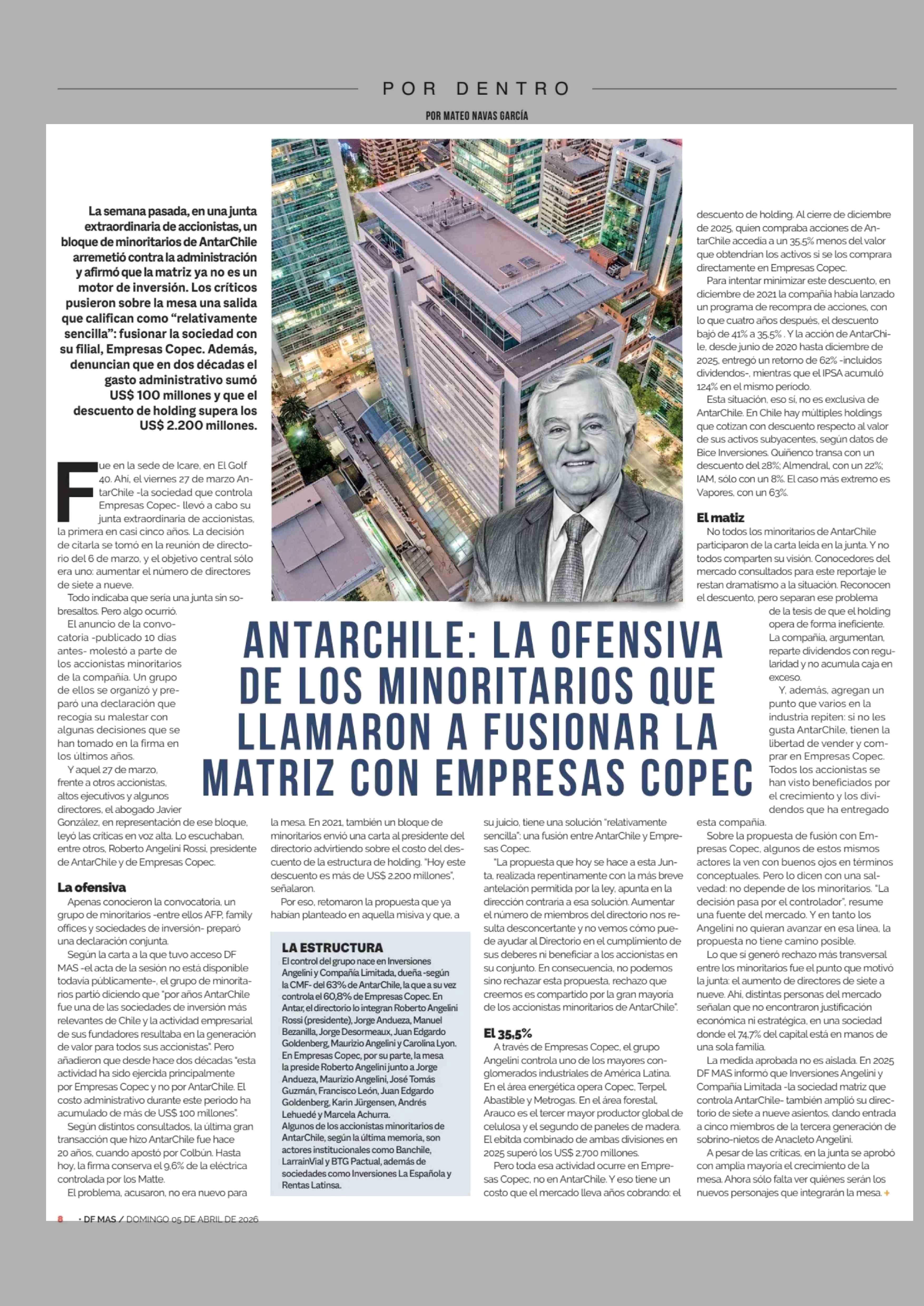 Título: ANTARCHILE: LA OFENSIVA DE LOS MINORITARIOS QUE LLAMARON A FUSIONAR LA MATRIZ CON EMPRESAS COPEC