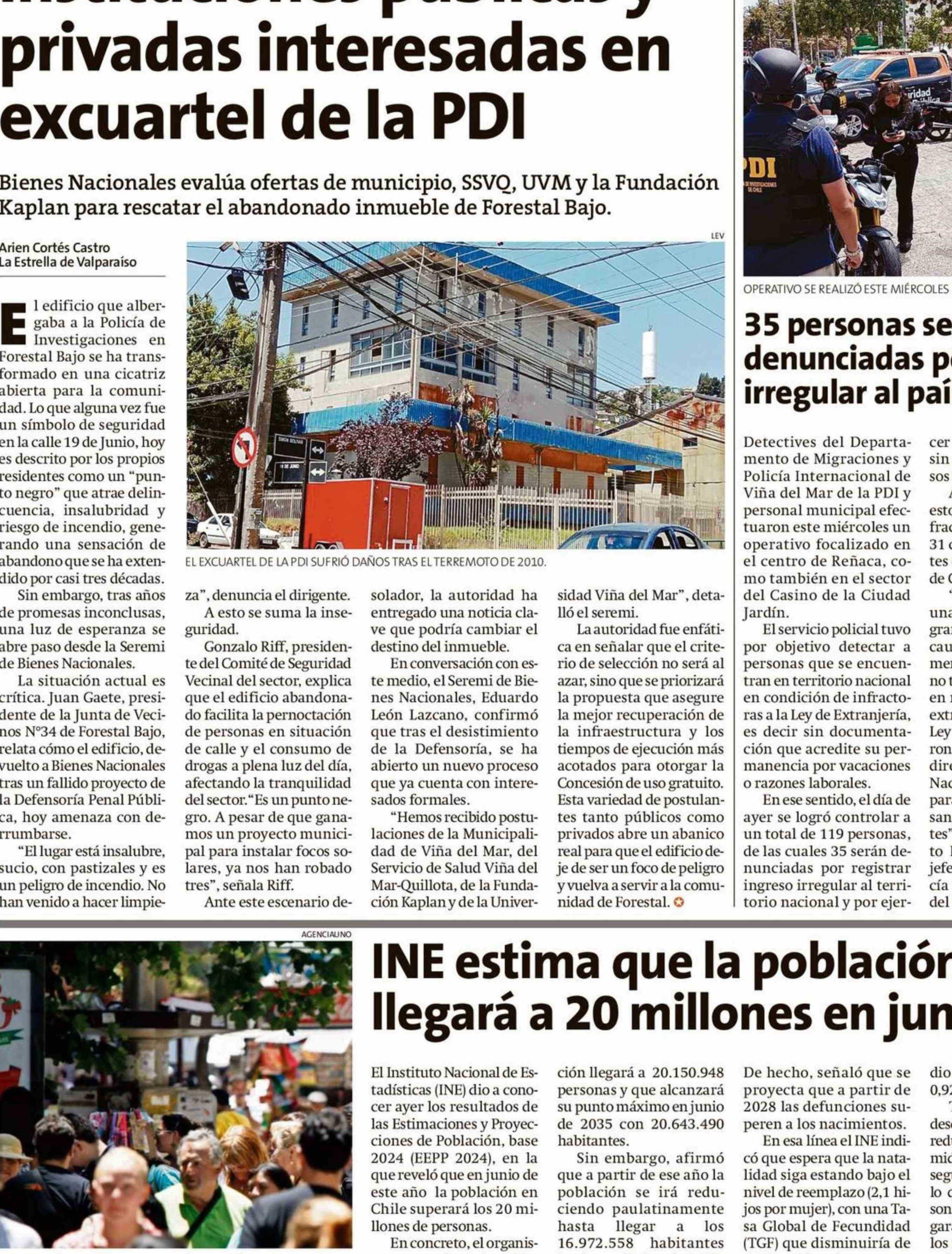 Instituciones públicas y privadas interesadas en excuartel de la PDI 29-01-2026 La Estrella de Valparaíso |