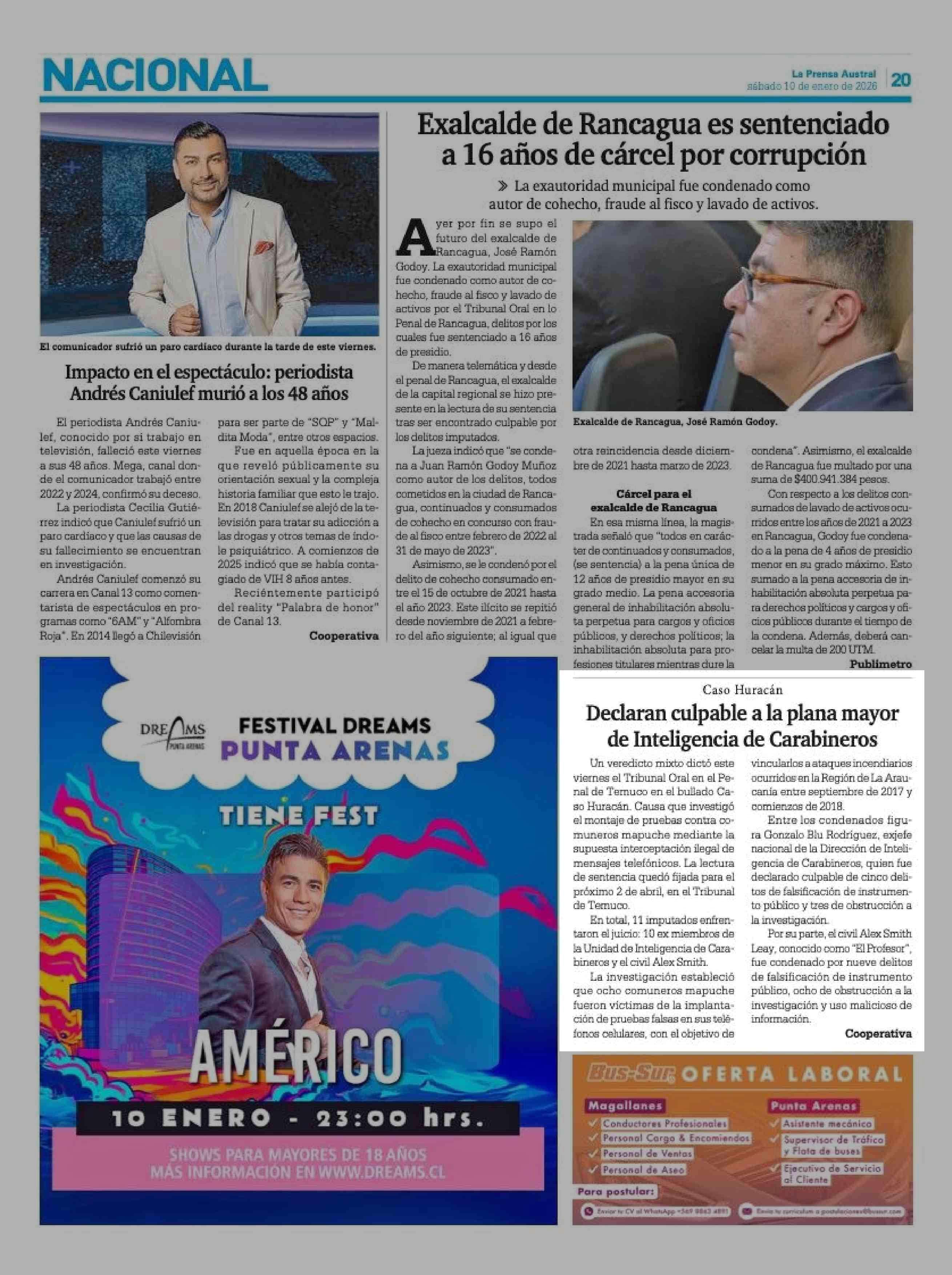 Declaran culpable a la plana mayor de Inteligencia de Carabineros 10-01-2026 La Prensa Austral |