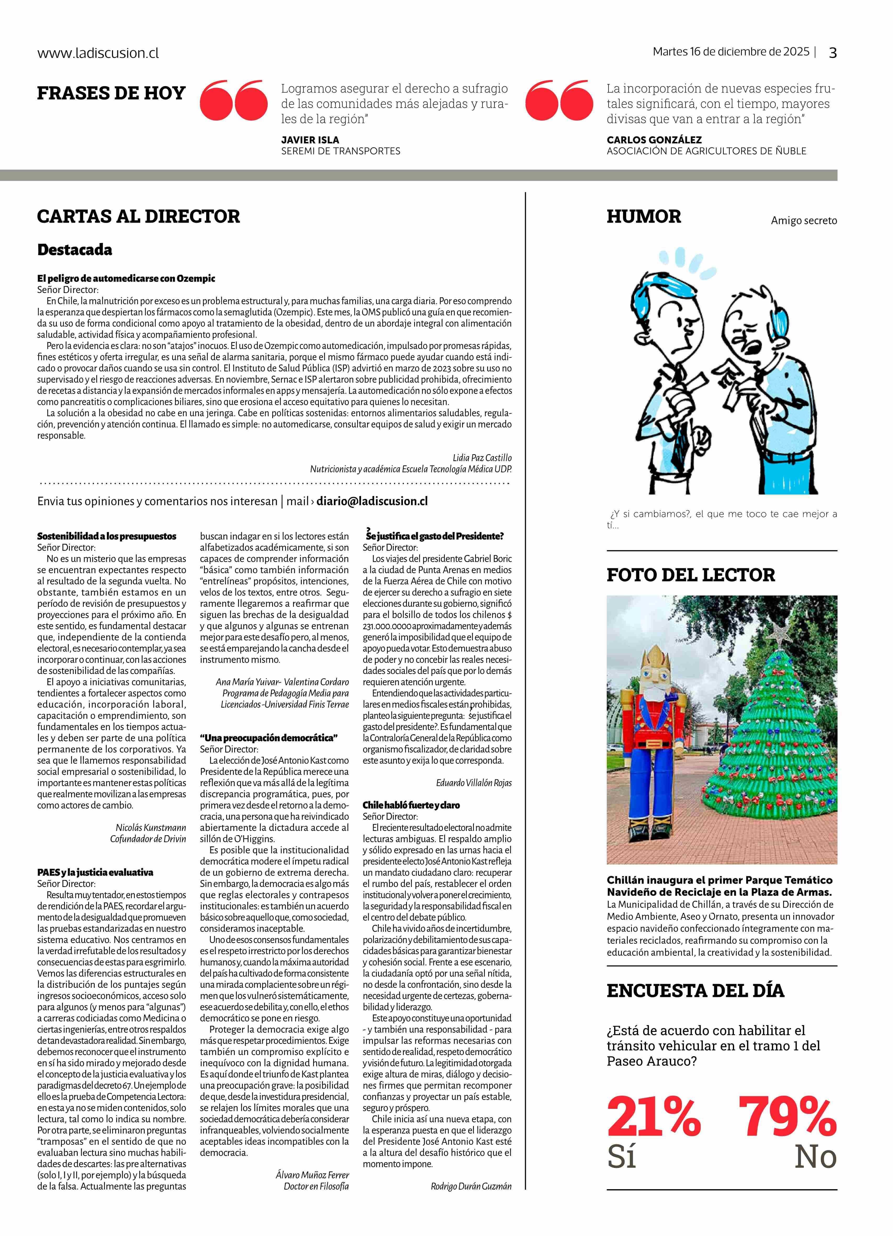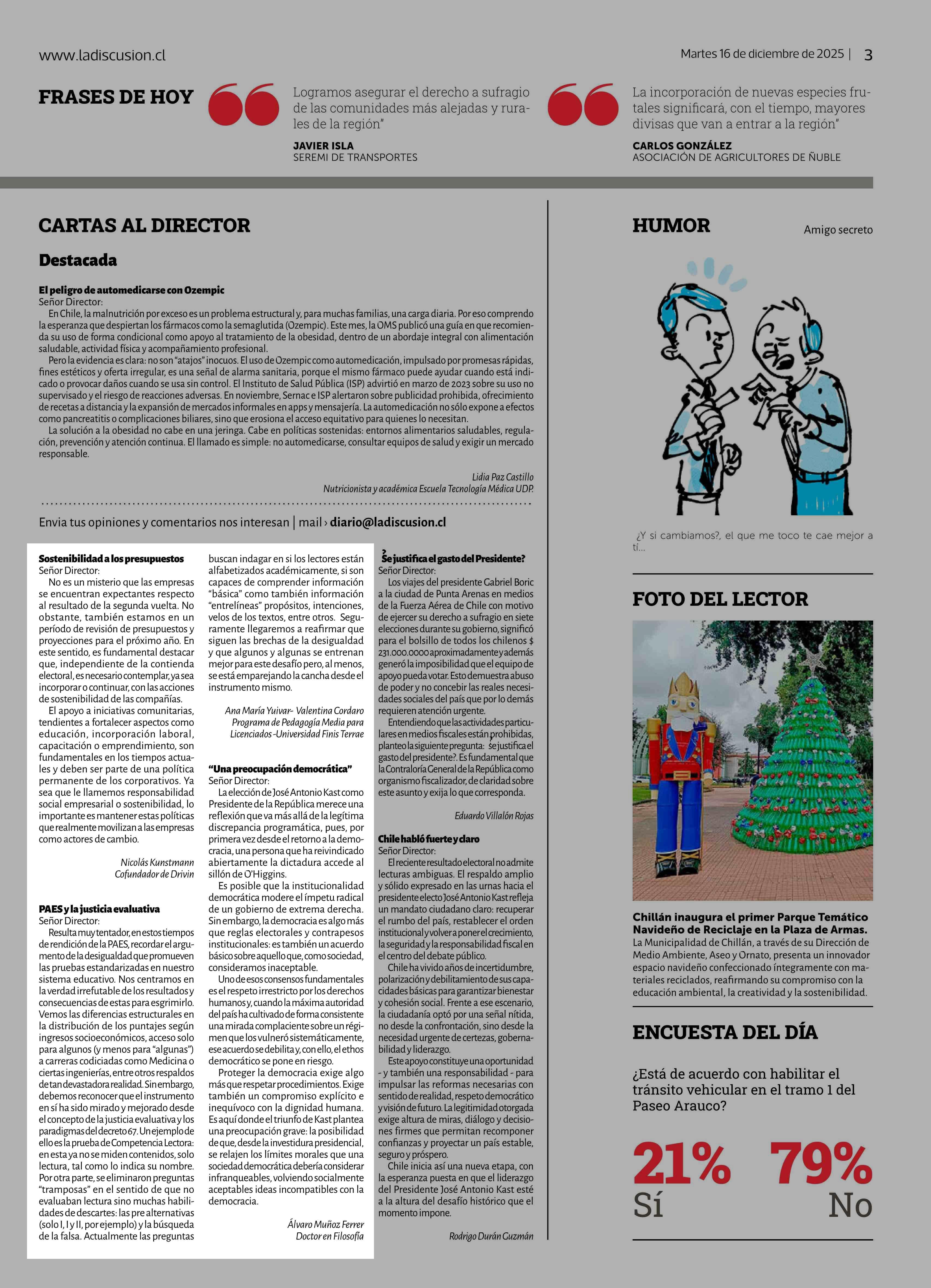Cartas: PAES y la justicia evaluativa 16-12-2025 La Discusión |