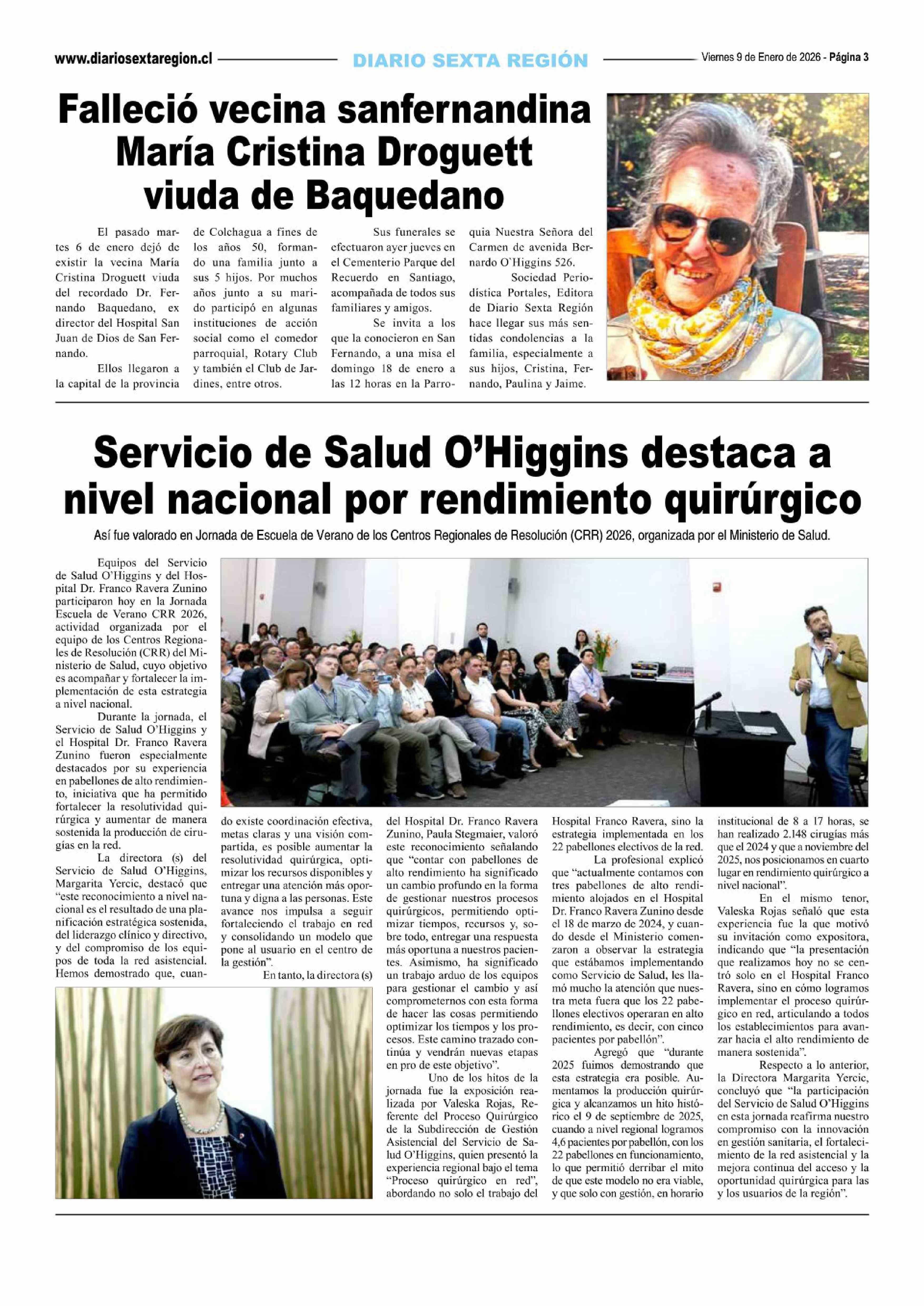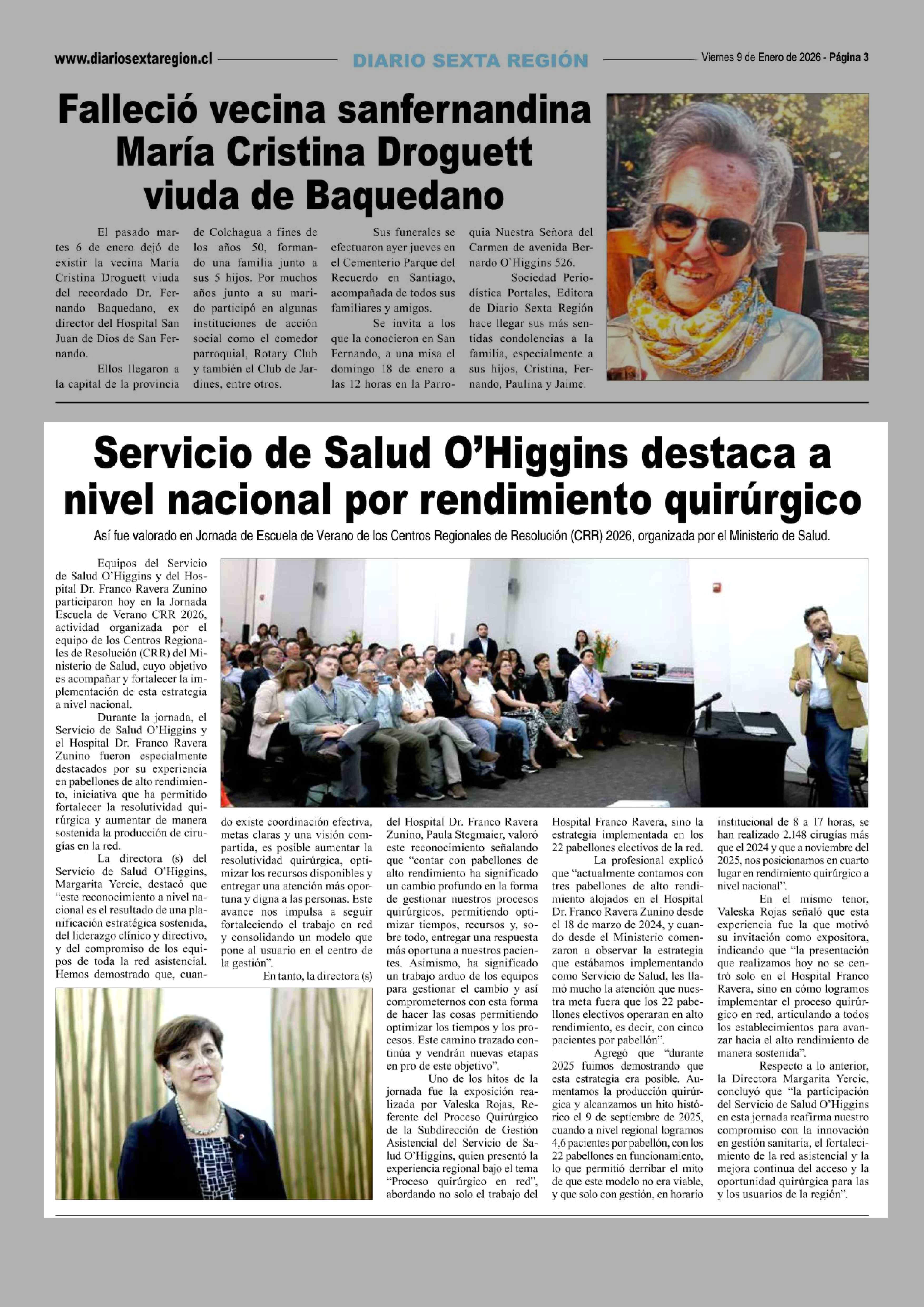 Servicio de Salud O'Higgins destaca a nivel nacional por rendimiento quirúrgico 09-01-2026 Diario VI Región |