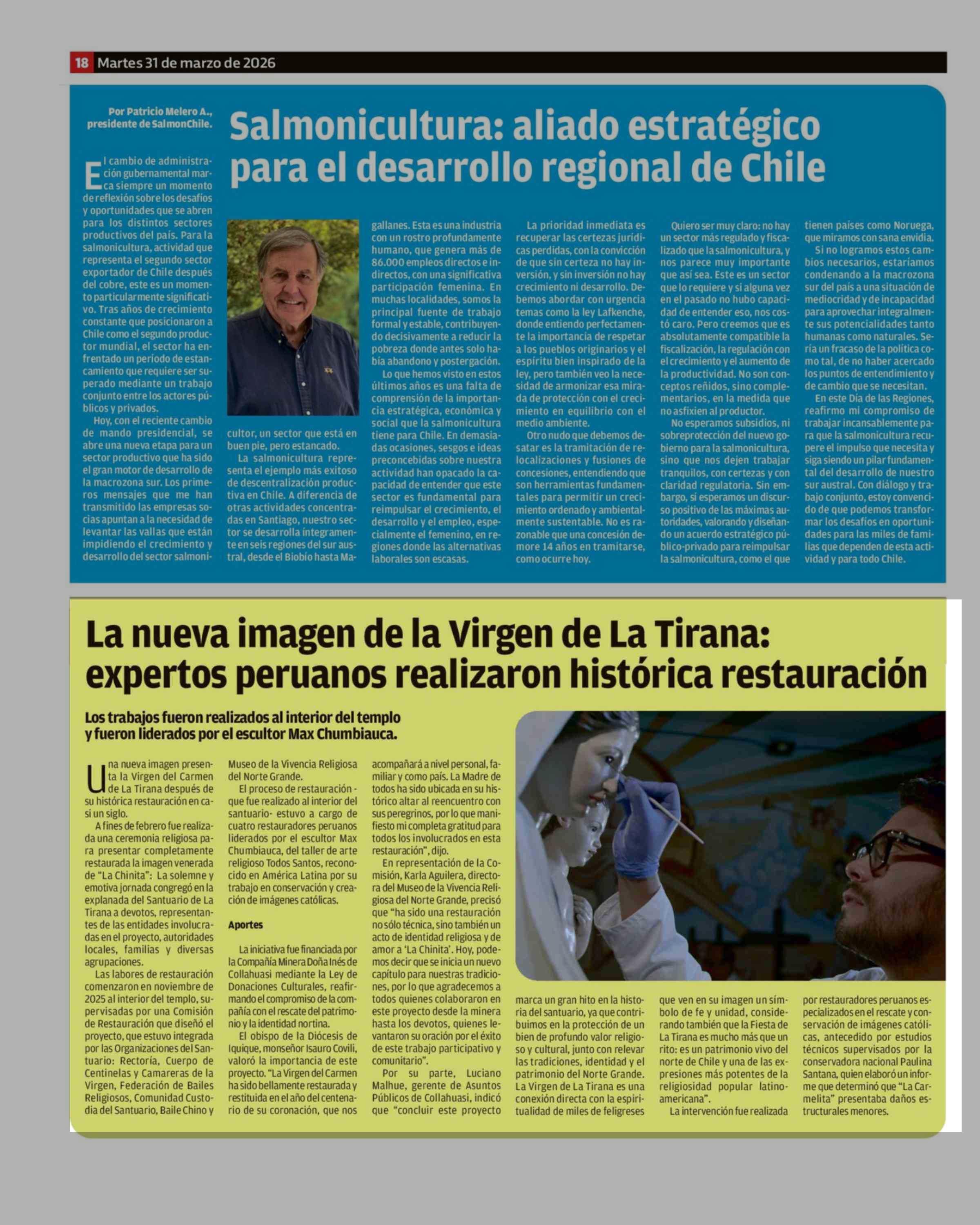 La nueva imagen de la Virgen de La Tirana: expertos peruanos realizaron histórica restauración 31-03-2026 La Estrella de Arica |