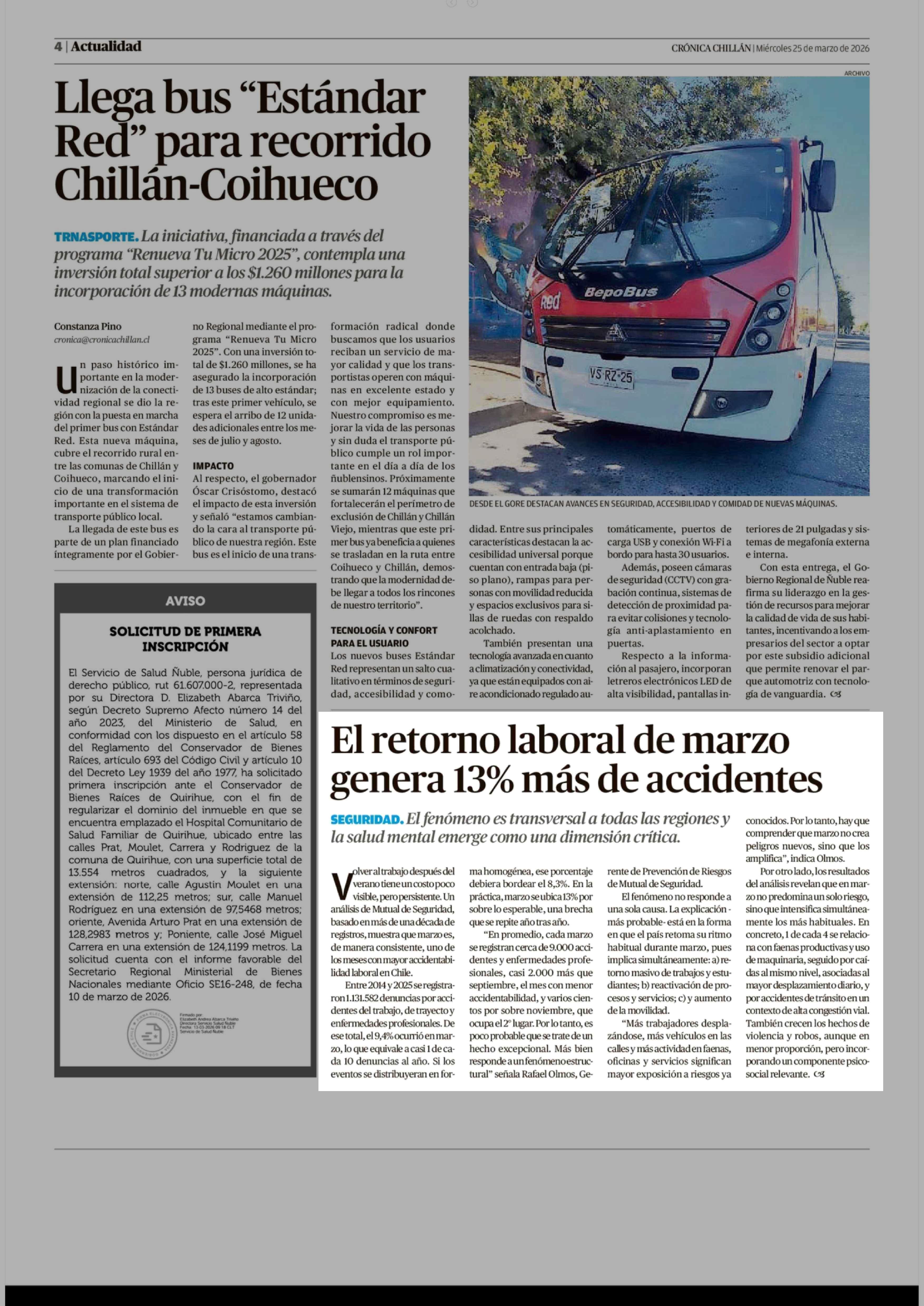 El retorno laboral de marzo genera 13% más de accidentes 25-03-2026 Crónica de Chillán |