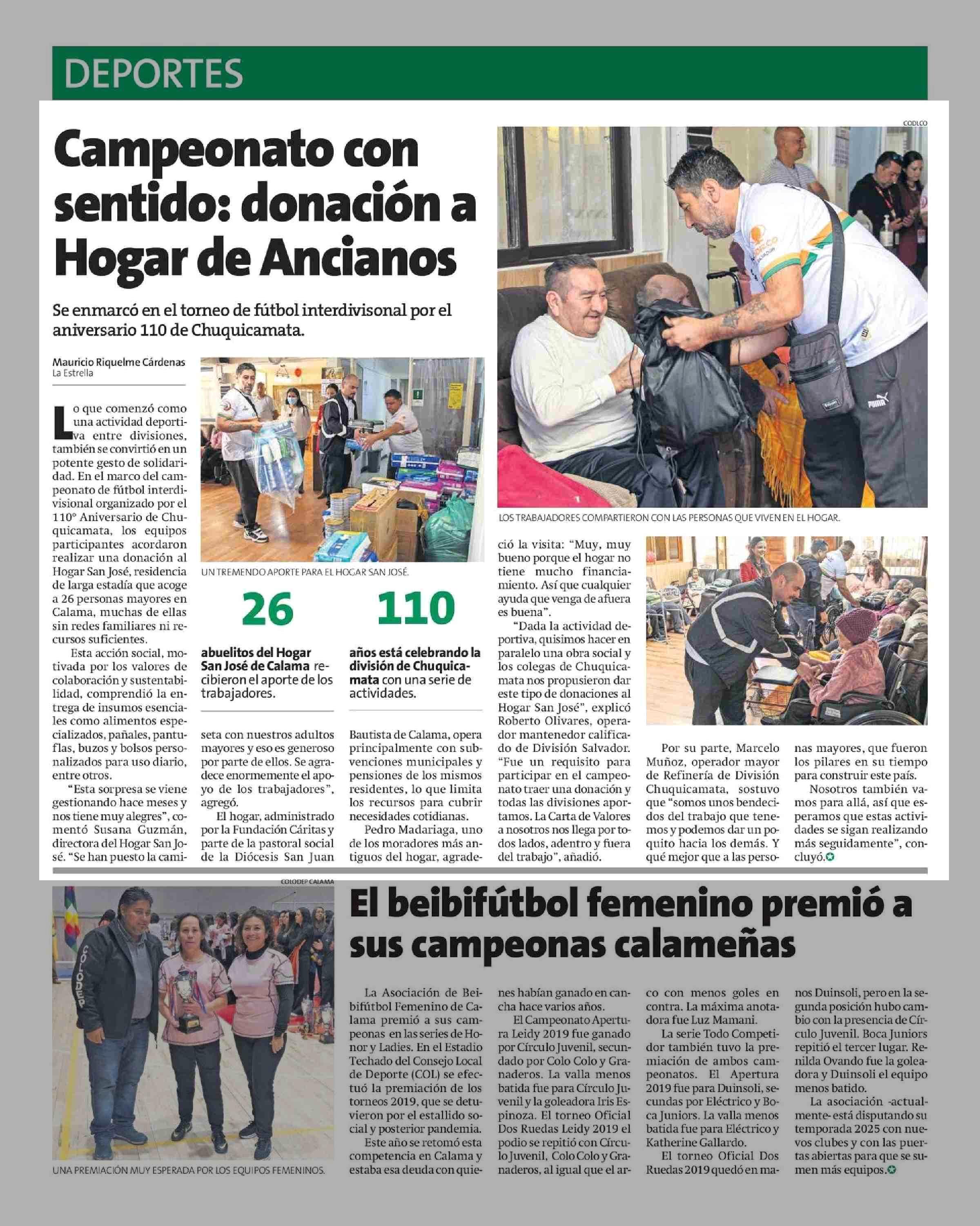 Campeonato con sentido: donación a Hogar de Ancianos 05-06-2025 La Estrella de Antofagasta |